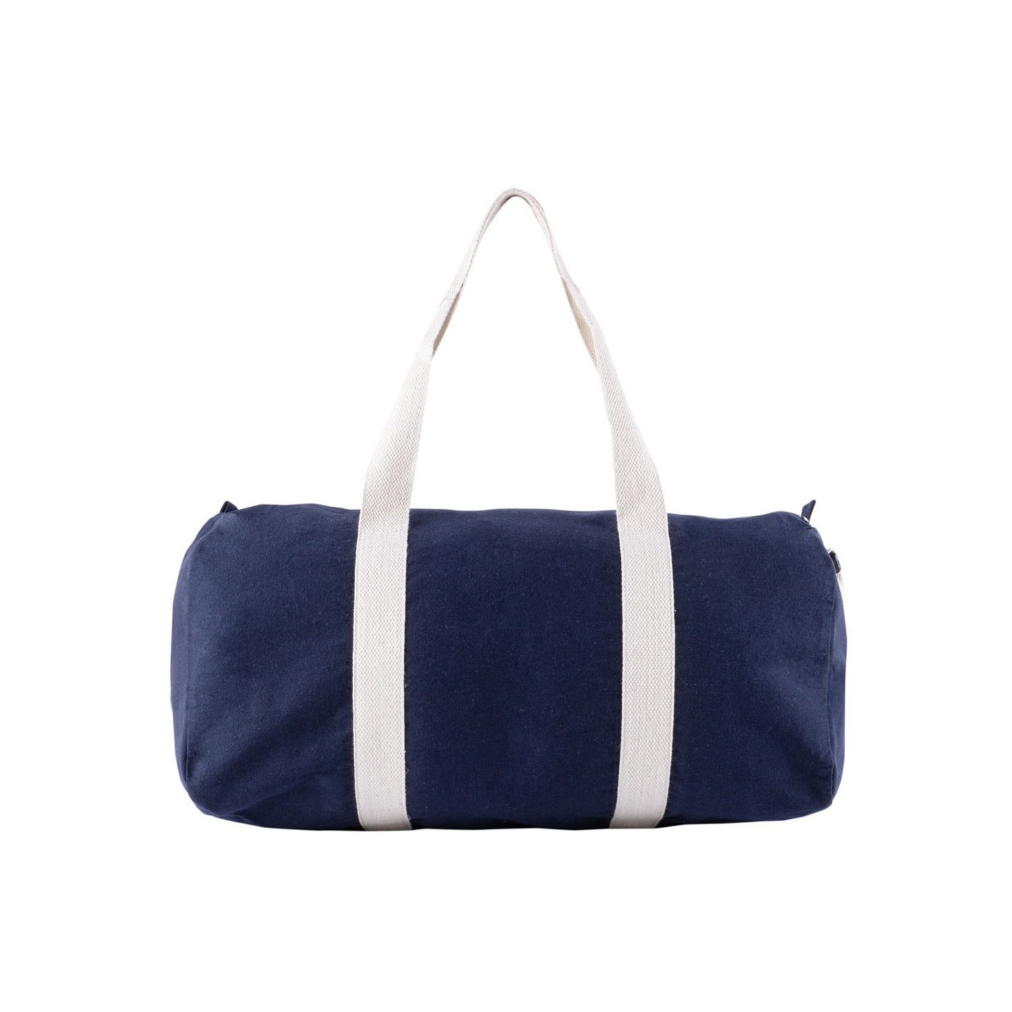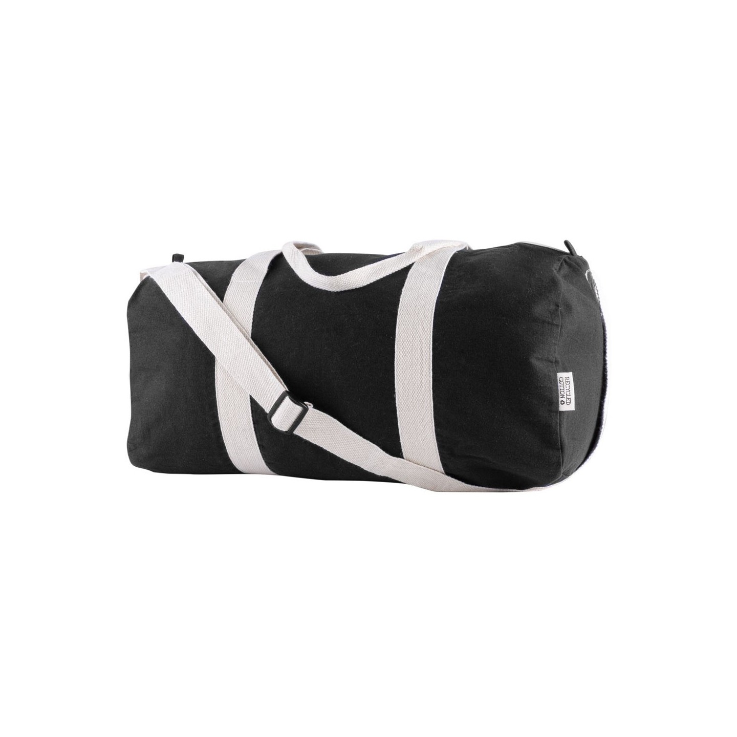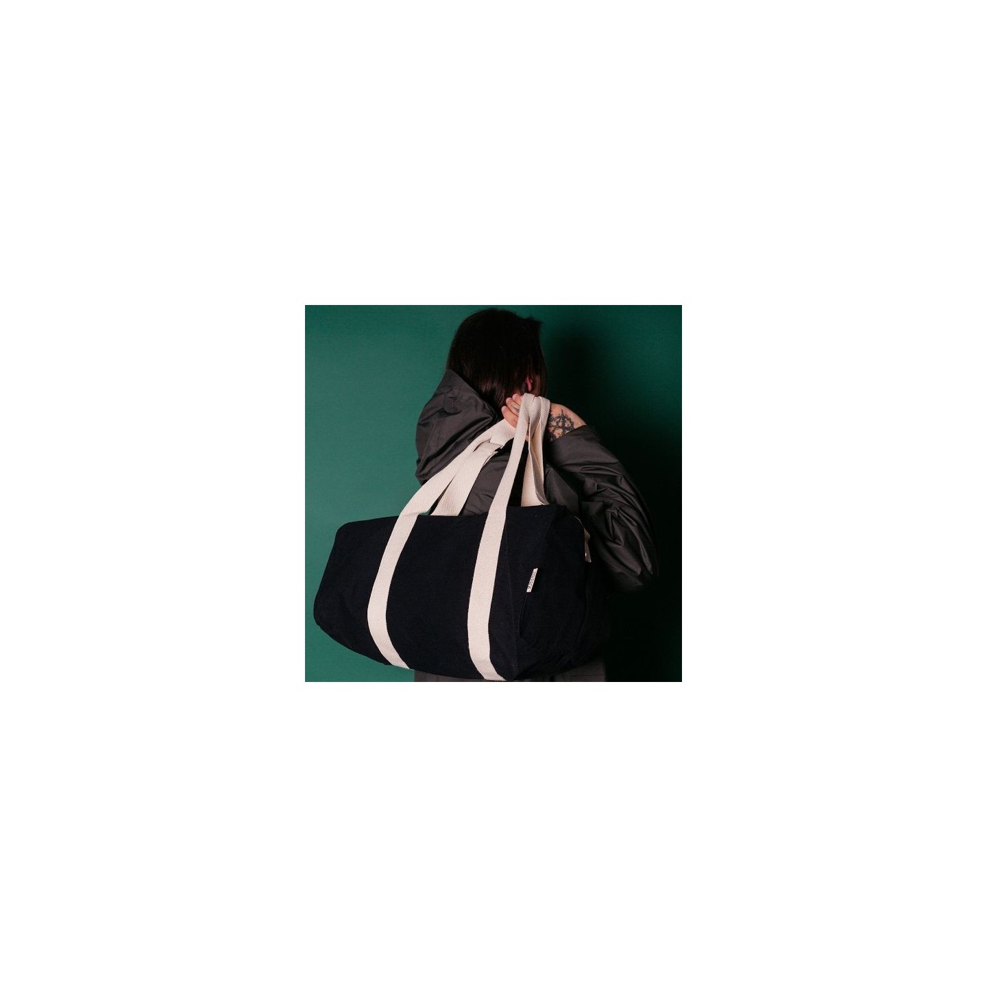 Bolsa de deporte personalizable, fabricada en algodón reciclado canvas con cierre de cremallera, asas ajustables y certificación GRS. Ideal para empresas.