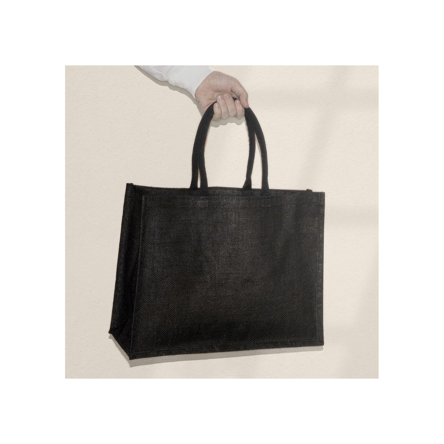 La Bolsa Yute Native Negra es resistente, perfecta para playa o compras. Personalízala con tu logo para un regalo corporativo único