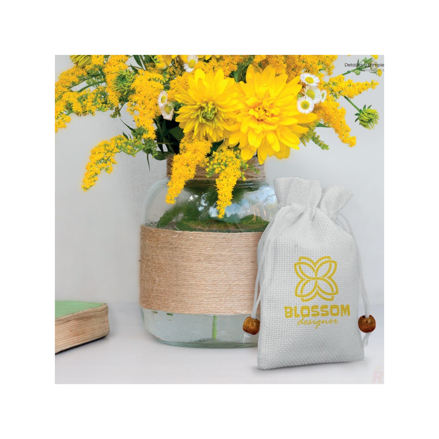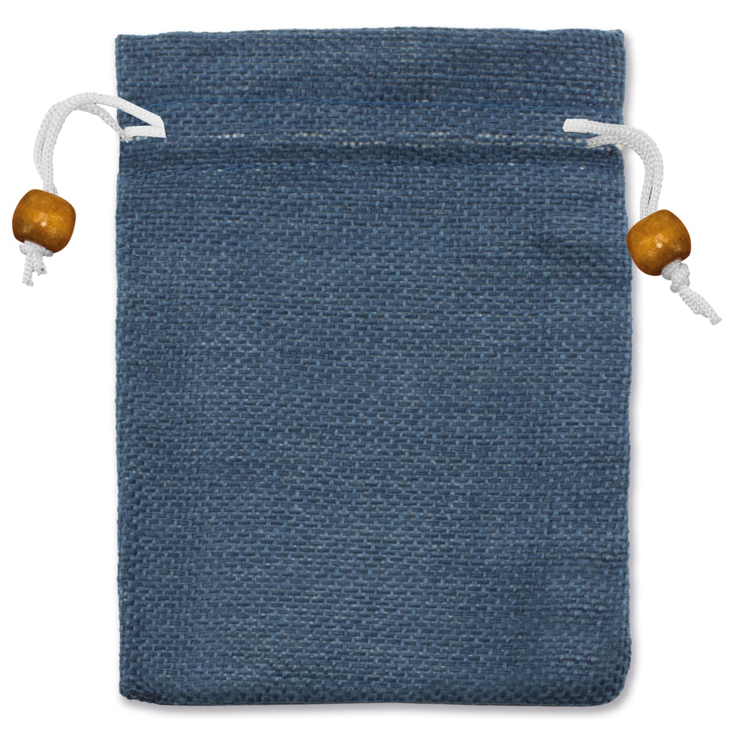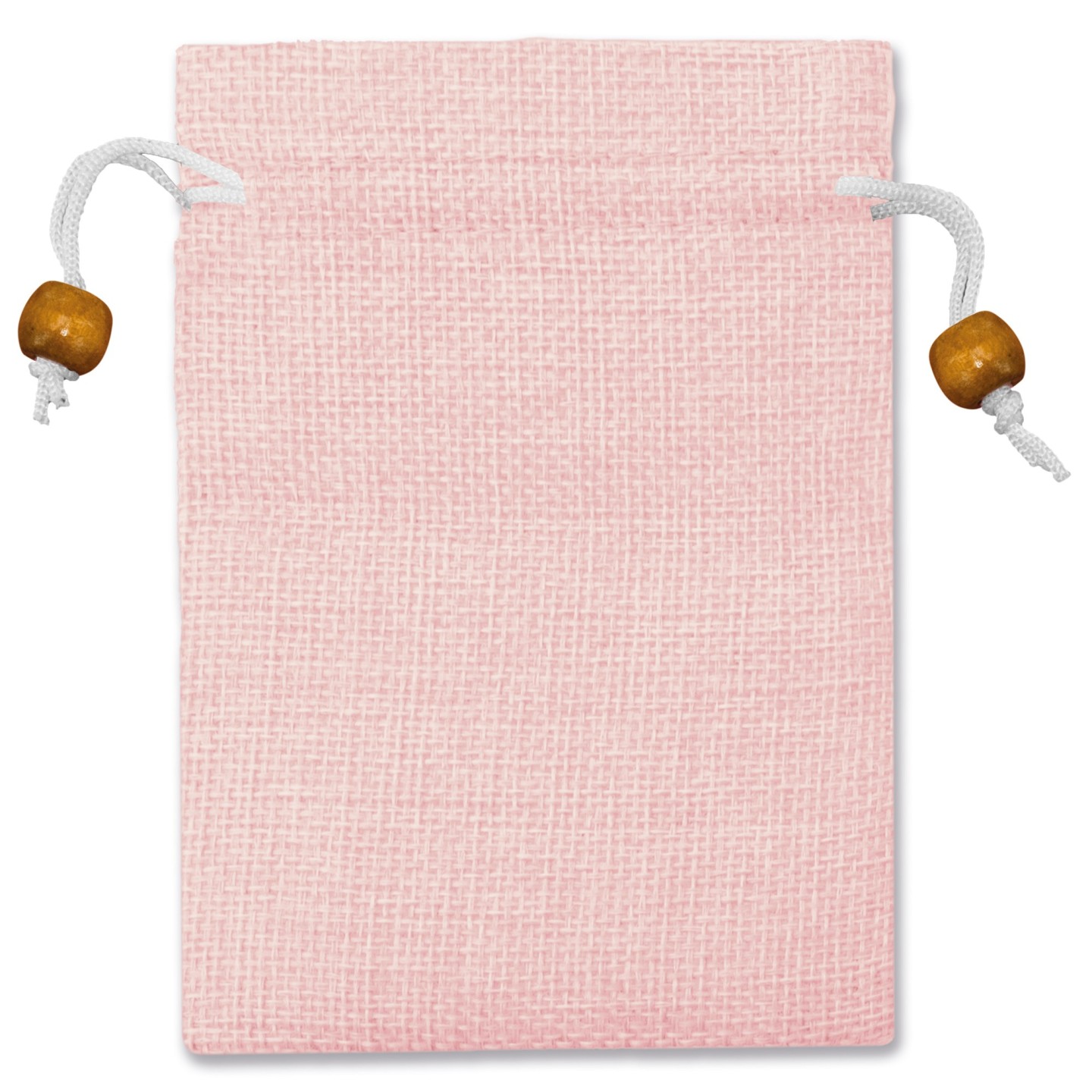 Bolsa de presentación para regalos con autocierre de cuerdas y perlas de madera decorativas. Personalizable con logotipo