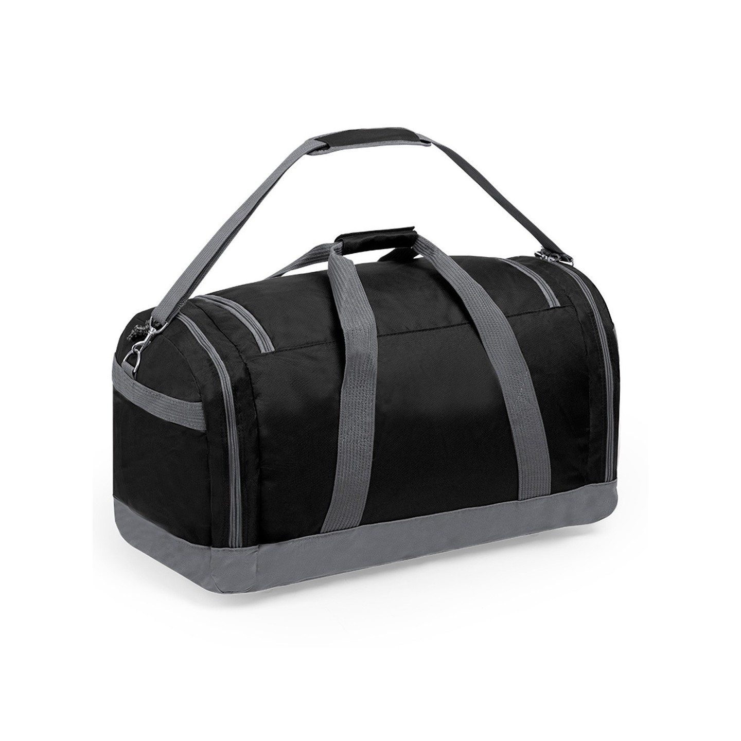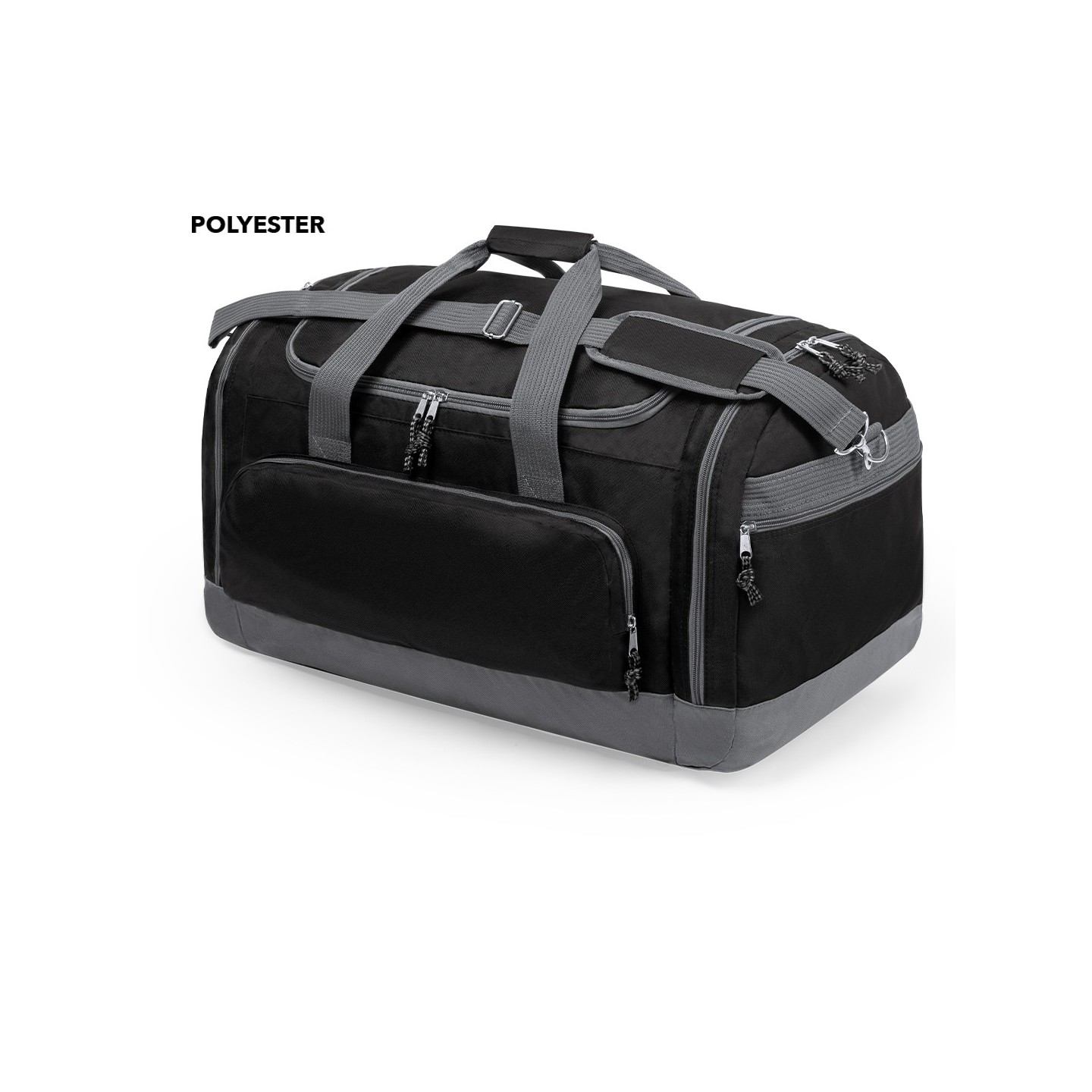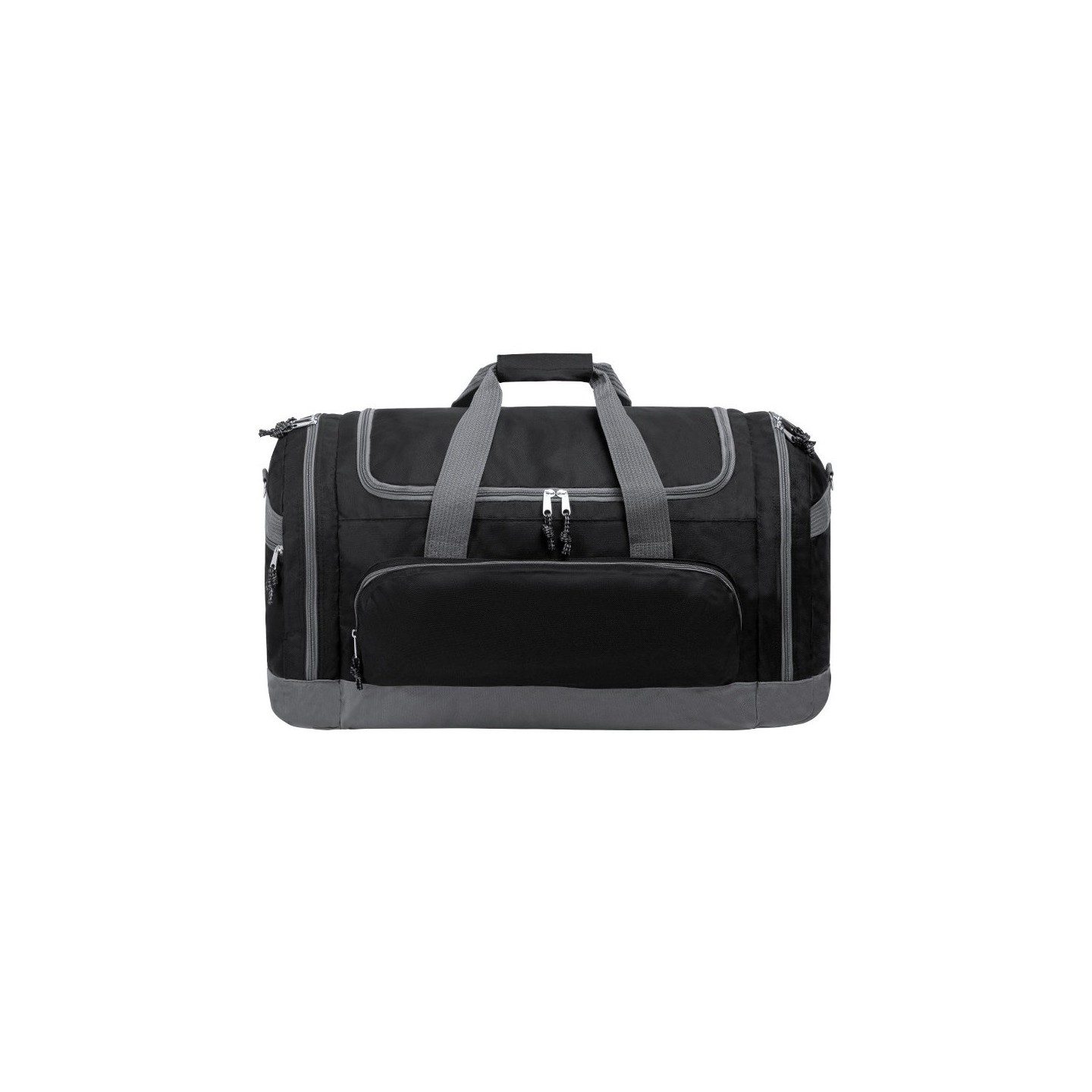 Bolso multiusos Melbor, resistente poliéster 600D bicolor. Compartimento principal y bolsillos laterales con cremallera. Asas de transporte y cinta bandolera ajustable.