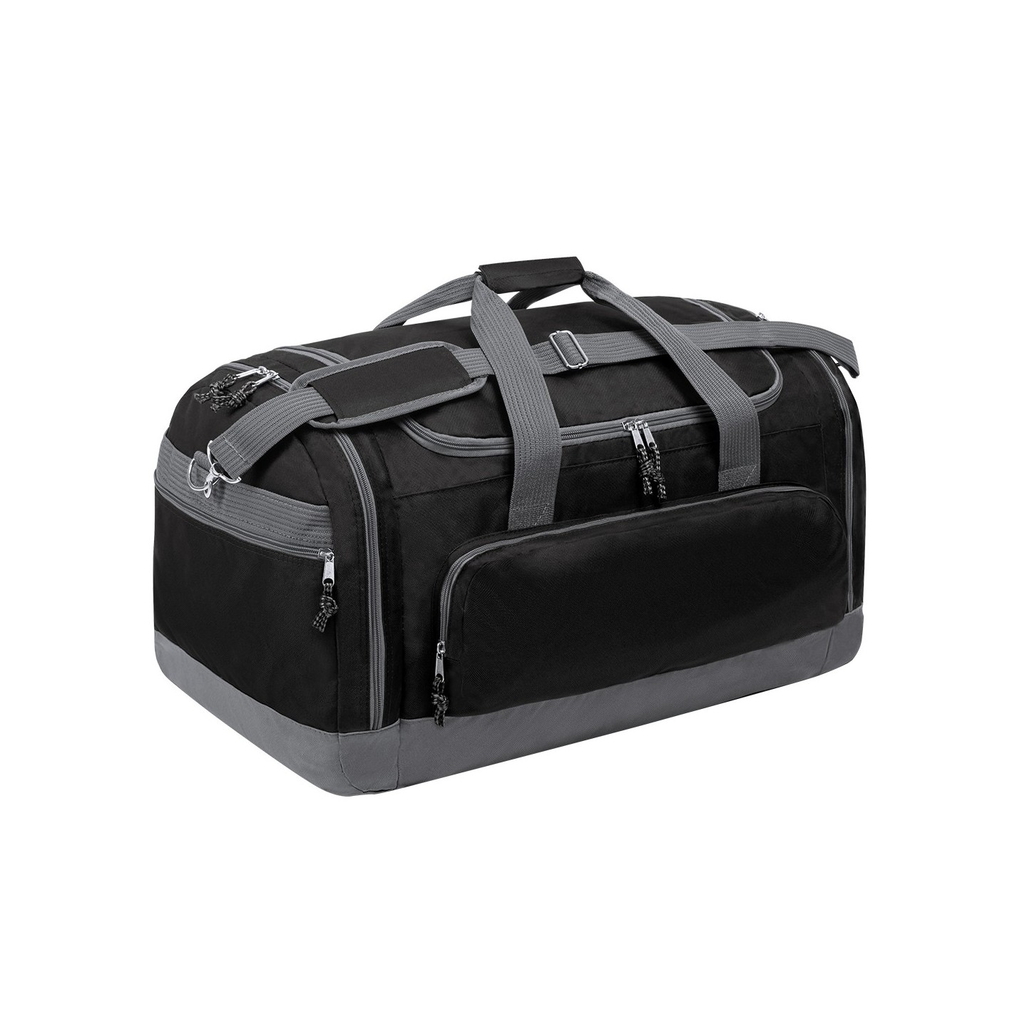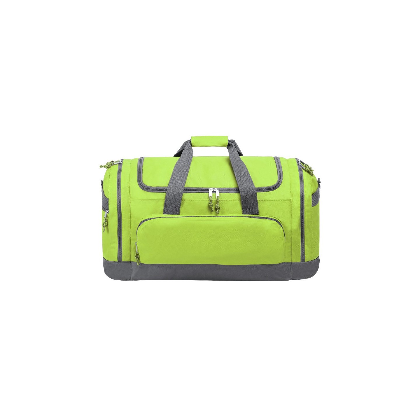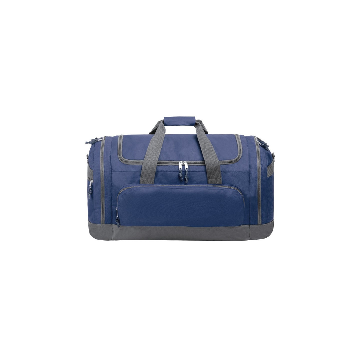 Bolso multiusos Melbor, resistente poliéster 600D bicolor. Compartimento principal y bolsillos laterales con cremallera. Asas de transporte y cinta bandolera ajustable.