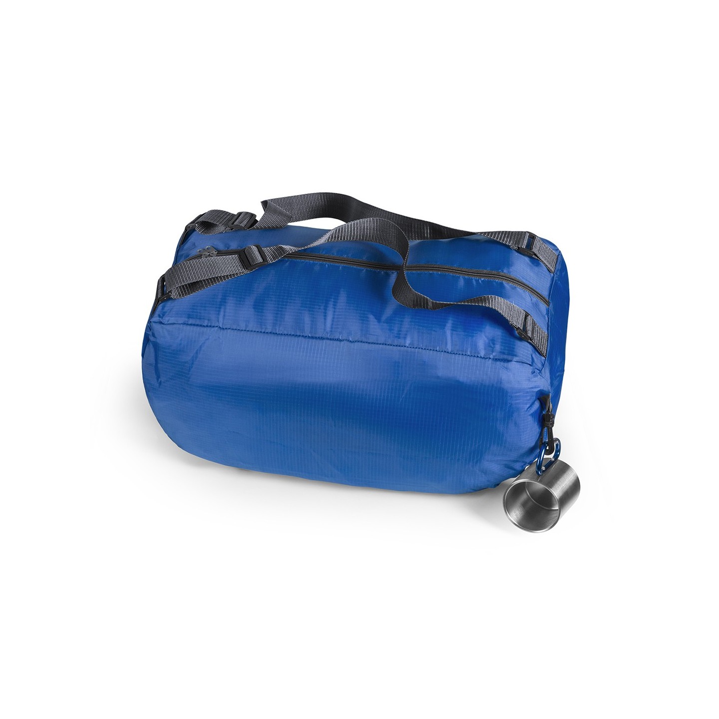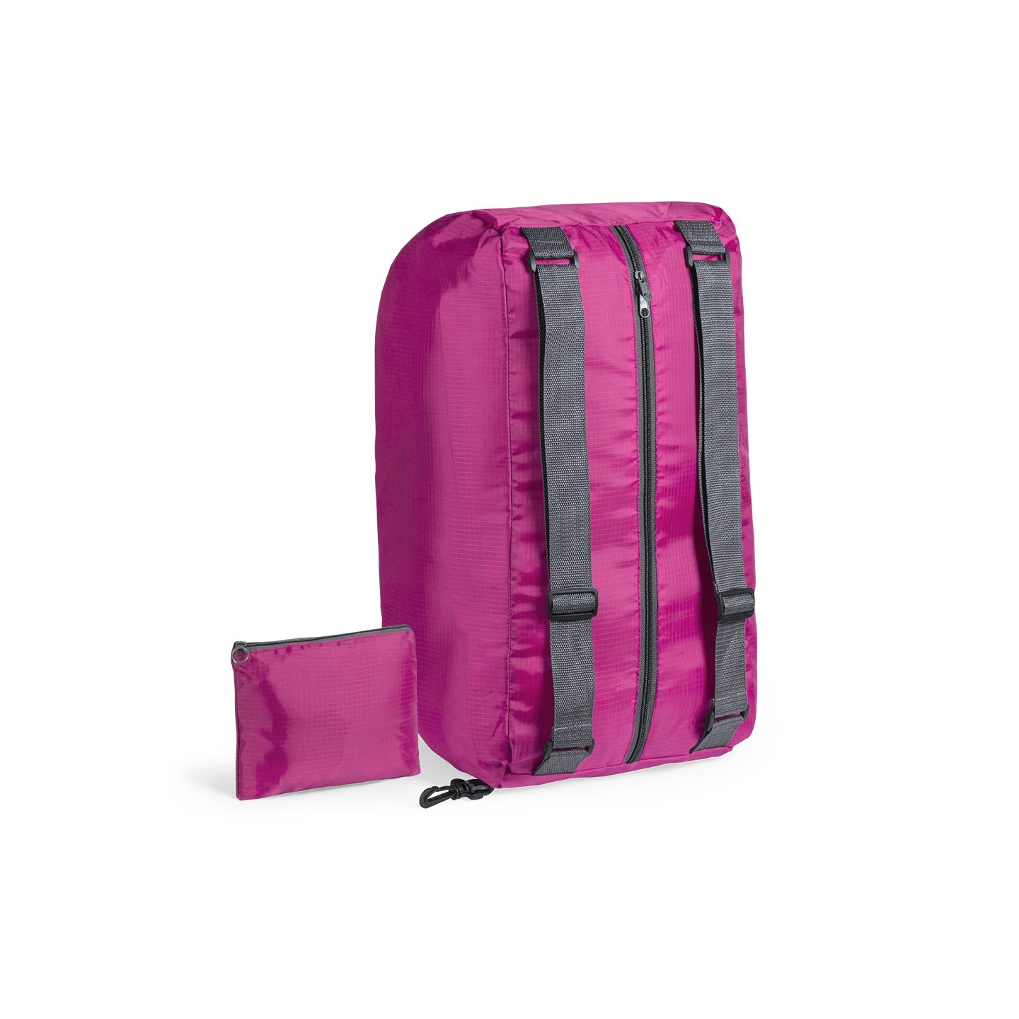 Bolso mochila plegable en ripstop de alegres colores con cierre de cremallera y cintas de hombro regulables. ¡Cómodo y práctico para llevar a cualquier lugar!