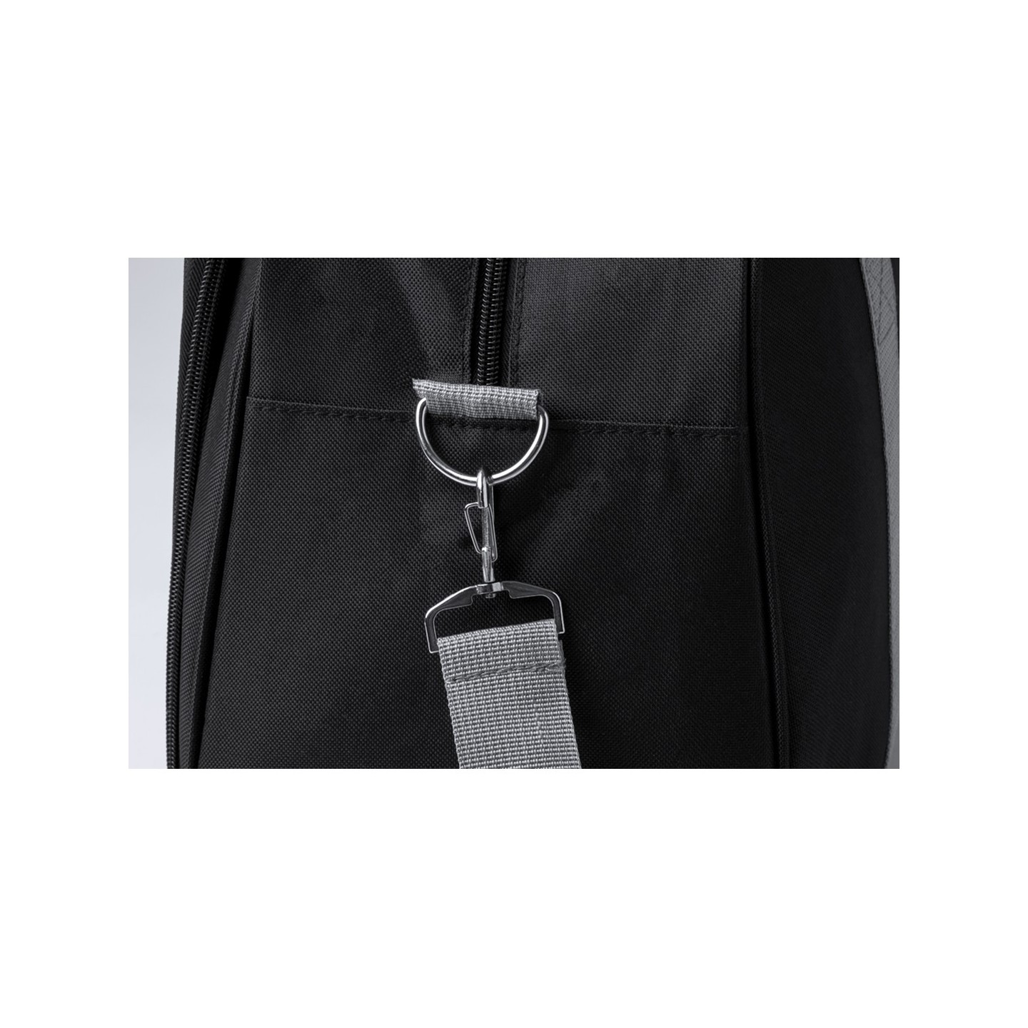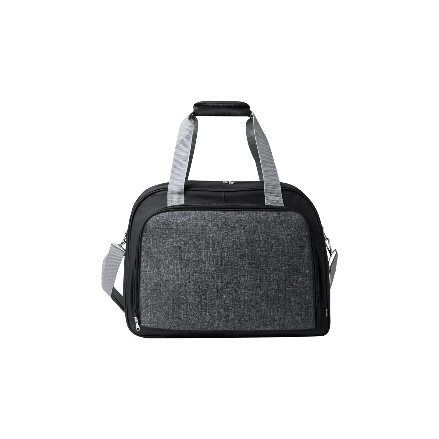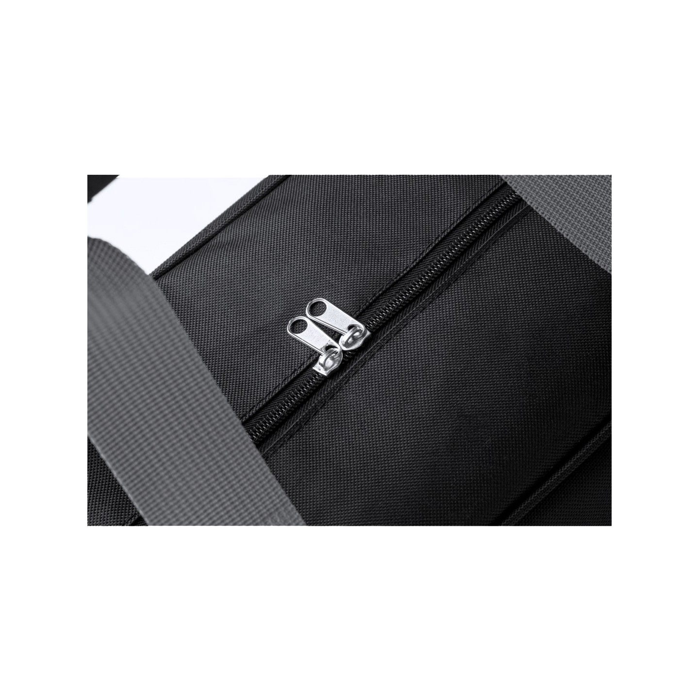 Este bolso de gran capacidad está fabricado en resistente RPET 600D, un material innovador que se elabora a partir de plástico reciclado, contribuyendo así a la reducción de residuos plásticos y al cuidado del planeta.