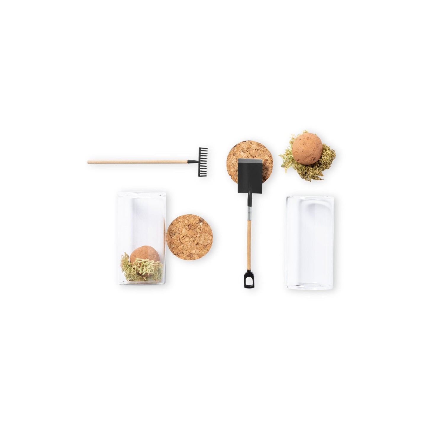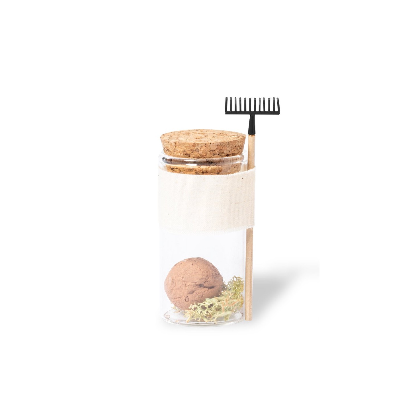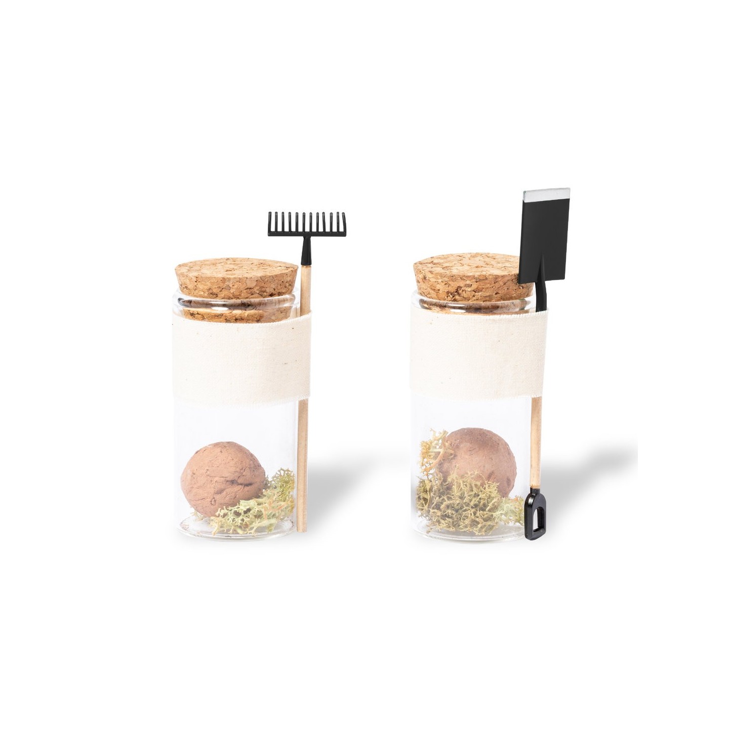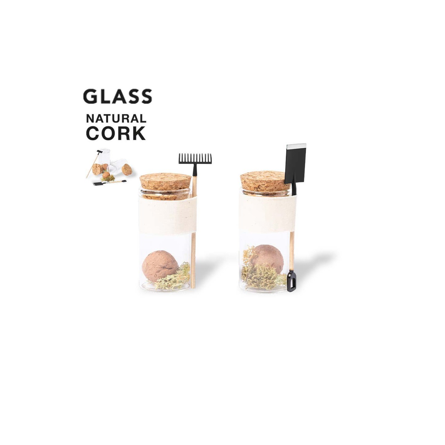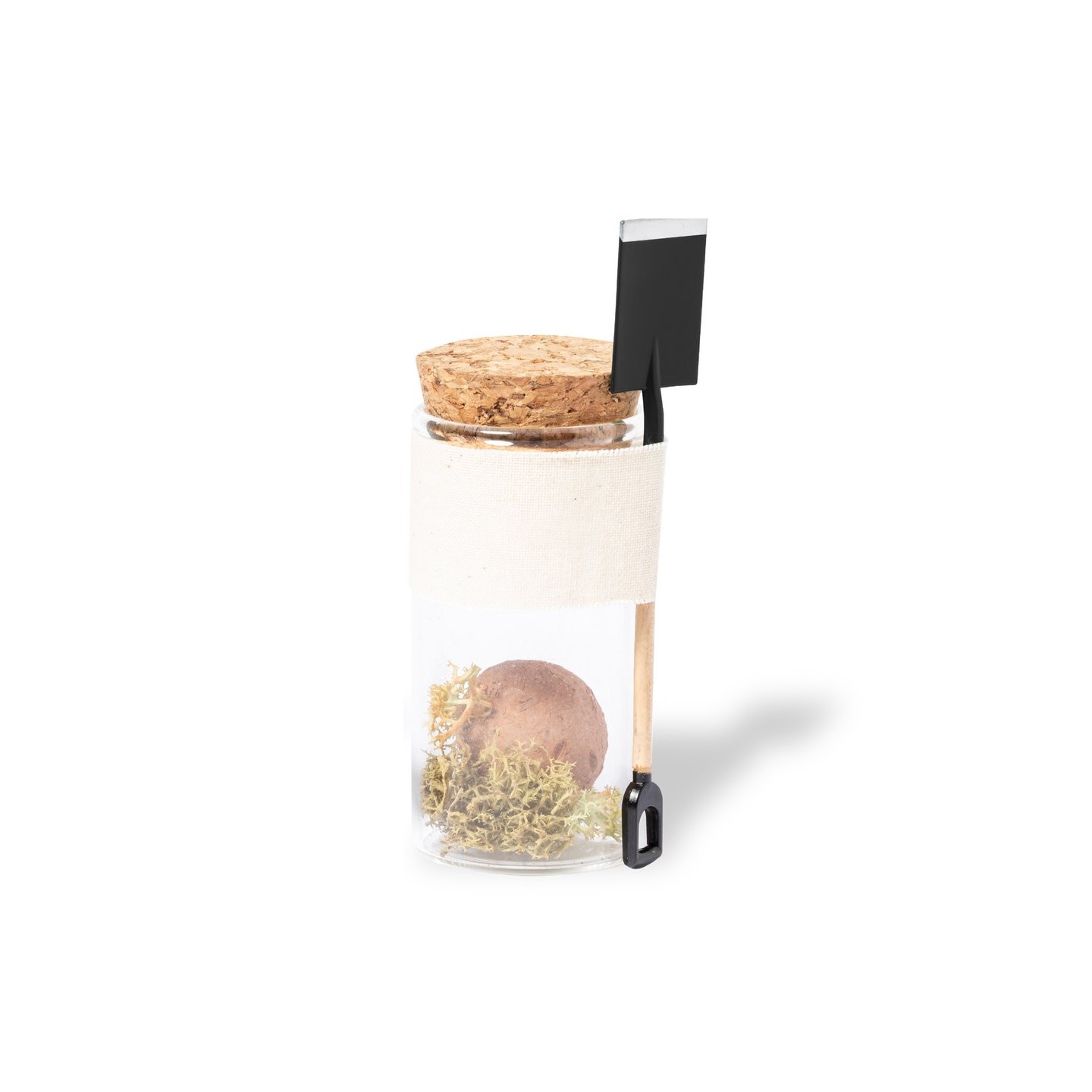 Bombón de semillas de línea nature. De flores silvestres y presentado en bote de cristal con tapón de corcho natural. Disponible en modelos rastrillo y pala