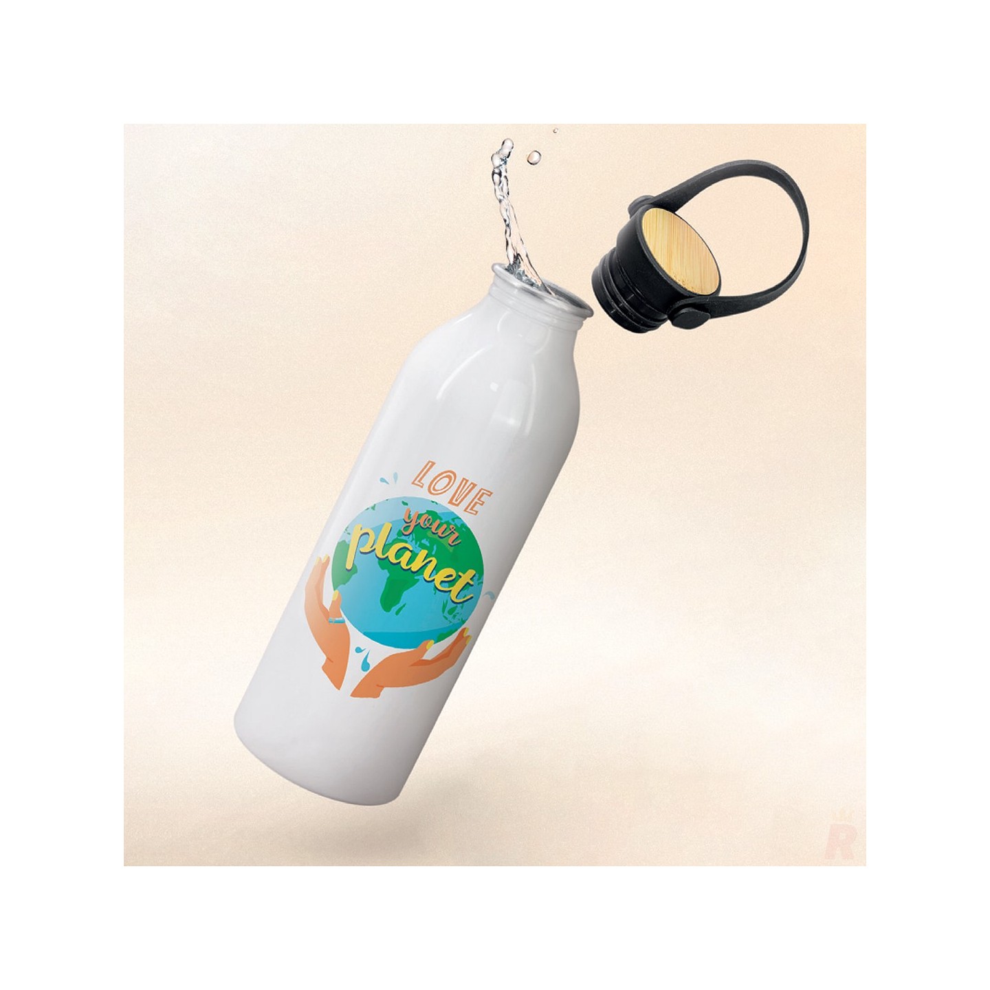Botella ecológica aluminio reciclado y bambú, ideal para sublimación. Reutilizable, resistente y perfecta para un uso diario sostenible