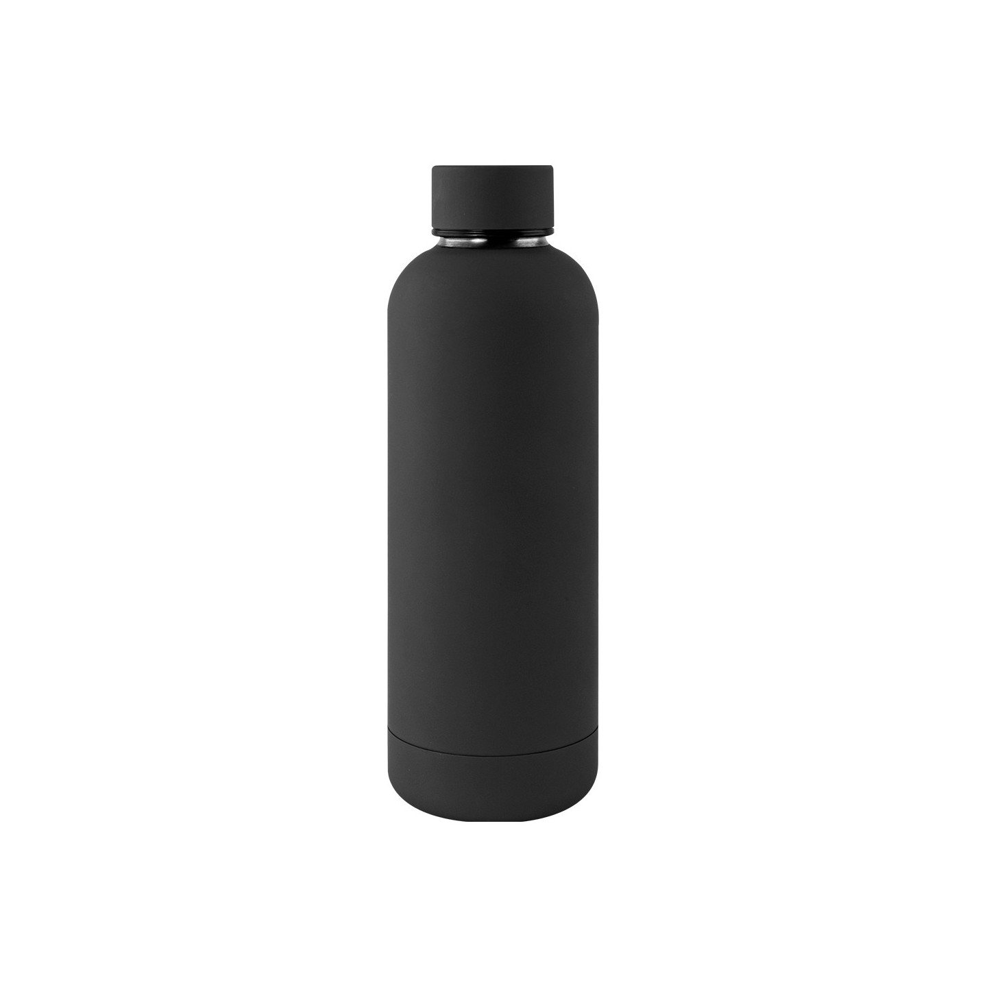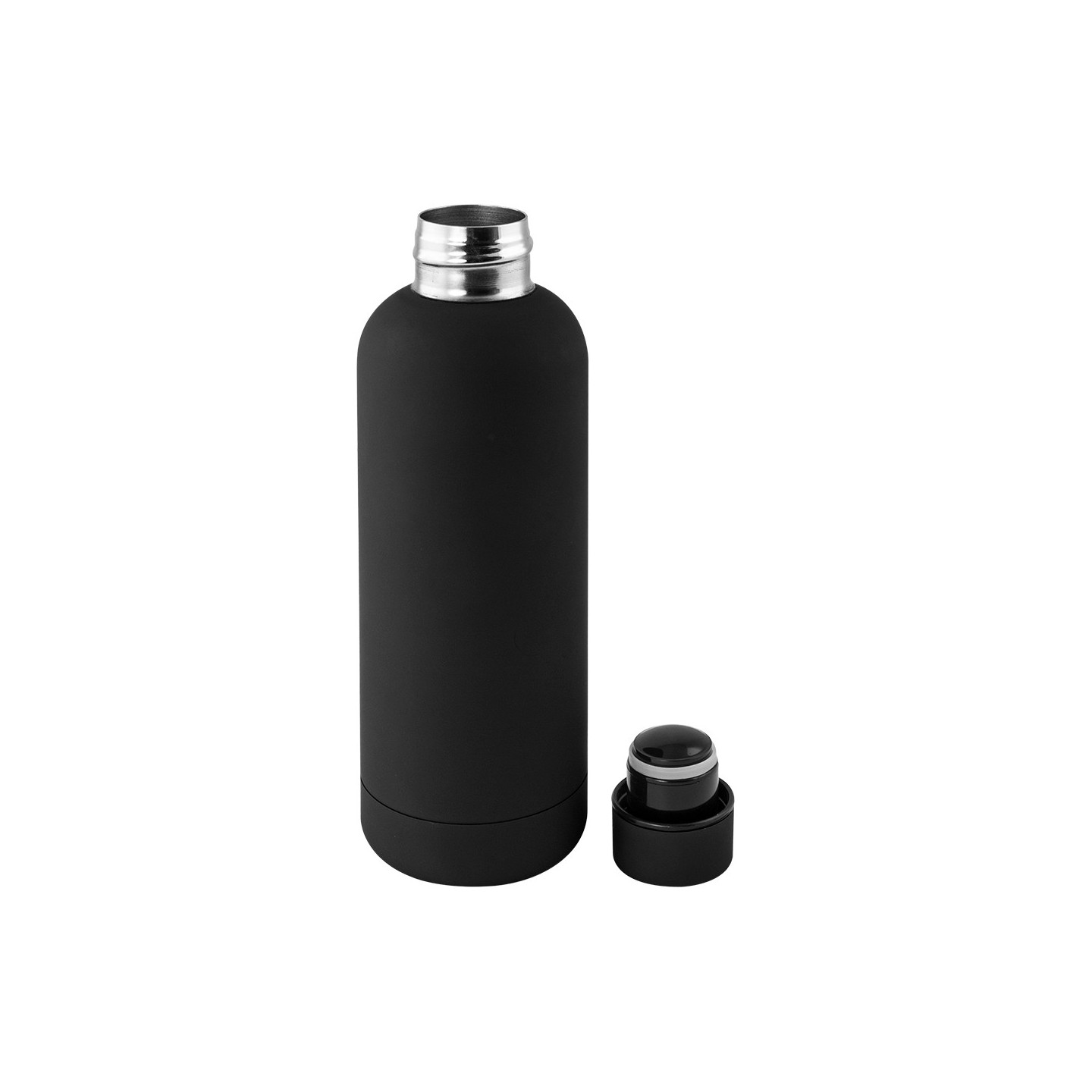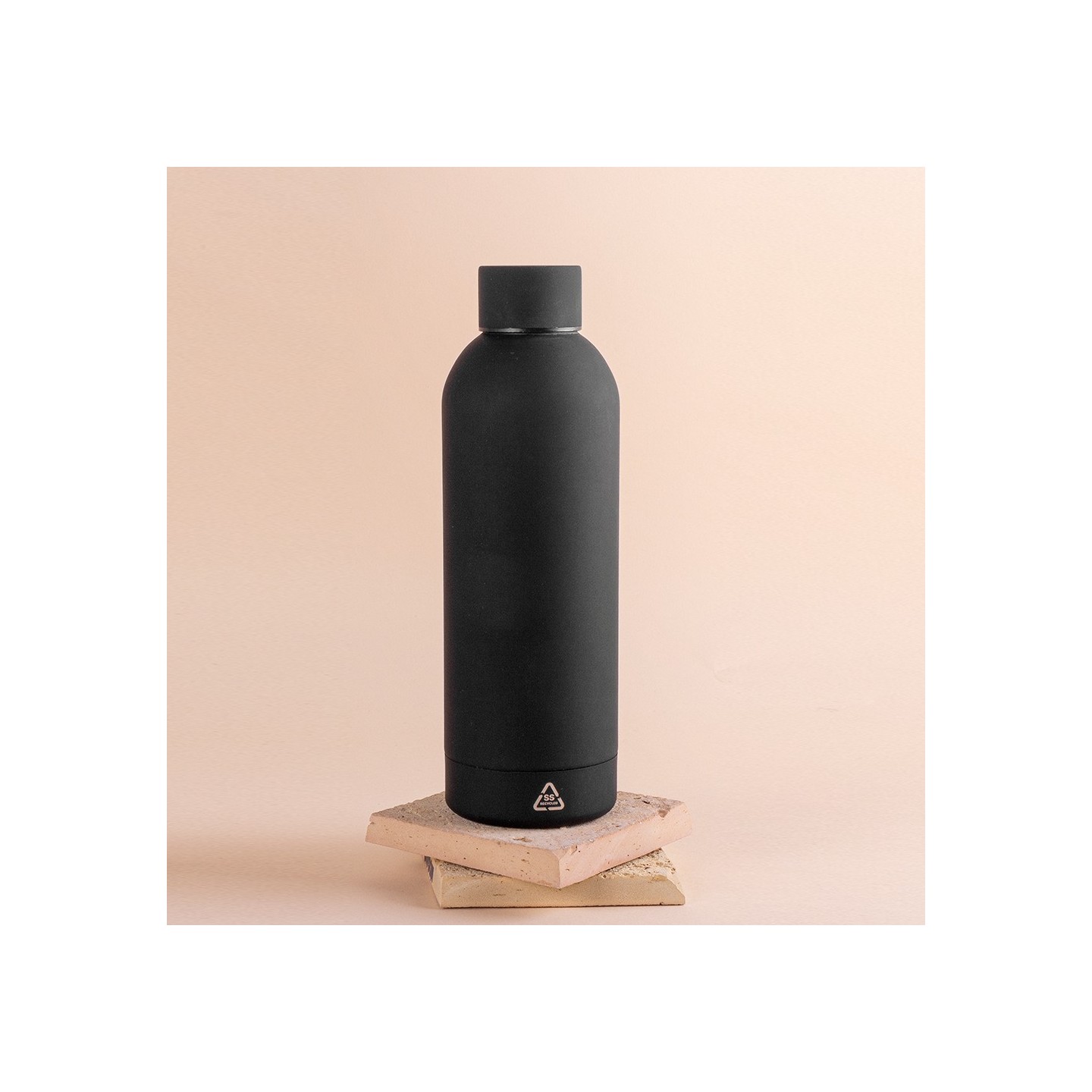 La Botella Rubber Reciclada es de doble pared, 500 ml. Diseño ecoamigable con acabado rubber. Frías 12h, calientes 24h. Certificación LFGB.