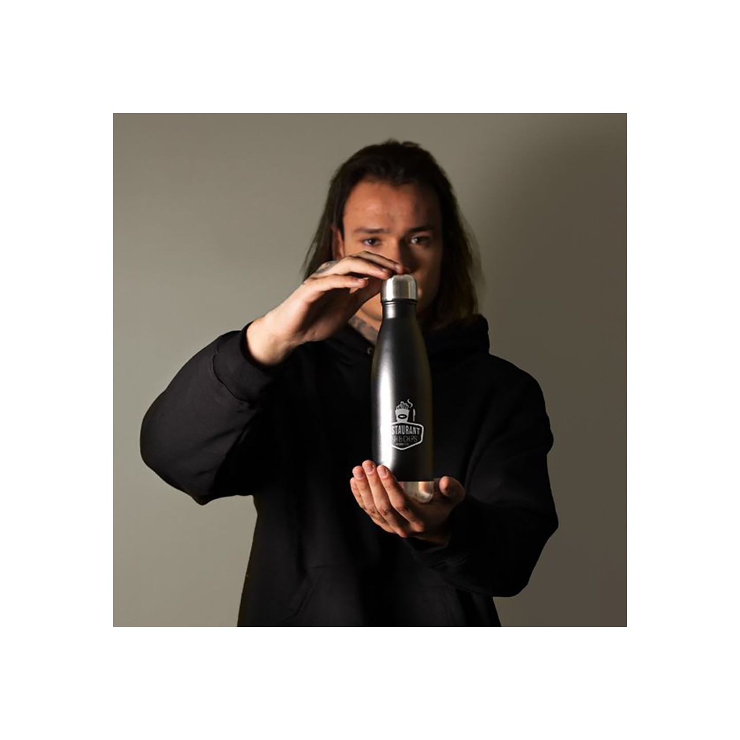 La Botella Térmica ELEVEN de acero inoxidable reciclado (500 ml) mantiene las bebidas frías hasta 12 horas y calientes hasta 6. Personalizable, ideal para promociones y regalos corporativos.
