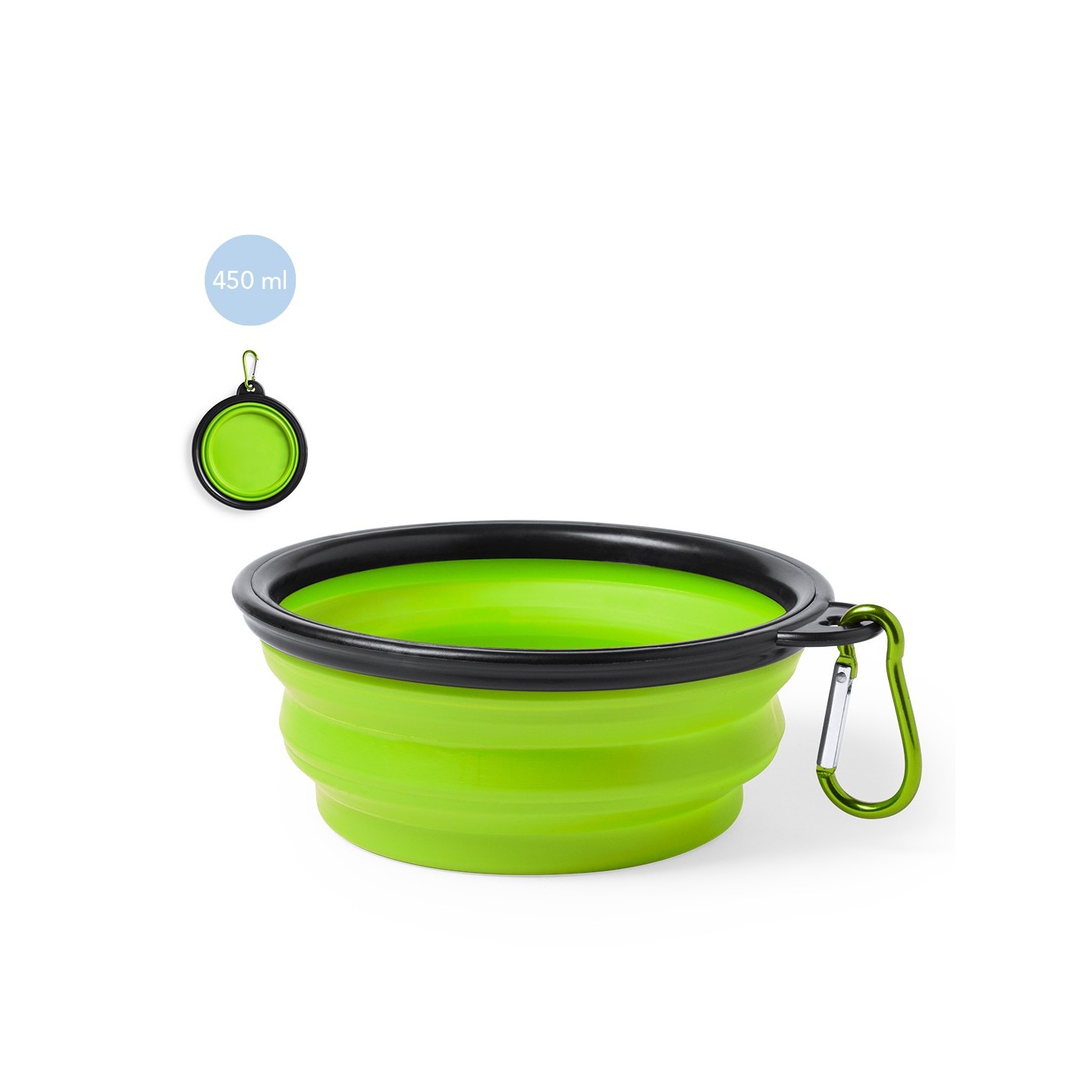 El Bowl Plegable Baloyn es práctico y resistente para mascotas. Capacidad 450ml, diseño plegable y mosquetón metálico. Ideal para paseos y viajes.