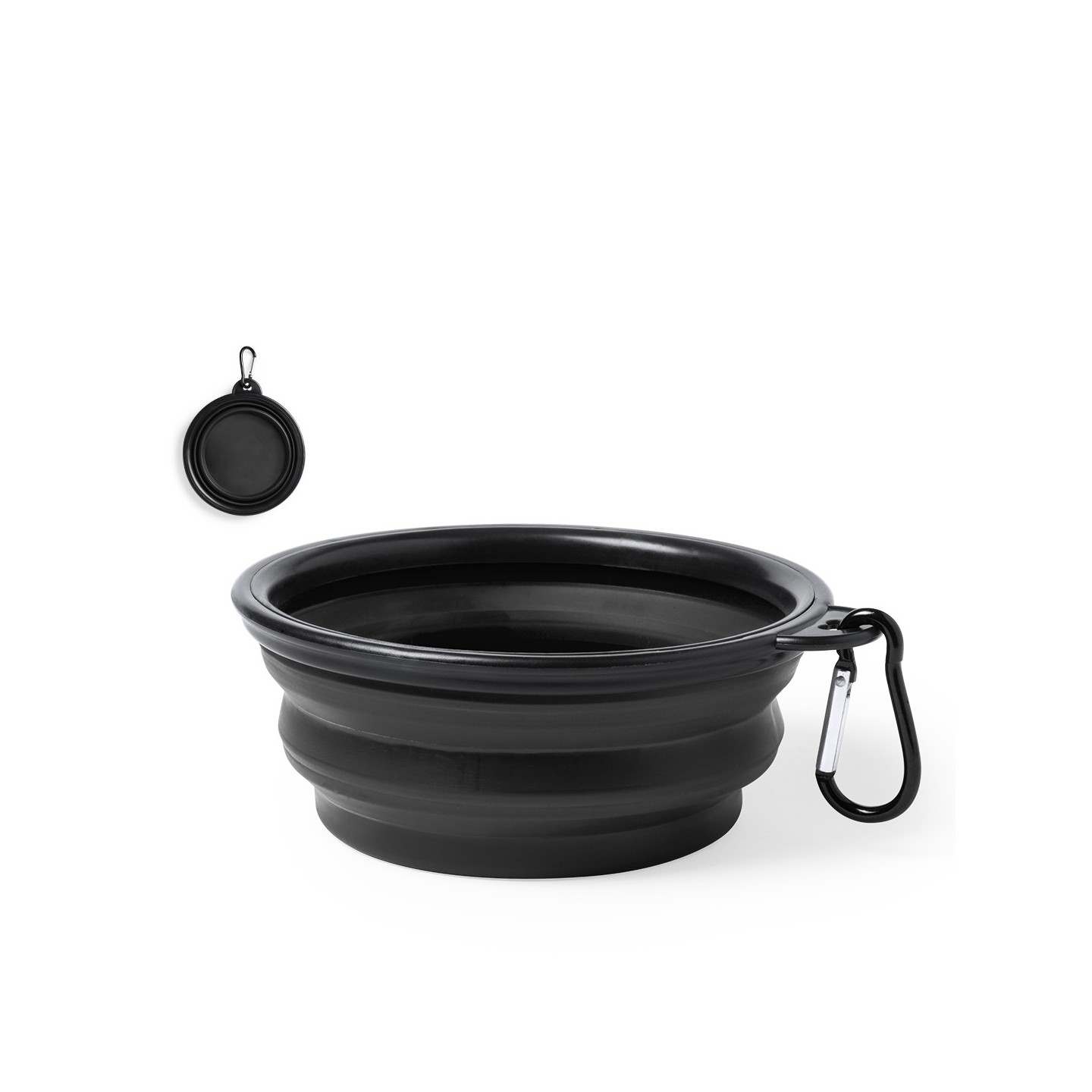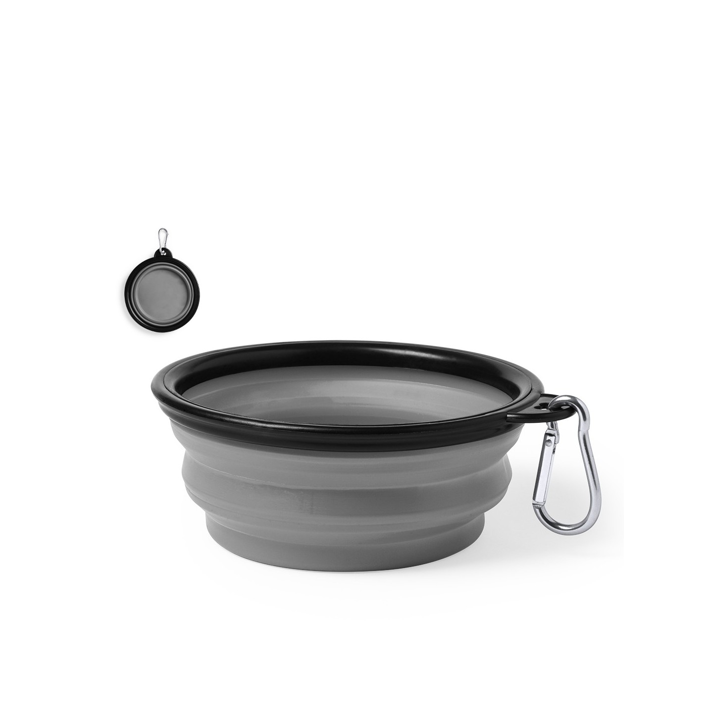 Para facilitar su transporte, el Bowl Plegable Baloyn incluye un mosquetón de transporte metálico a juego. Este práctico accesorio te permite enganchar el bowl a la correa, mochila o bolso, asegurando que siempre esté a mano cuando lo necesites. Nunca más tendrás que preocuparte por la sed o el hambre de tu mascota mientras estén fuera de casa.