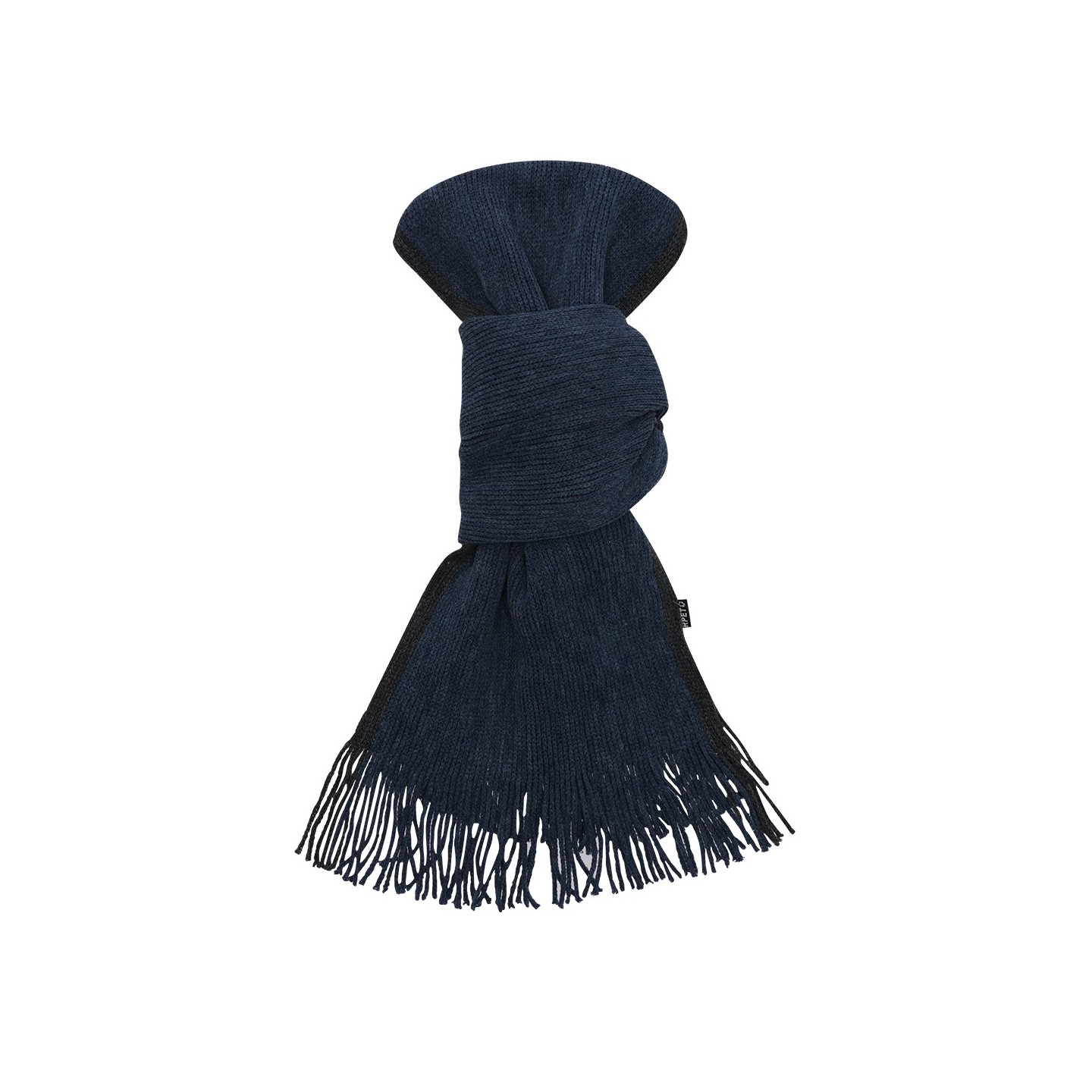 Esta bufanda está confeccionada en cálido poliéster RPET, lo que la hace suave al tacto y perfecta para mantenerte abrigado en los días fríos. Su diseño bitono con bordes en distinto color le confiere un aspecto elegante y moderno, mientras que los flecos añaden un toque de estilo adicional.