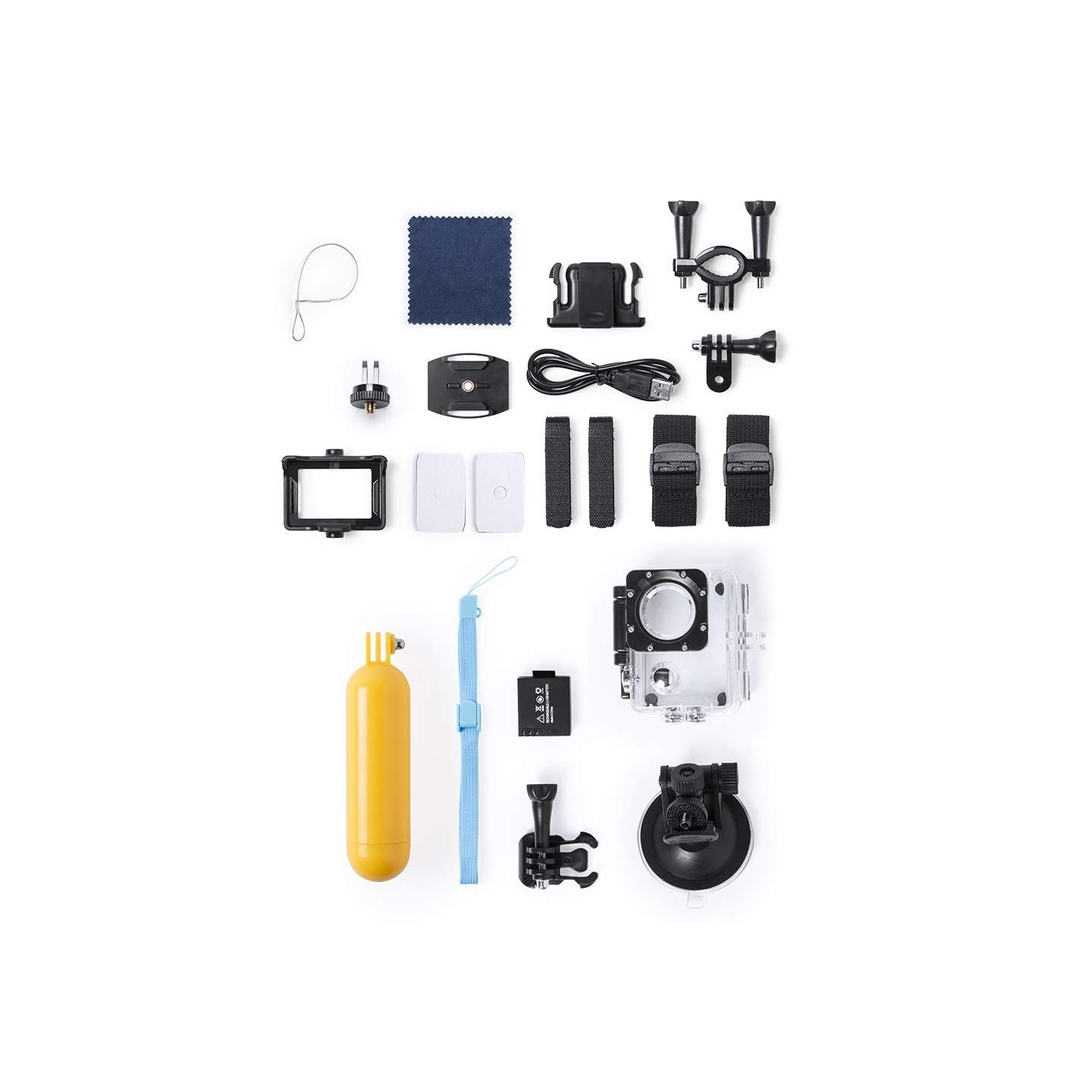 Esta cámara deportiva incluye una carcasa sumergible que te permite grabar emocionantes momentos bajo el agua hasta 30 metros de profundidad. Además, viene con una variedad de accesorios para adaptarla a diferentes situaciones, como casco, manillar o cinturón, y también correas ajustables para cabeza y torso, así como un adaptador giratorio de 360º que te brindan la libertad de llevarla contigo mientras te sumerges en la acción.