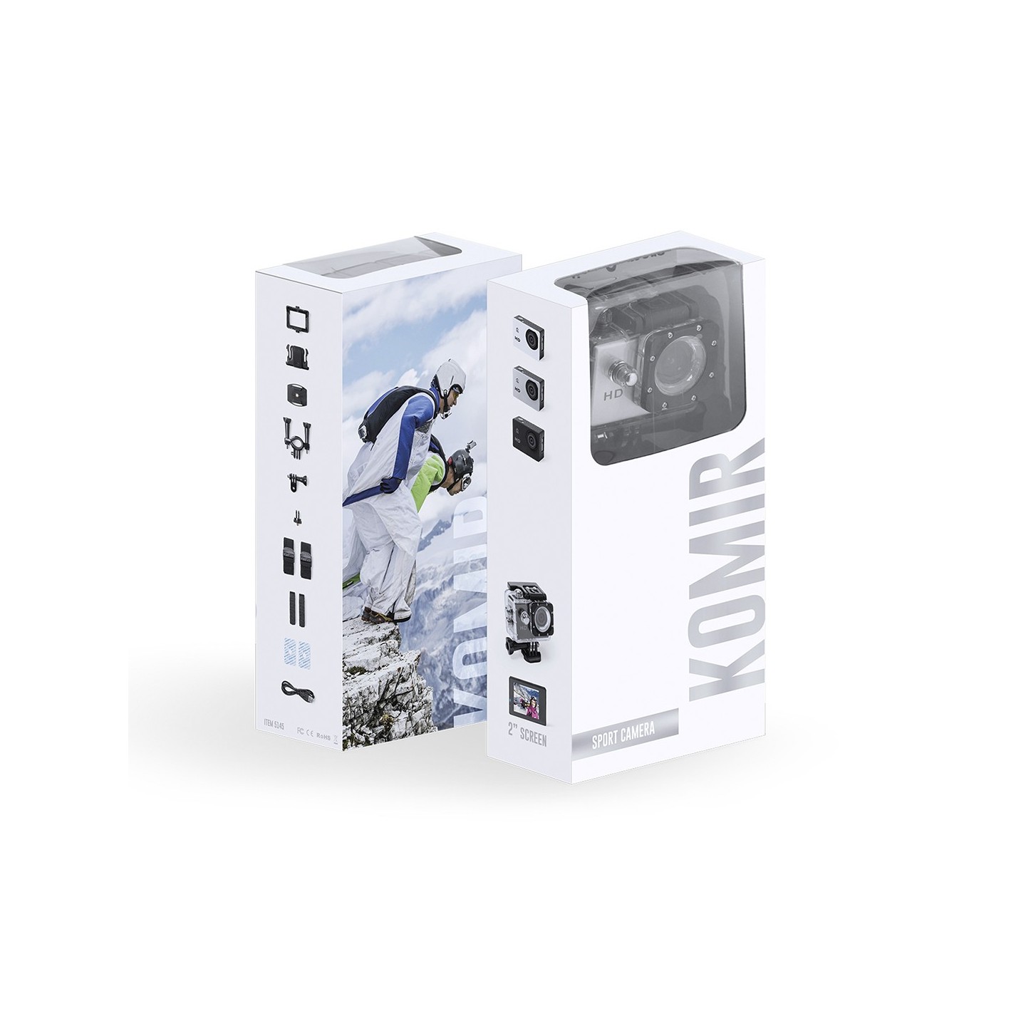 Presentada en una atractiva caja de diseño, la Cámara Deportiva Komir también es una excelente opción como regalo personalizado para empresas que desean sorprender a sus clientes con un gadget versátil y de alta calidad.