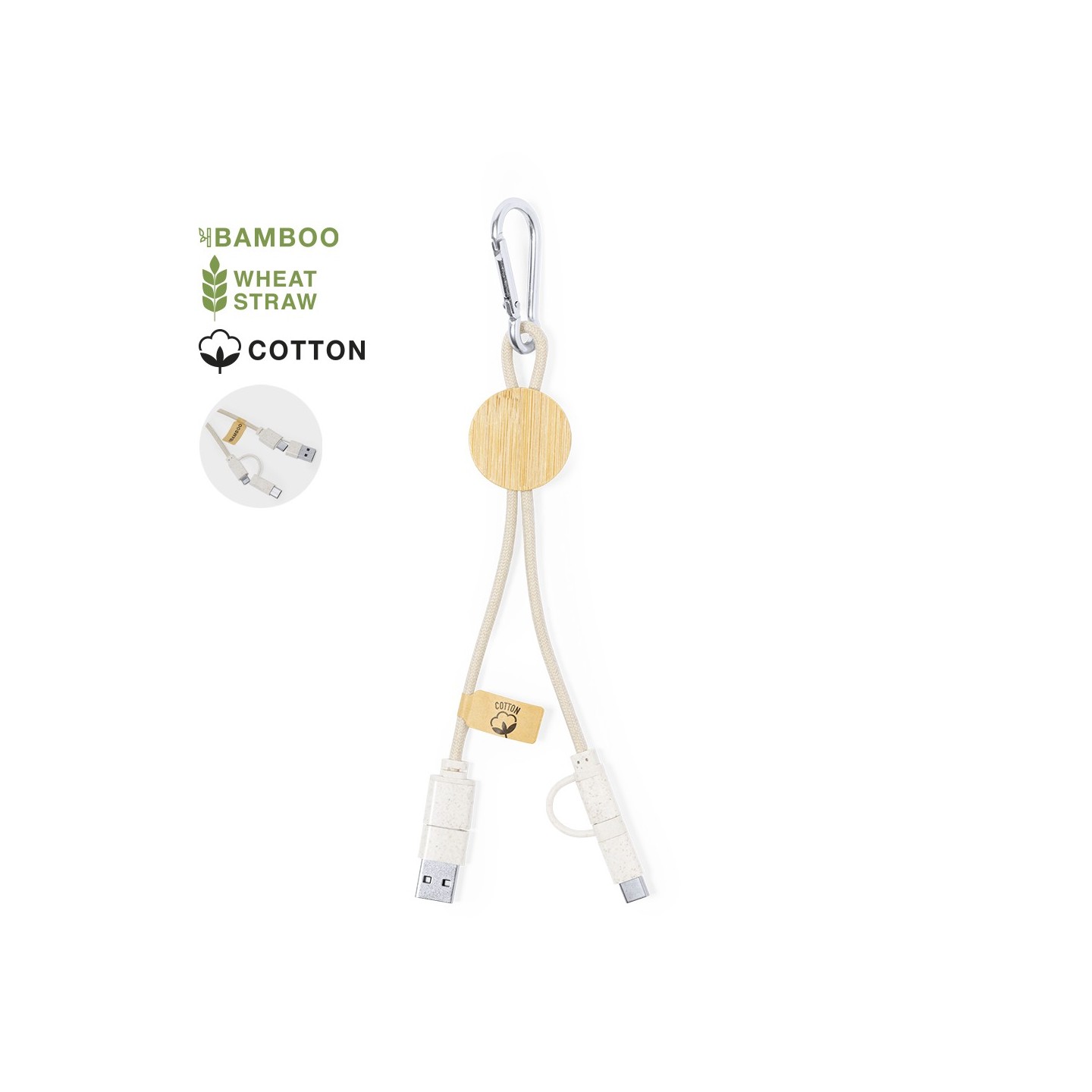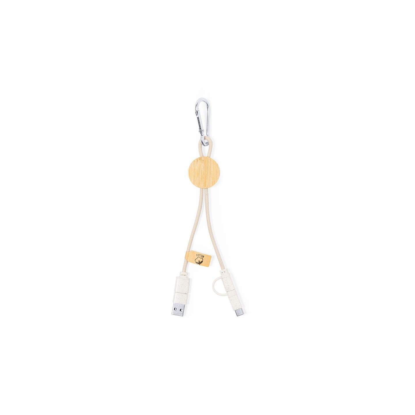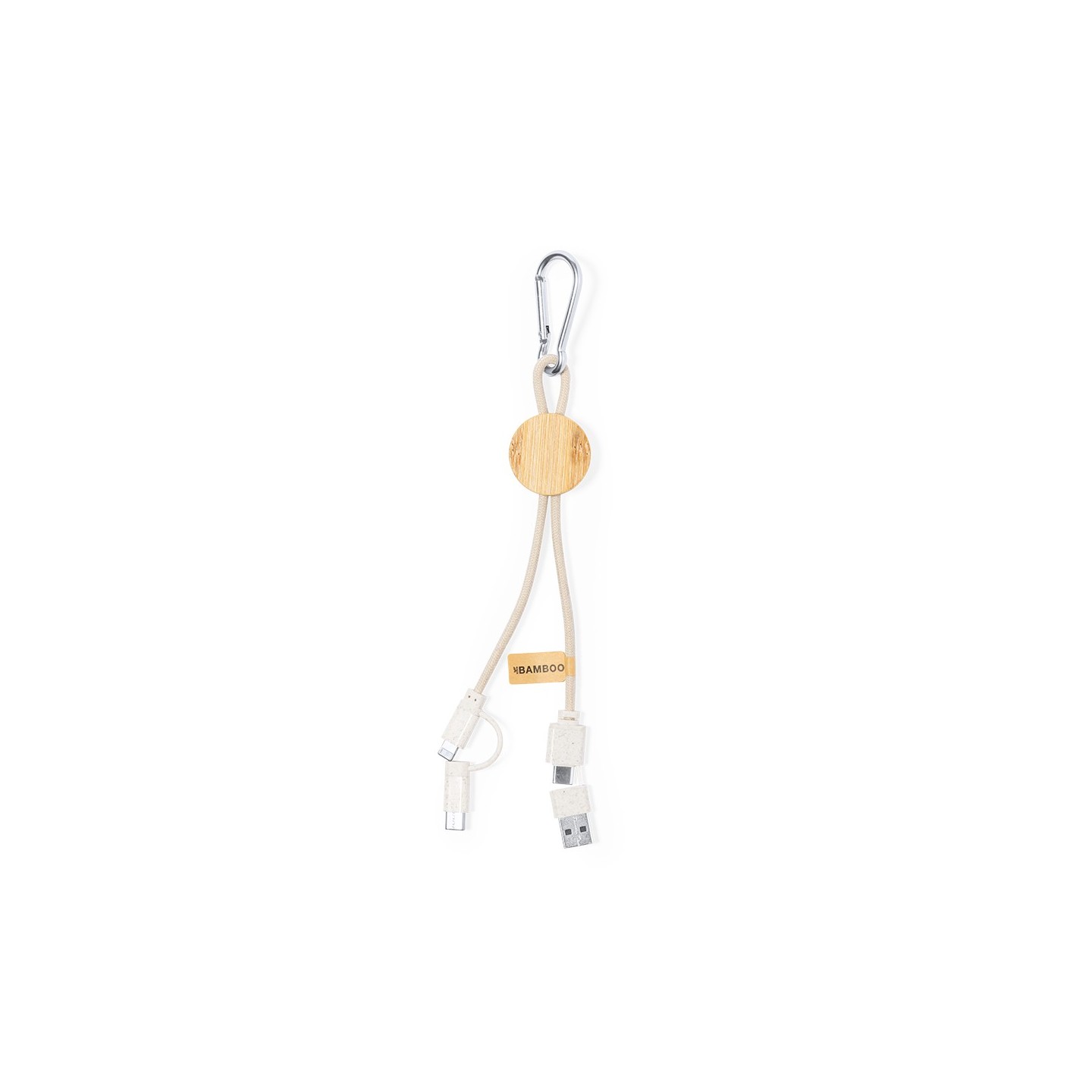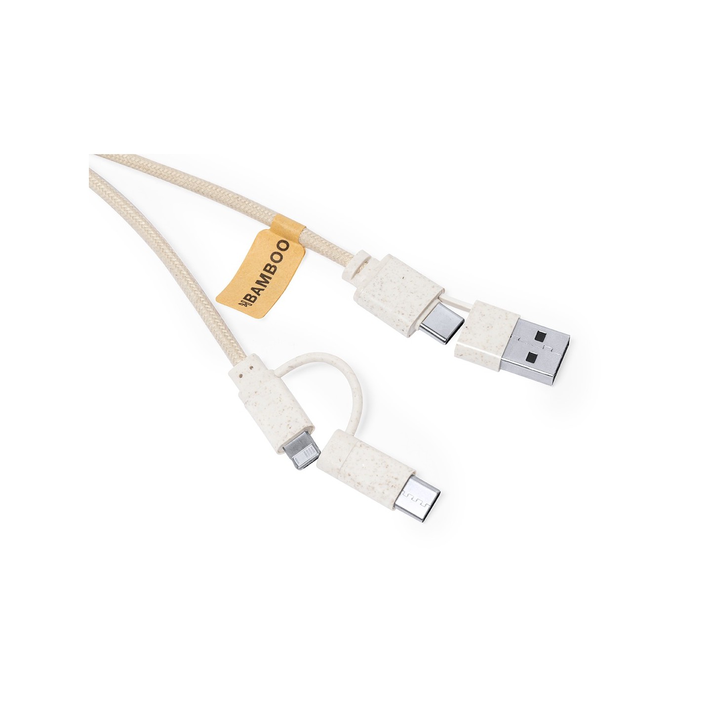 El Cable Cargador Denny es de bambú, algodón, múltiples conexiones. Sostenibilidad y versatilidad en un diseño respetuoso con el medio ambiente