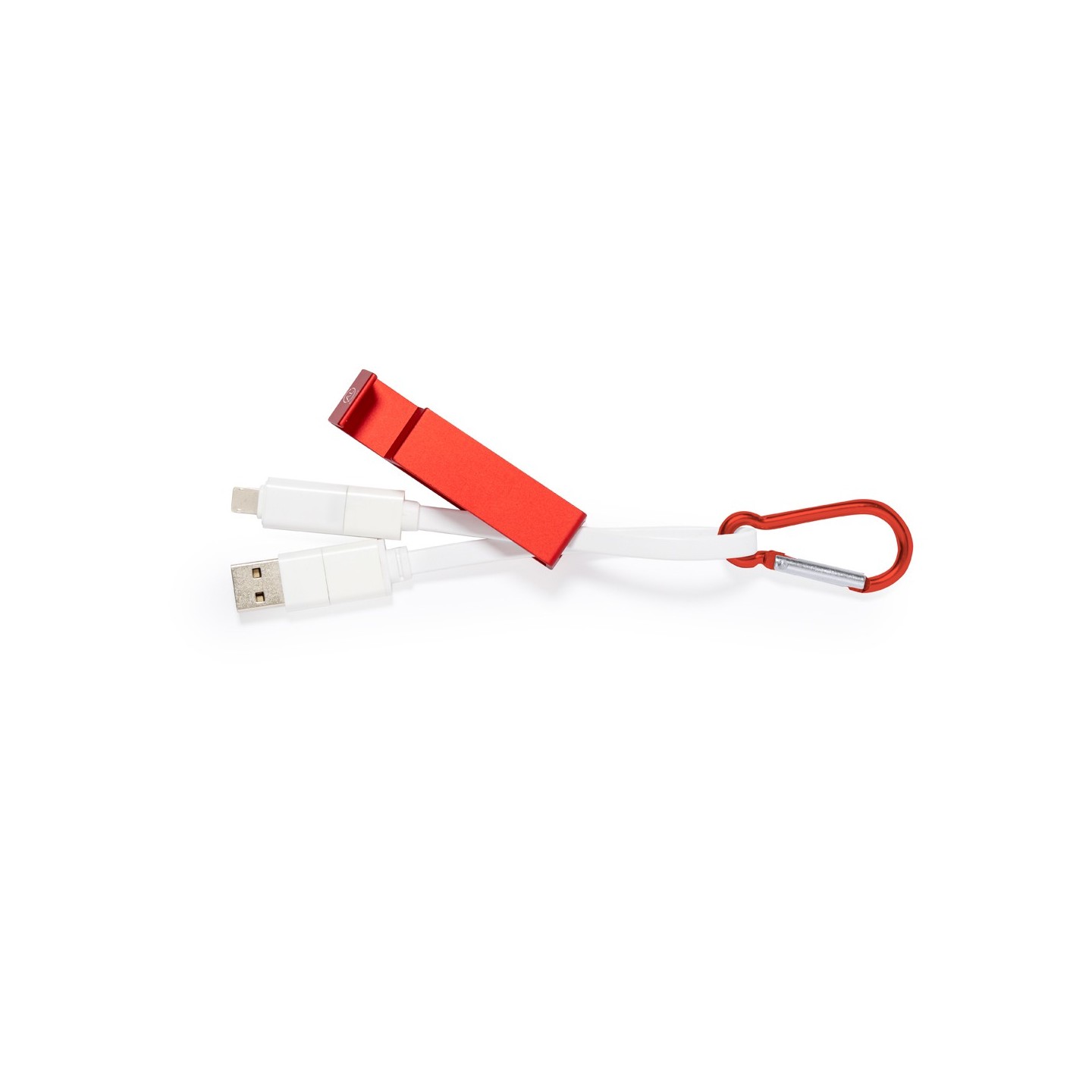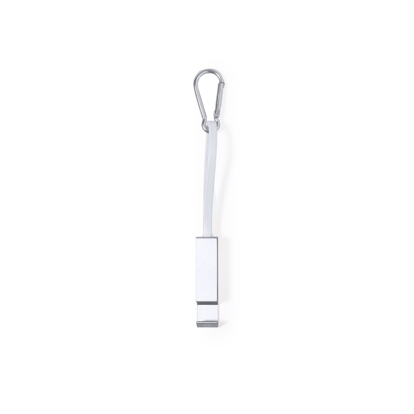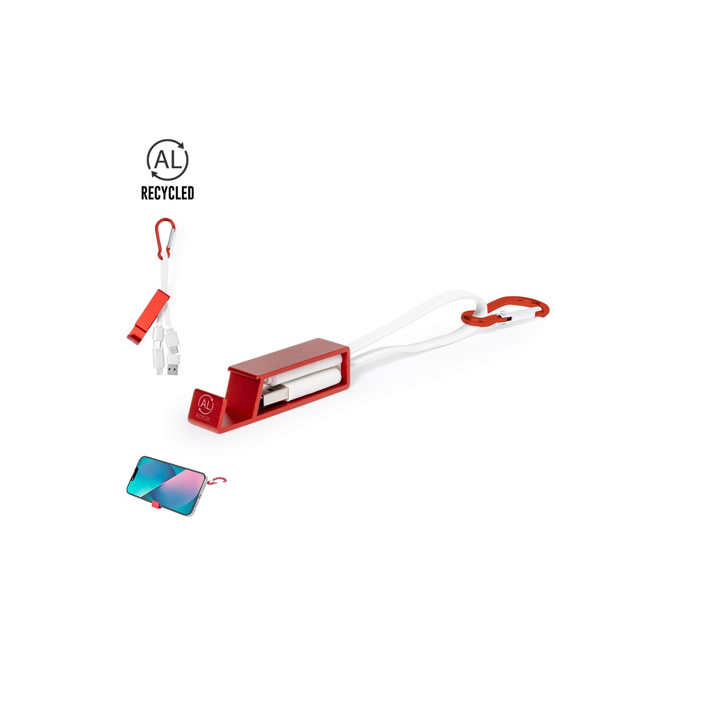 El Cable Cargador Multifunción Pek es de aluminio Reciclado, diseño práctico. Incluye soporte para smartphone. Personalizable.