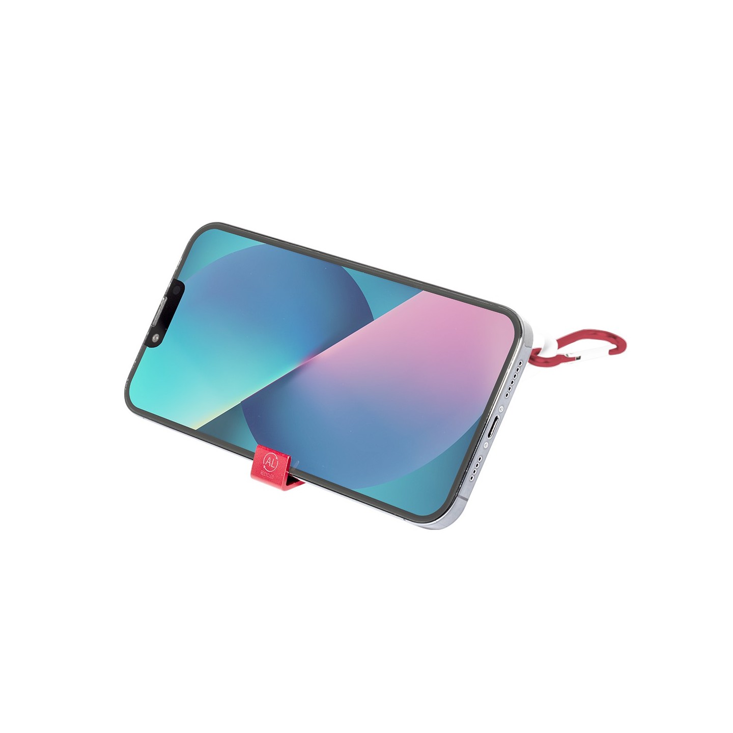 El Cable Cargador Multifunción Pek incluye un mosquetón a juego y un práctico soporte para smartphone, añadiendo funcionalidad adicional a este versátil accesorio. Con conexiones Tipo C (entrada y salida) y dual Micro USB / Lightning, es compatible con una amplia gama de dispositivos.