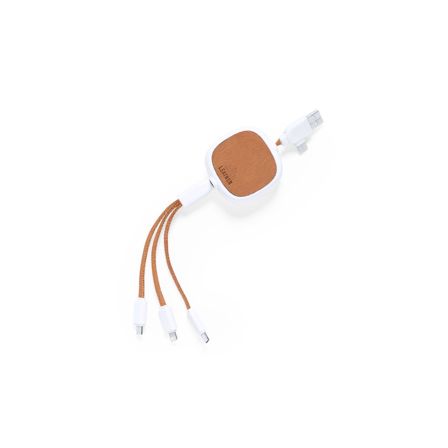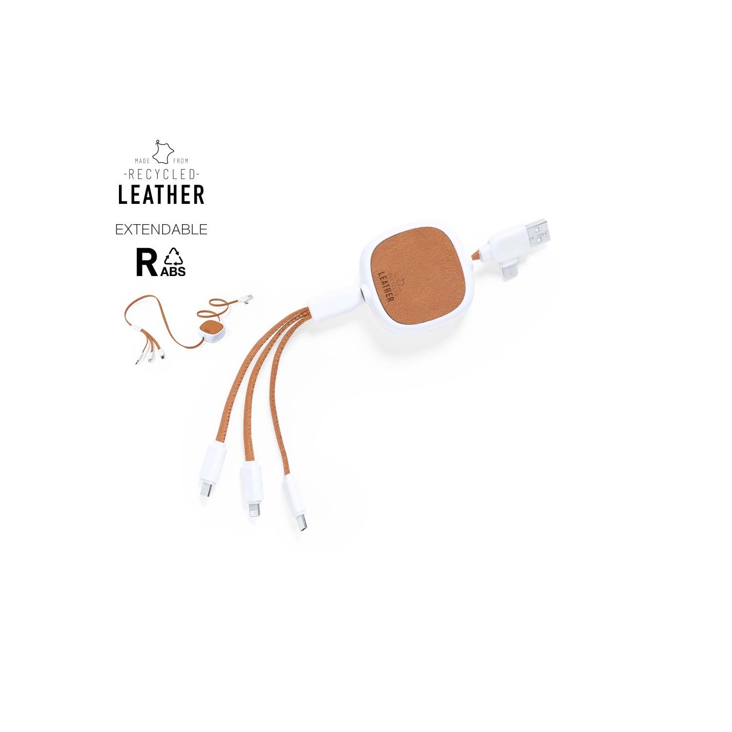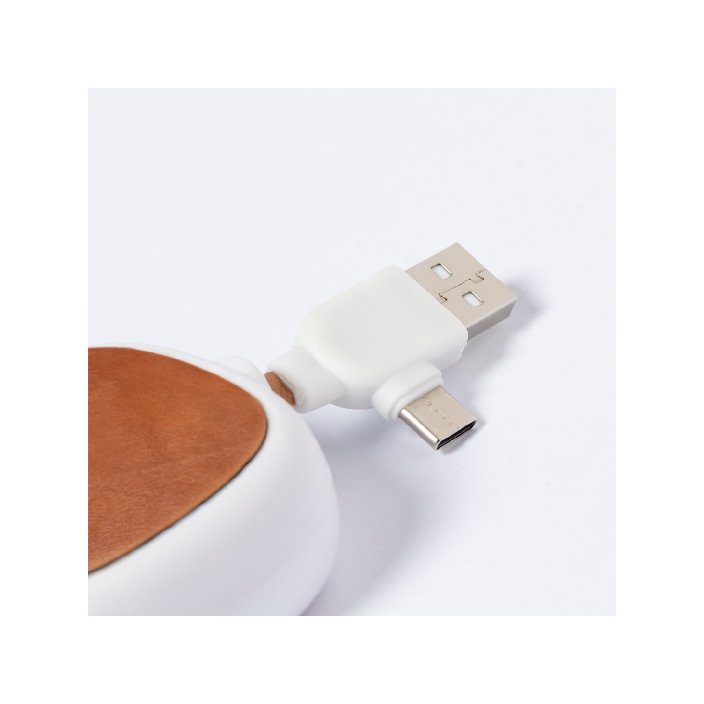 La pieza central del Cable Cargador Sherat RCS está cubierta en cuero reciclado y cuenta con un mecanismo interior que permite extender el cable según tus necesidades. Esta innovadora característica lo hace muy práctico y versátil, ofreciéndote la longitud adecuada para cada situación.