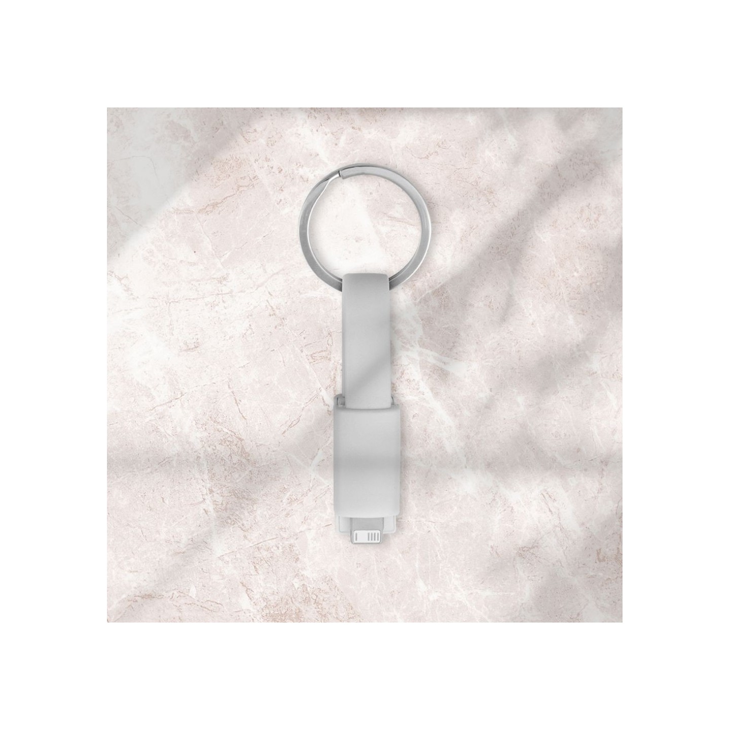 El Cable Cell es un llavero 2 en 1, carga y transmite datos para Android e iOS. Compacto, certificado CE, RoHS y EMC. Presentación portátil en bolsa de plástico