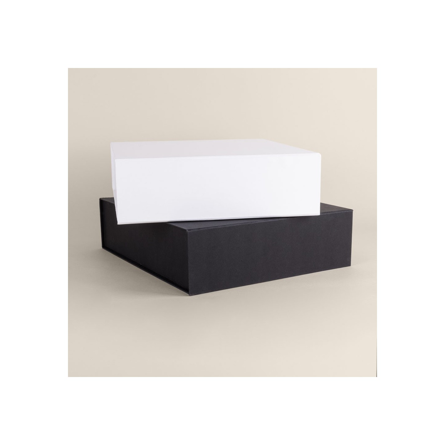 Caja plegable de cartón Kraft forrada con cierre magnético y gran calidad. Personalizable con tu logotipo. Medidas: 27,2 x 30,7 x 8,7 cm. Fácil montaje.