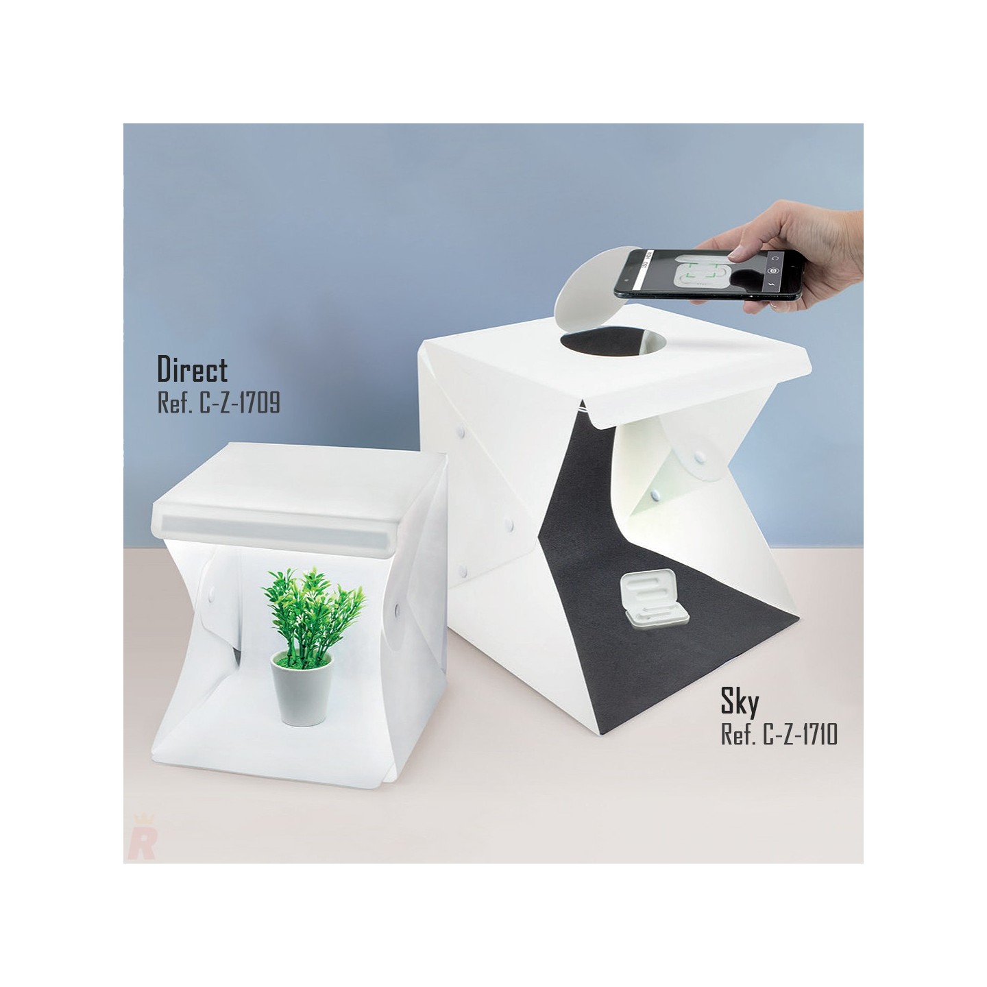 Tenemos disponible en esta familia de estudios de fotografía plegables dos modelos: SKY de tamaño más grande con Ref. C-Z-1710 y DIRECT de tamaño más pequeño con Ref. C-Z-1709)