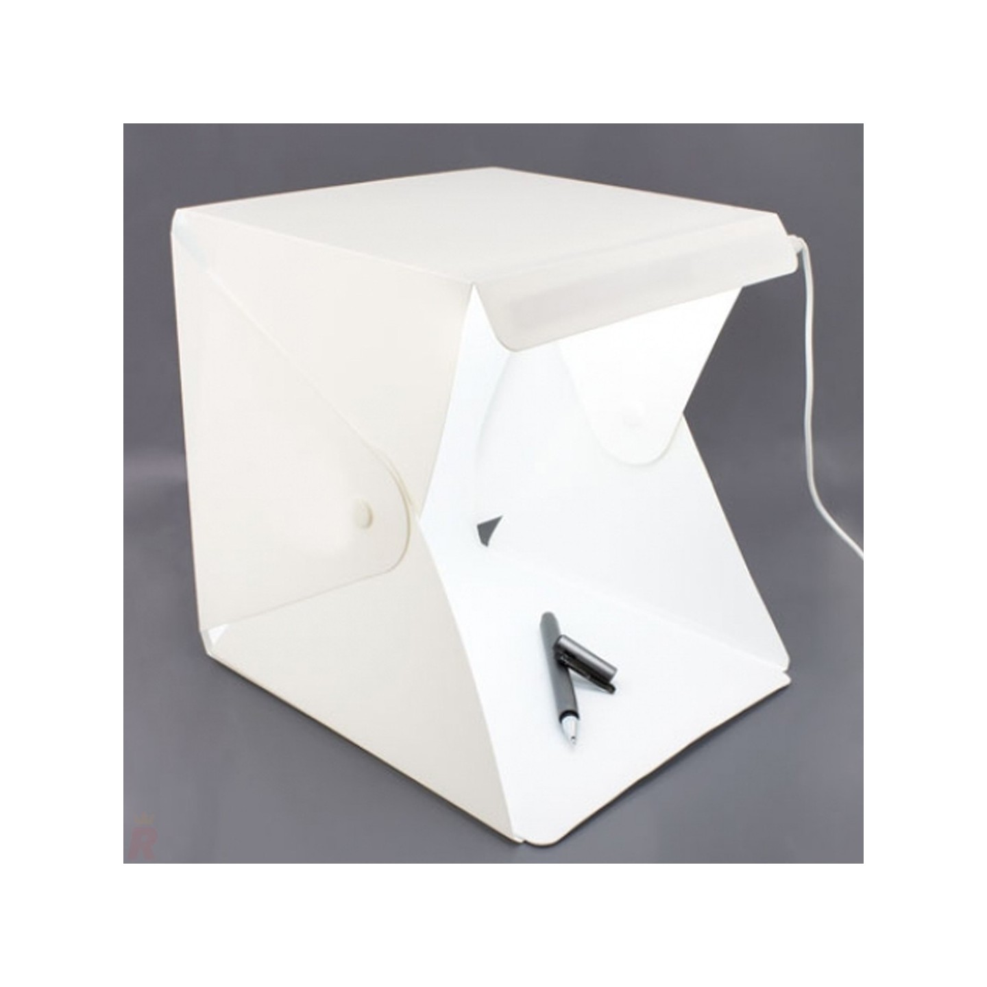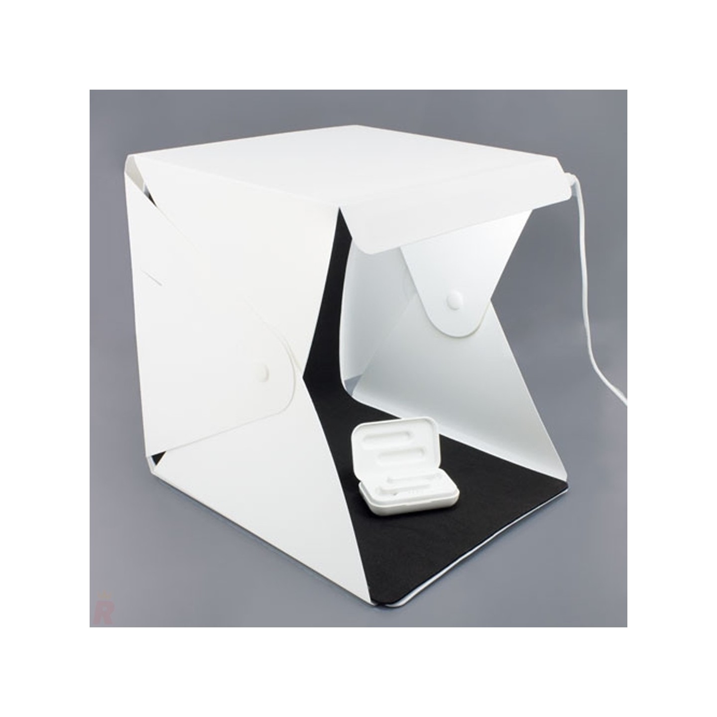 Caja Estudio Fotográfico Luz Plegable DIRECT con LED y fondos intercambiables. Diseño compacto y práctico, ideal para fotos de productos y merchandising