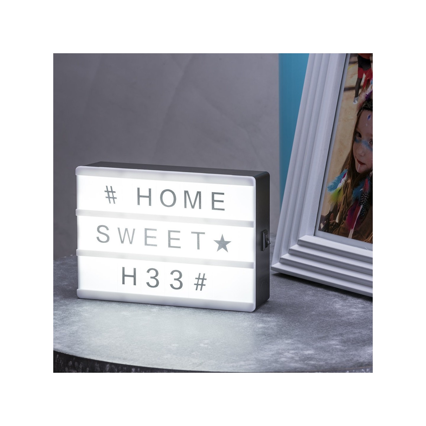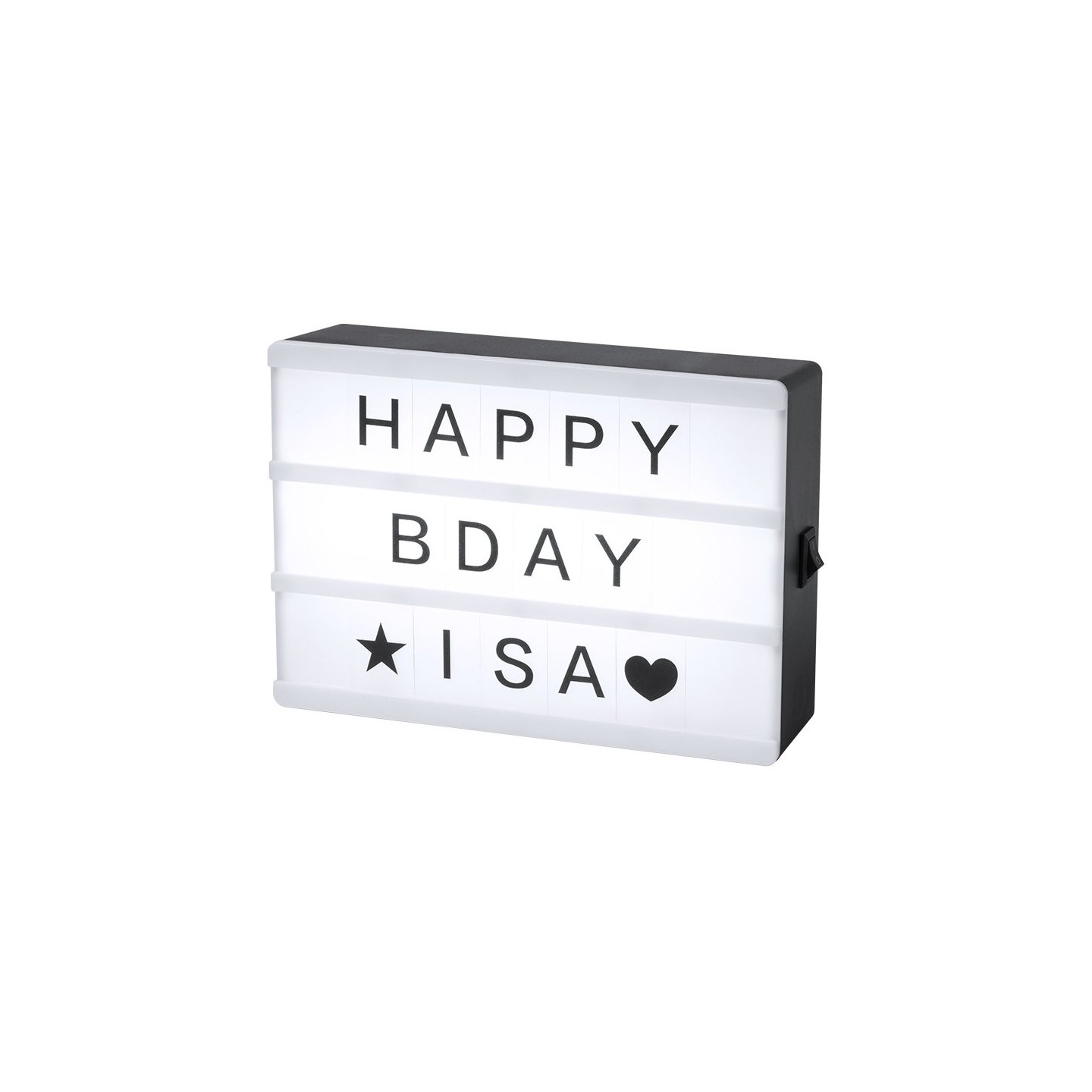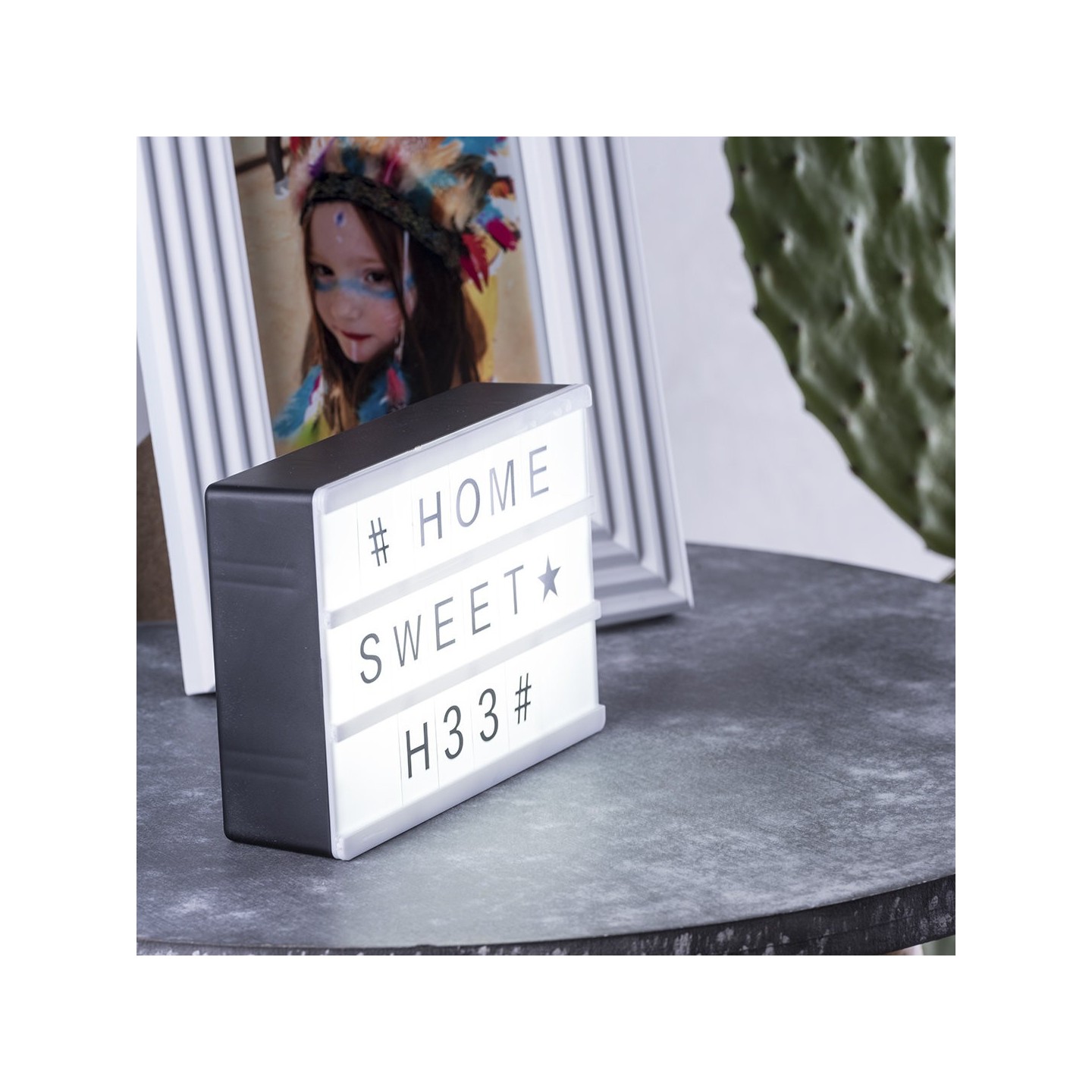 La Caja Luz Cinemax es perfecta para crear mensajes personalizados en un ambiente acogedor. La retroiluminación de 4 ledes y el botón ON/OFF la hacen muy práctica.