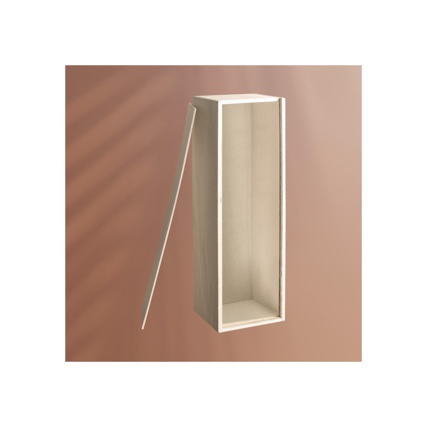 La Caja Cedar es de MDF de calidad para destacar tus regalos. Medidas 8,5x8,5x27 cm. Elegancia y protección para botellas en cada ocasión.