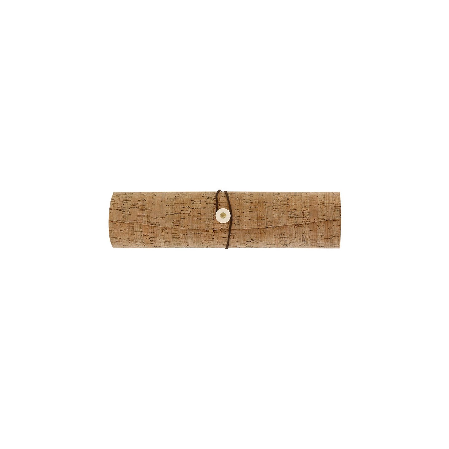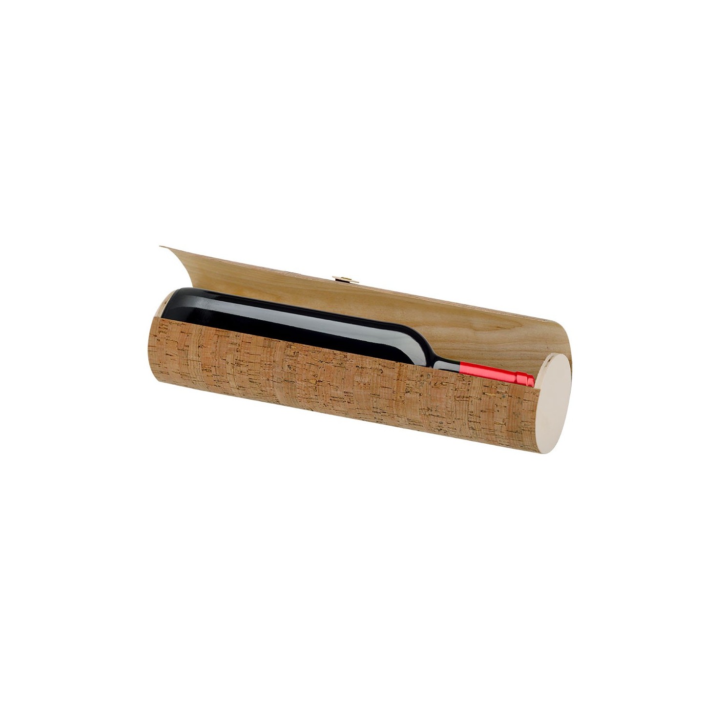 Caja de presentación BAREMON con interior de madera natural y recubrimiento de corcho. Cierre de correa marrón. Personalizable con tu logotipo.