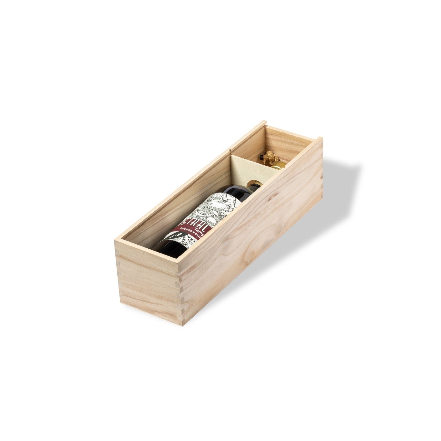Realza tus regalos con la Caja Presentación Grimbur fabricada con madera de Paulownia, seguridad para botella y diseño elegante para 1 unidad. Ideal para botellas de vino