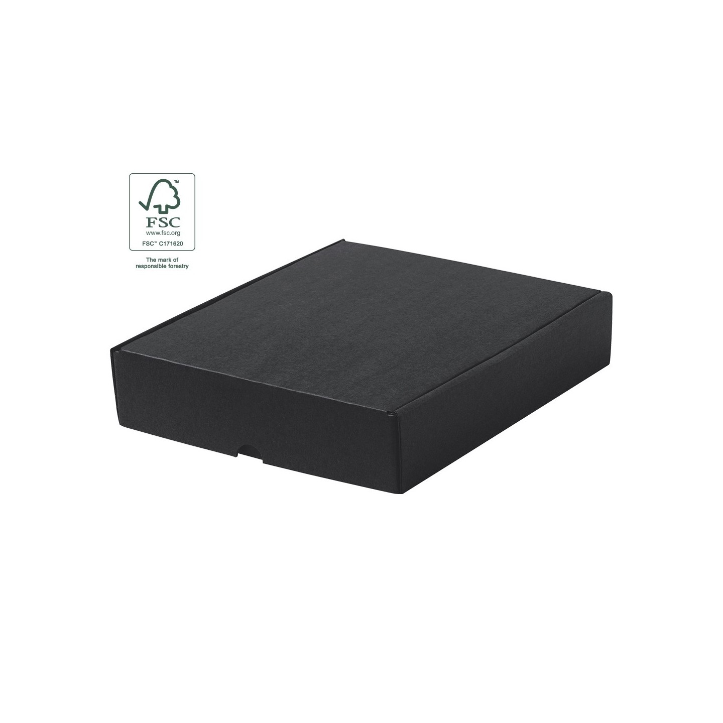 Caja de presentación MEXAR en cartón reciclado negro, con certificación FSC. Personalizable con tu logotipo. Ideal para productos y regalos corporativos sostenibles.