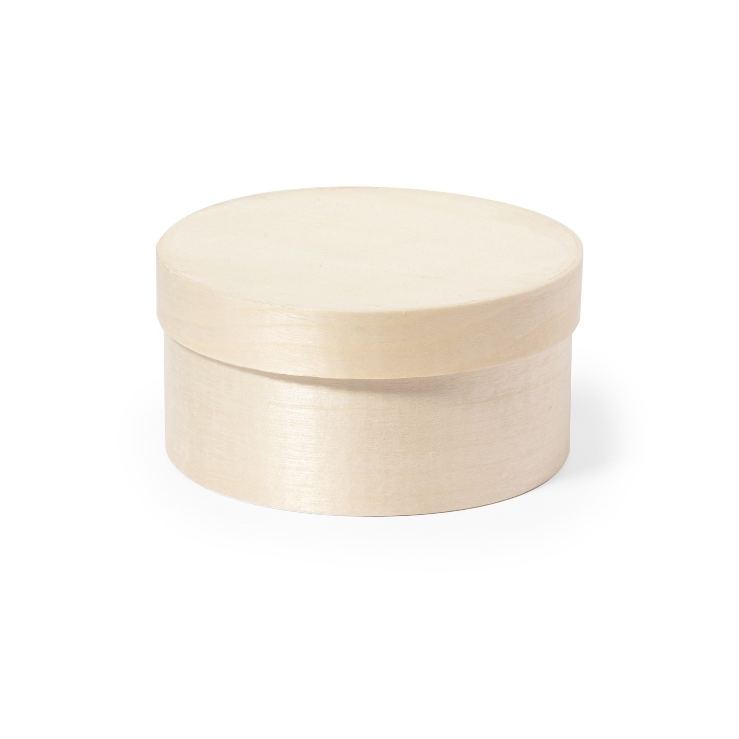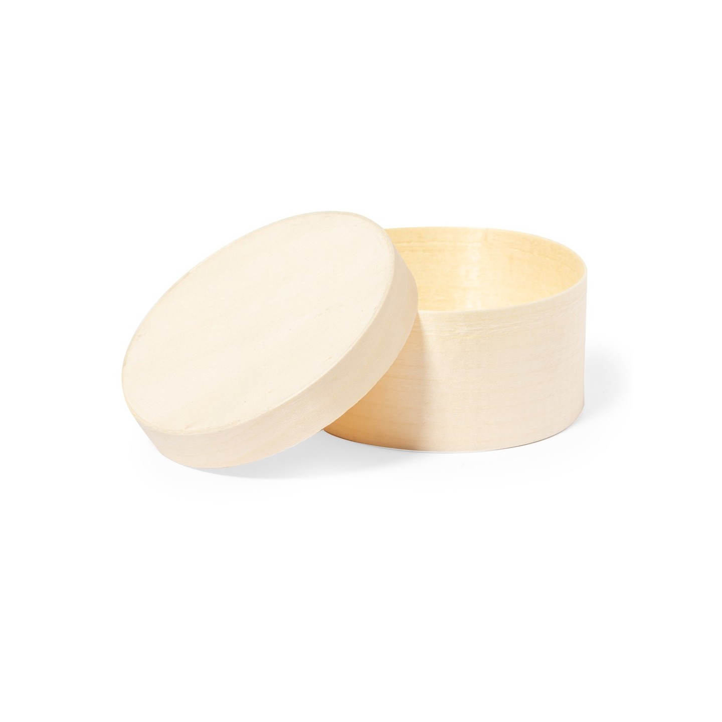 La Caja Presentación Abedi es una elegante caja redonda de madera natural con tapa a juego. Personalizable con tu logo.