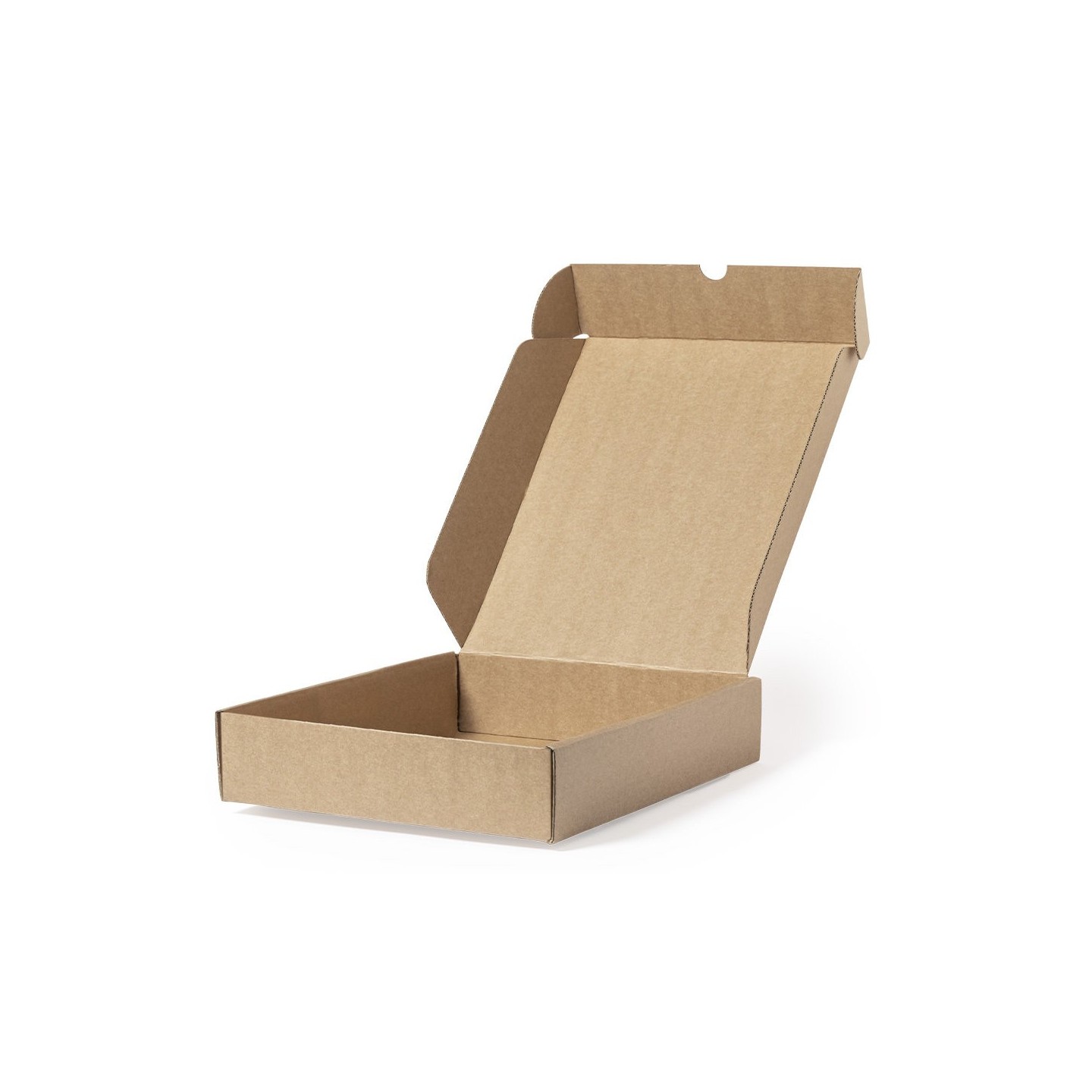 La Caja Presentación Ayira es una elegante caja mediana de cartón reciclado corrugado. Regala con estilo y responsabilidad ambiental.