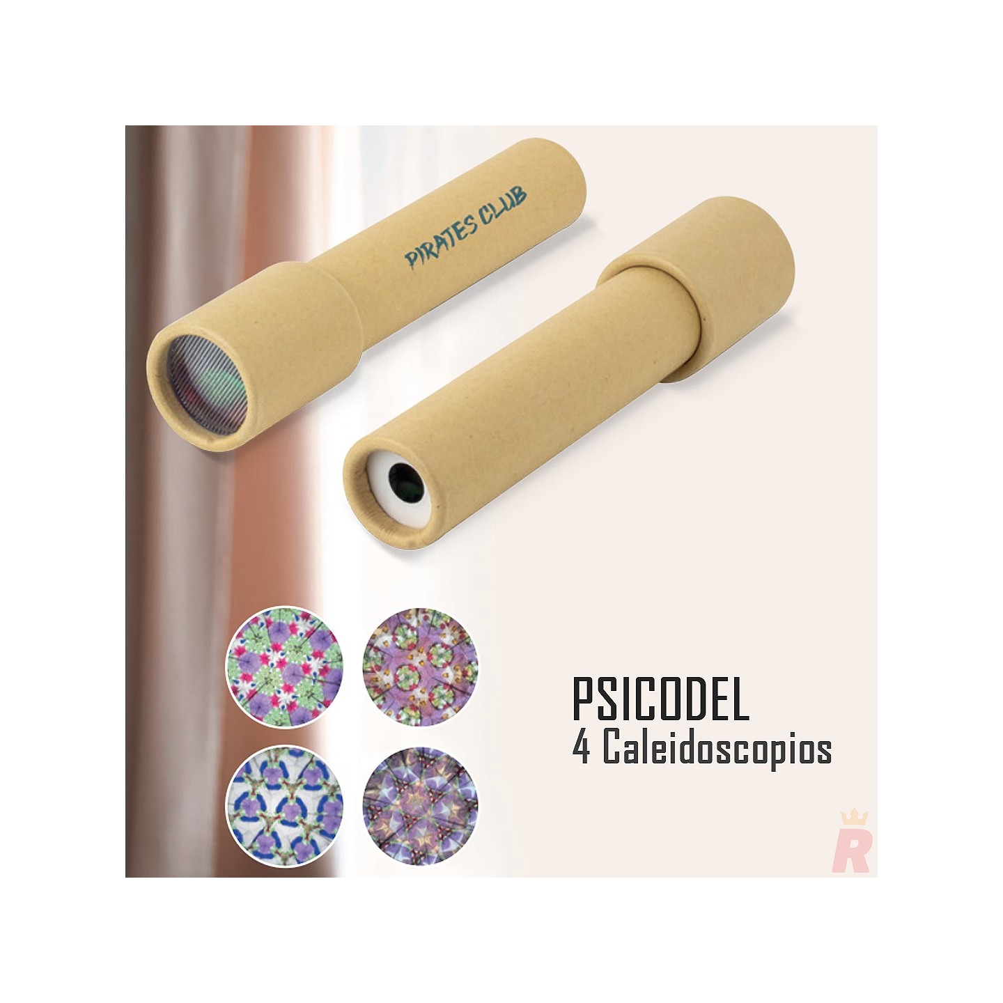 Set de caleidoscopios de cartón Kraft que permiten descubrir patrones multicolores. Perfectos para fomentar la creatividad y la curiosidad de los más pequeños