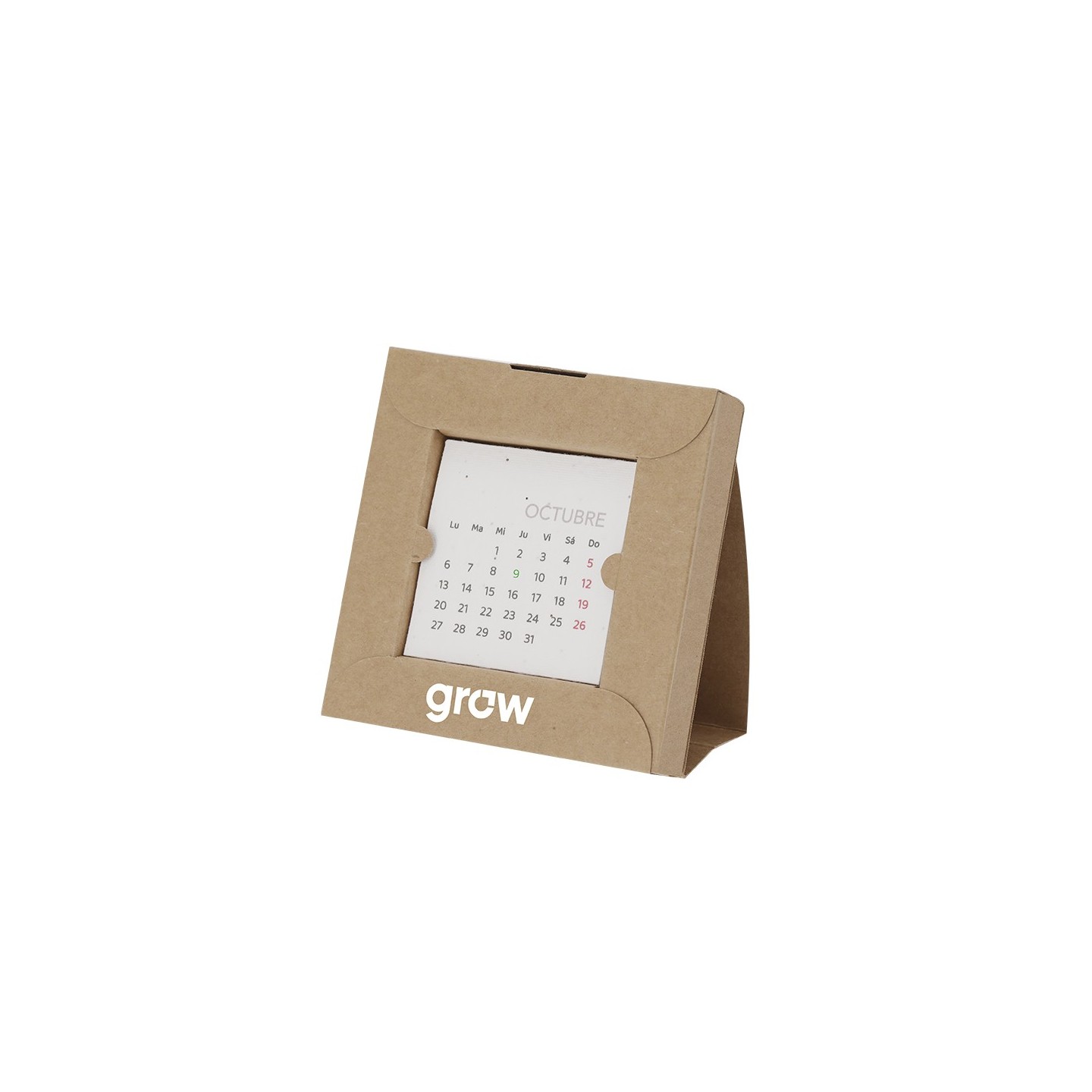 El Calendario Sobremesa Semilla Krily se presenta en una elegante caja soporte de cartón, que añade un toque de sofisticación y protección al producto. Es una opción excelente para regalos corporativos o promociones que destacan por su originalidad y compromiso con el medio ambiente.