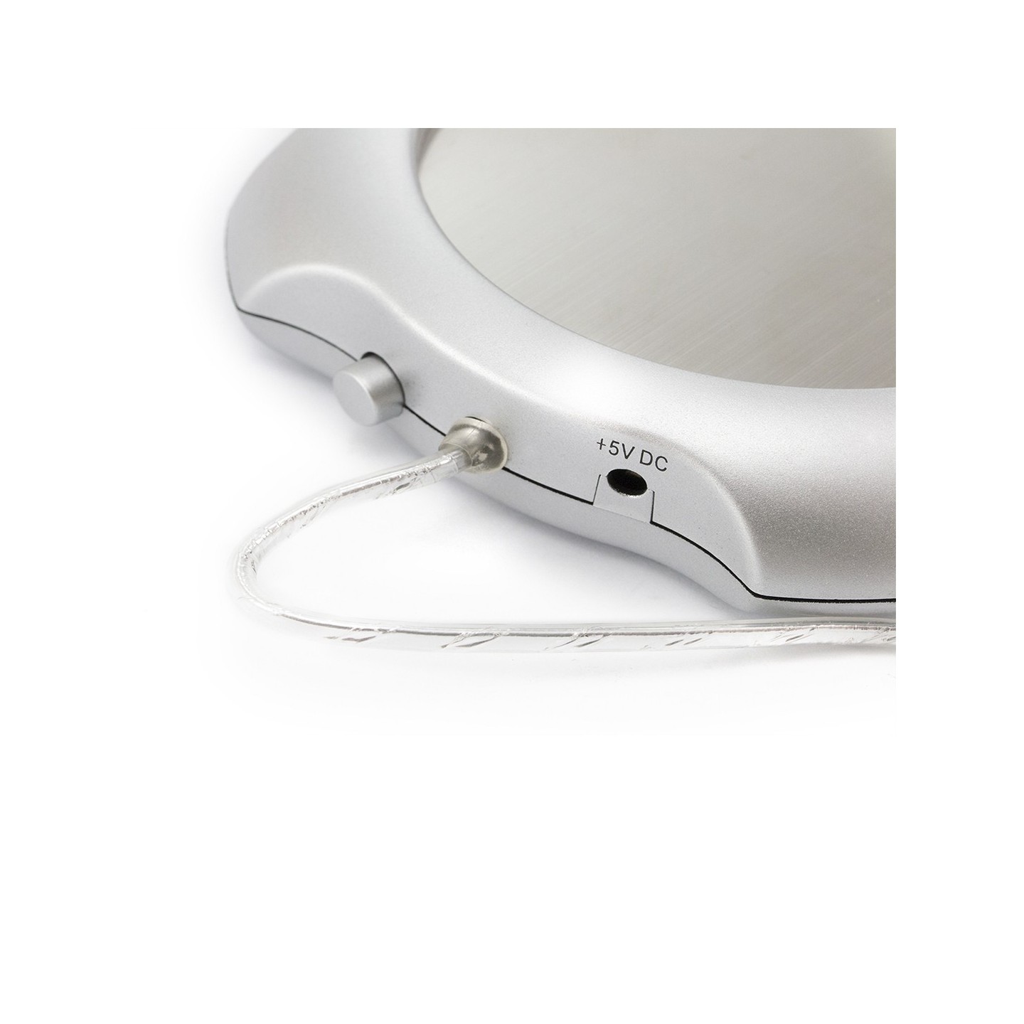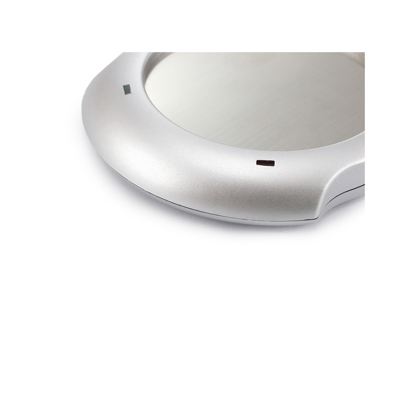 Este calentador de tazas es el compañero perfecto. Con su elegante diseño en gris y conexión USB, mantiene tus bebidas calientes y es compatible con tazas de hasta 7,4 cm de diámetro. ¡Imprescindible!
