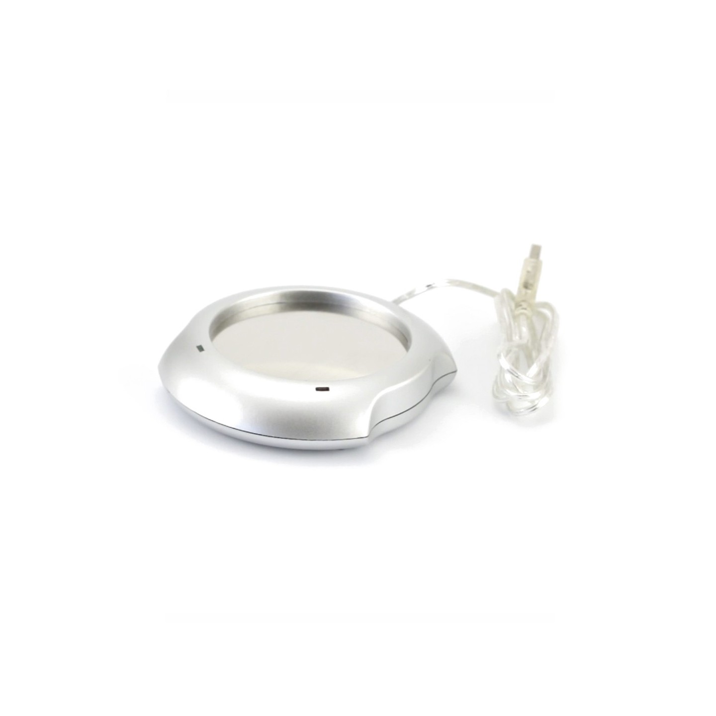 Con su conexión USB y su superficie metálica, el Calentador de Tazas Taza ofrece una excelente conducción de calor, asegurando que tu bebida se mantenga caliente incluso en los días más fríos. Su elegante diseño en color gris agrega un toque de estilo a tu entorno de trabajo o hogar.