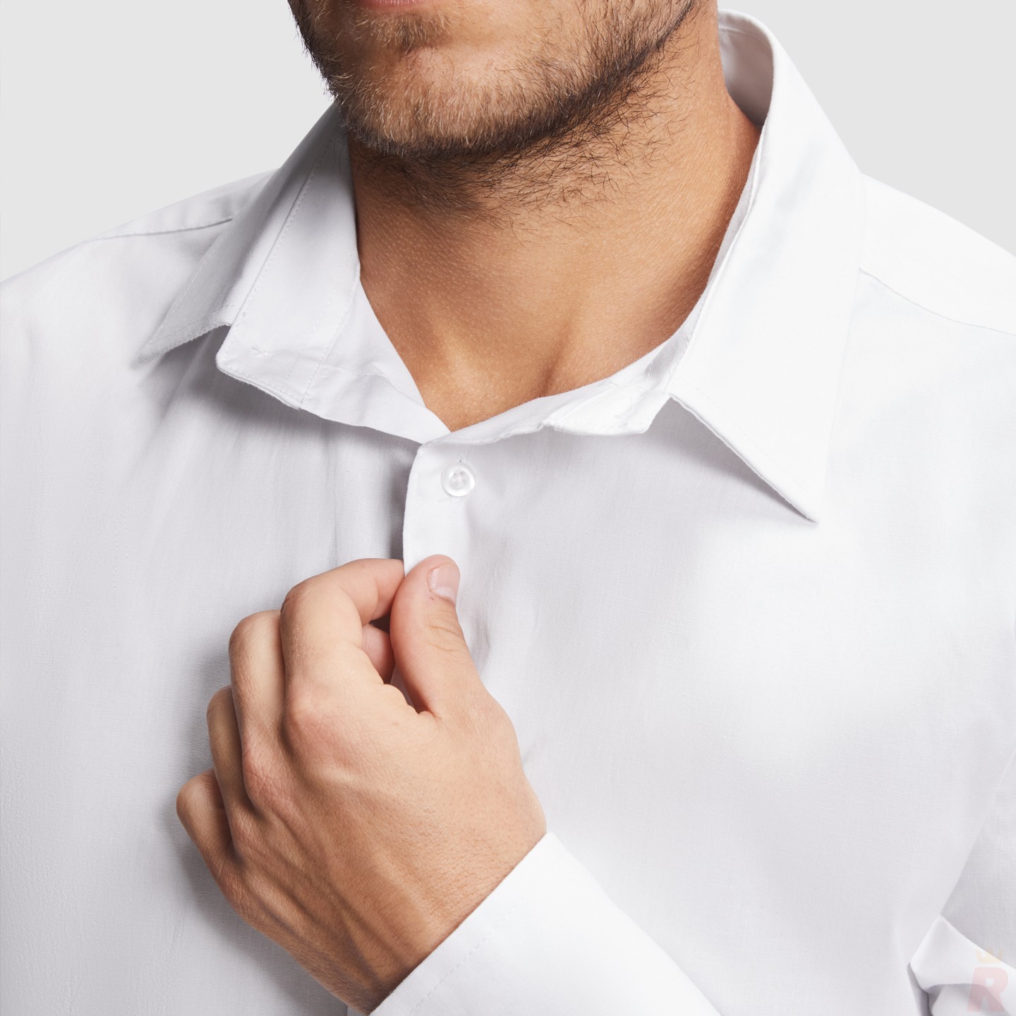 Camisa de hombre de manga larga con tejido stretch, diseño elegante y cómodo. Ideal para uniformidad en oficinas, hostelería o como regalo promocional personalizado con logotipo