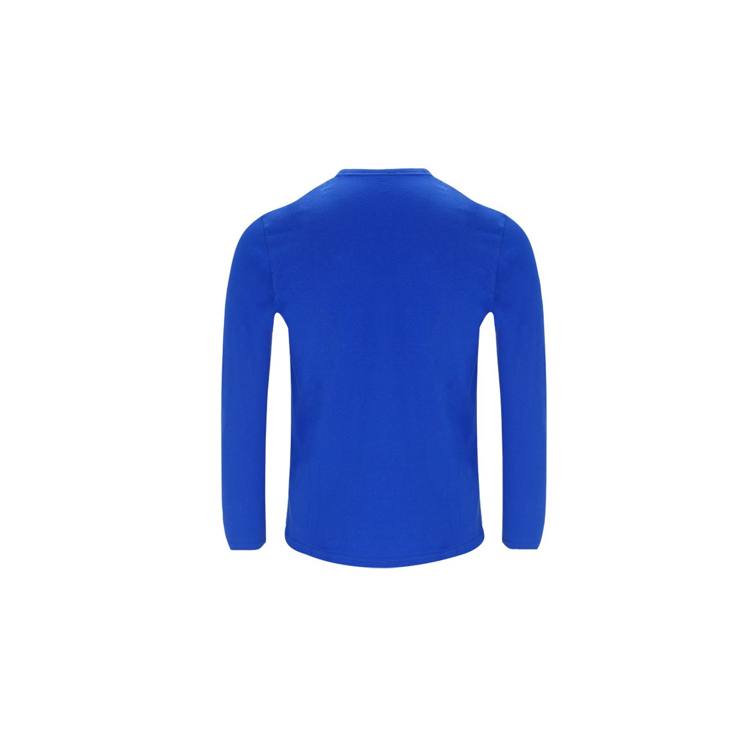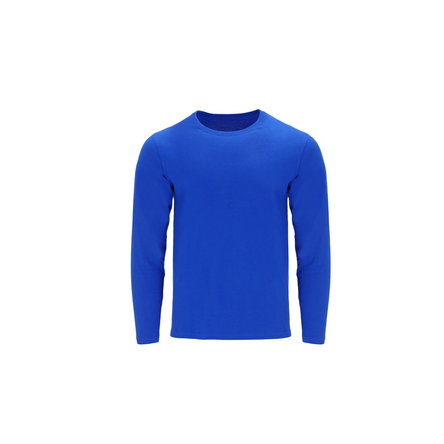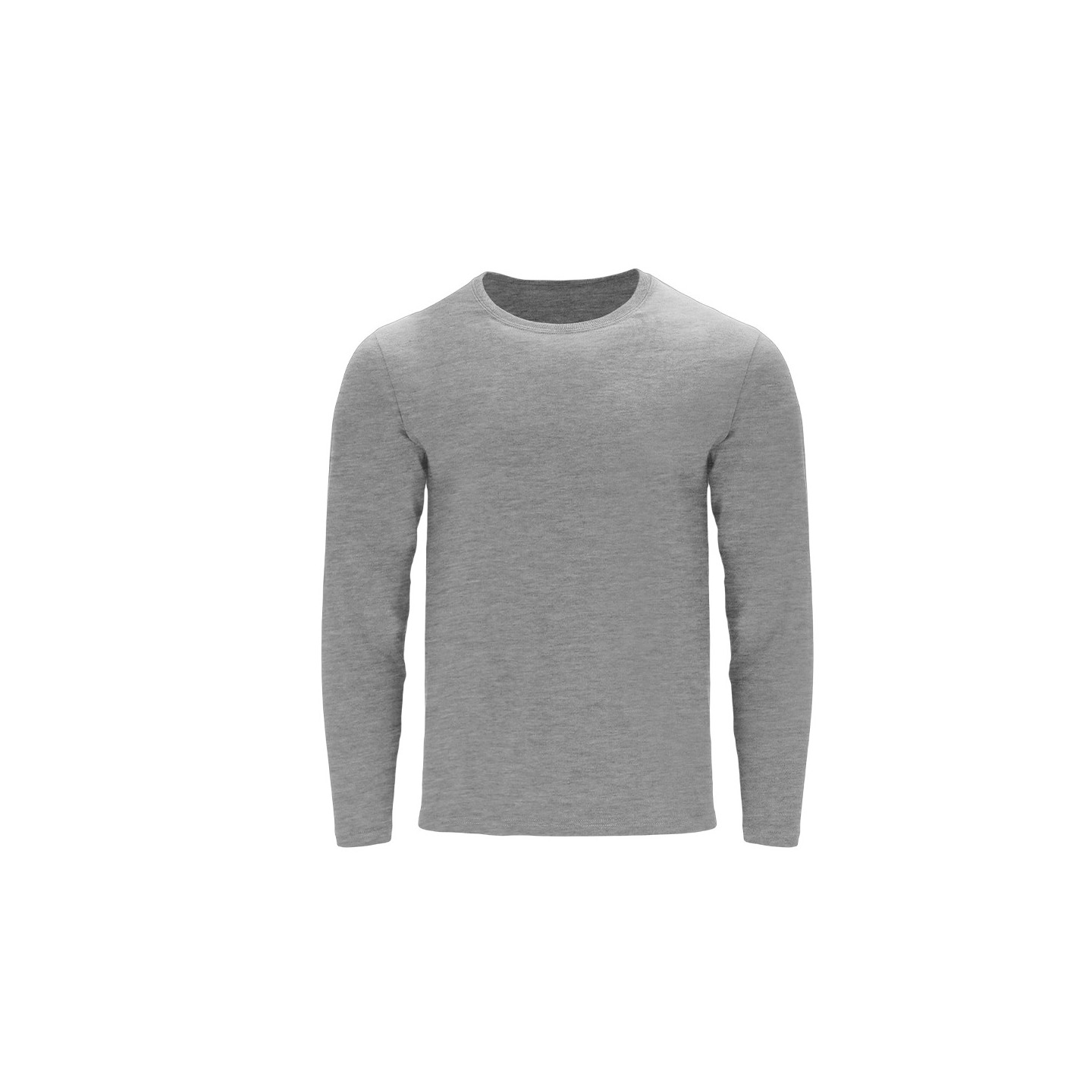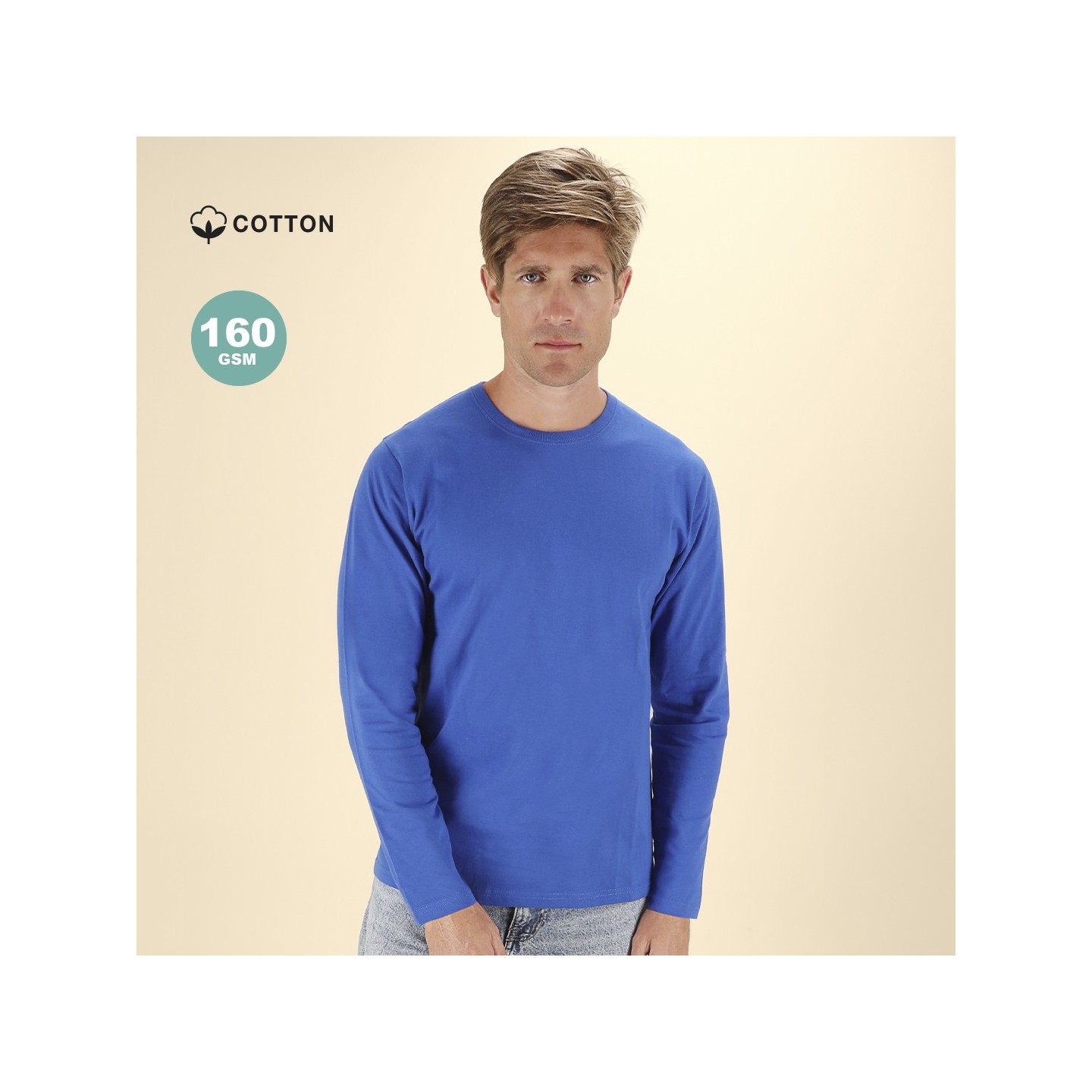 Camiseta de manga larga en 100% algodón (gris: 85% algodón + 15% viscosa). Tejido tubular, cuello redondo acanalado y puños sin canalé. Personalizable, cómoda y versátil.
