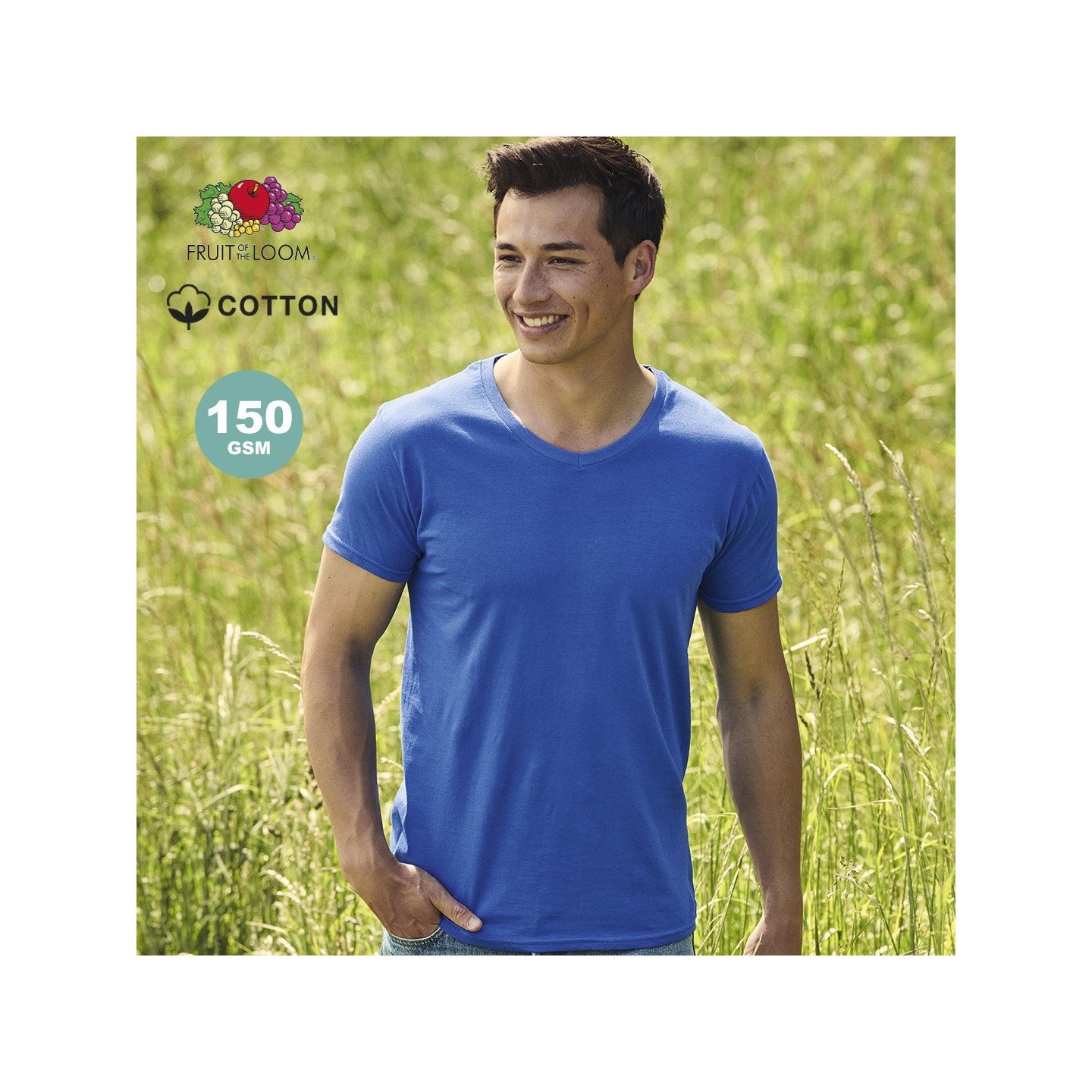 Camiseta para adulto color Iconic V-Neck de Fruit Of The Loom. Esta camiseta está fabricada en material 100% algodón peinado Ring Spun de 150g/m2, lo que garantiza su suavidad y durabilidad. Su corte moderno y ajustado ofrece un estilo contemporáneo y favorecedor.