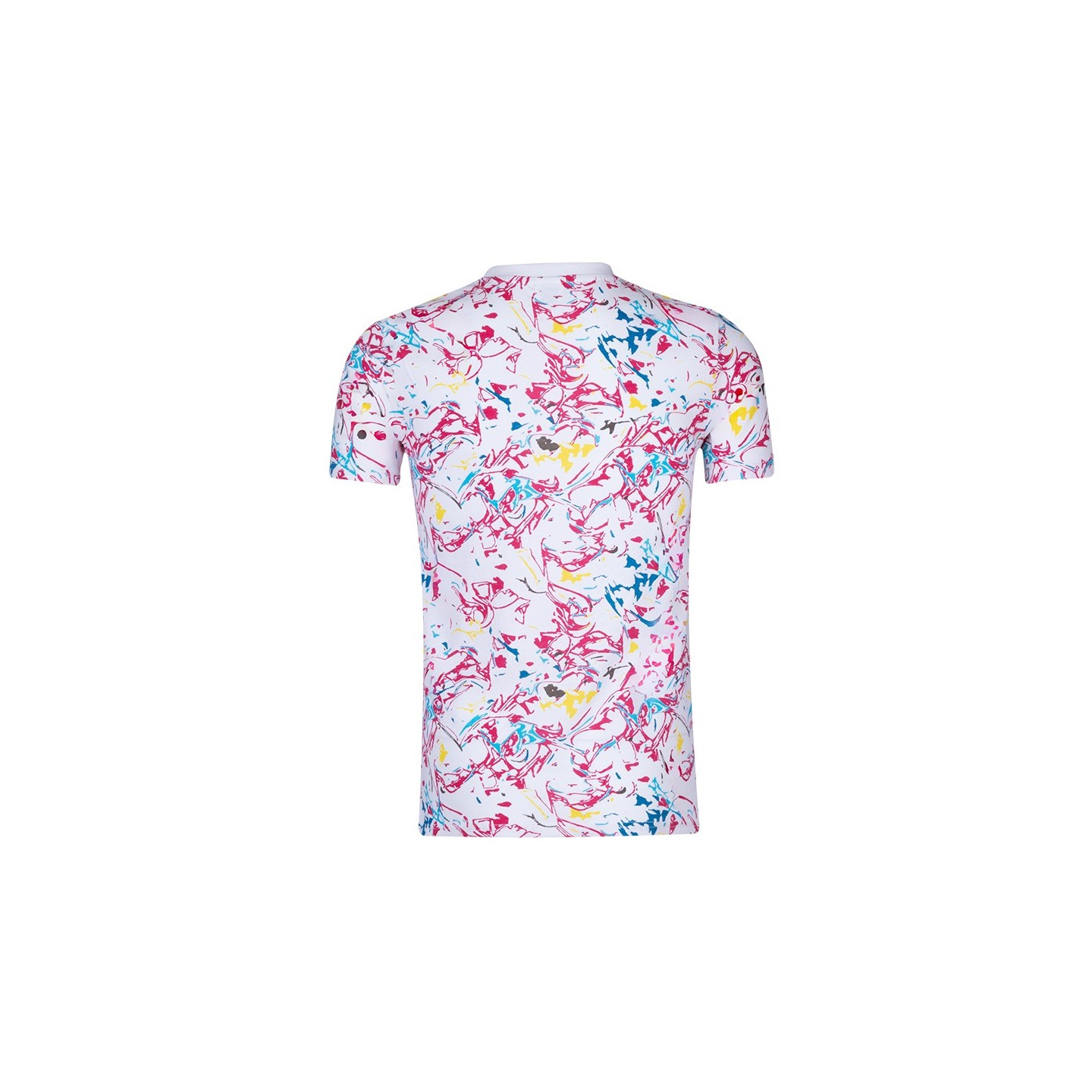 La camiseta Helixa presenta un corte moderno que se adapta a cualquier estilo. Su cuello redondo estrecho en canalé 2x2 le brinda un toque de elegancia, mientras que la doble costura en el dobladillo y mangas asegura una mayor durabilidad y resistencia ante el uso intensivo.