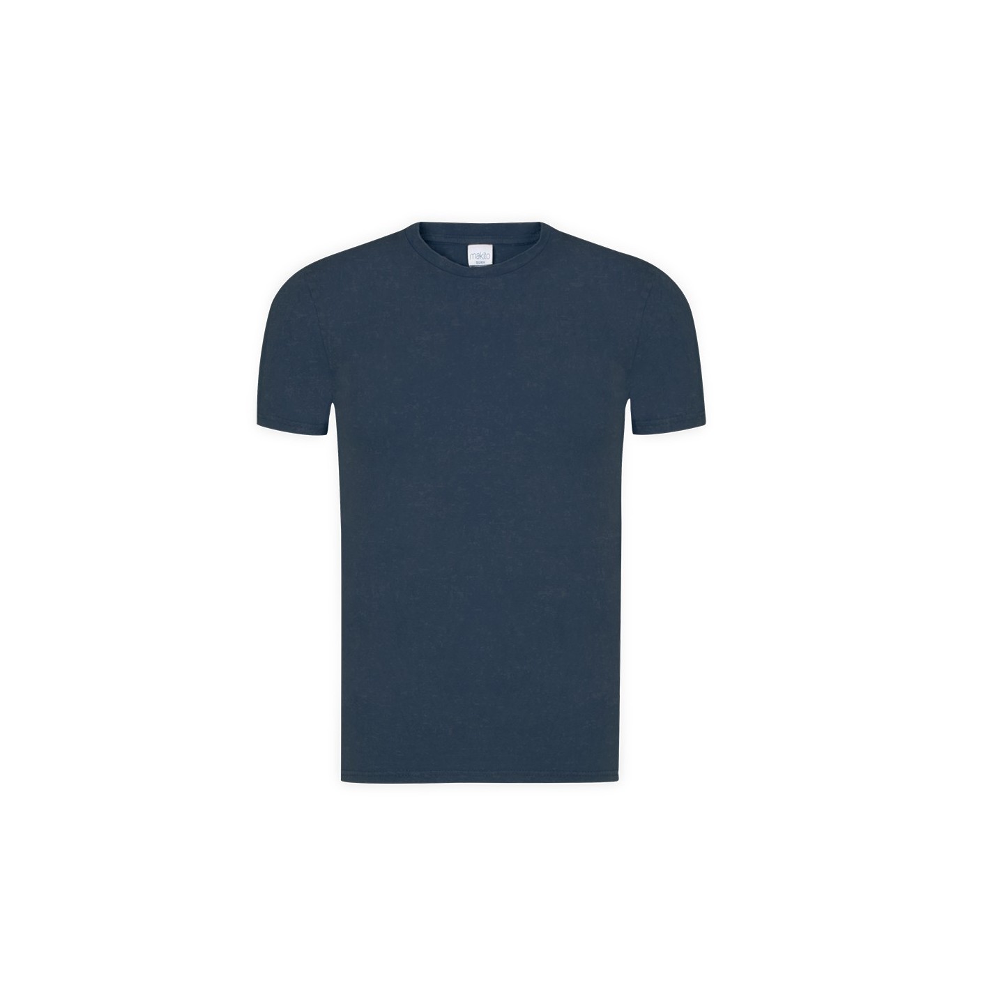 Camiseta unisex con efecto lavado jeans lo que hace que cada pieza sea única e irrepetible. Confeccionada en 100% algodón peinado Ring Spun de 150g/m2, esta camiseta destaca por su tacto suave y corte moderno. Su diseño innovador presenta un cuello redondo estrecho en canalé 2x2, brindando un estilo elegante y contemporáneo.