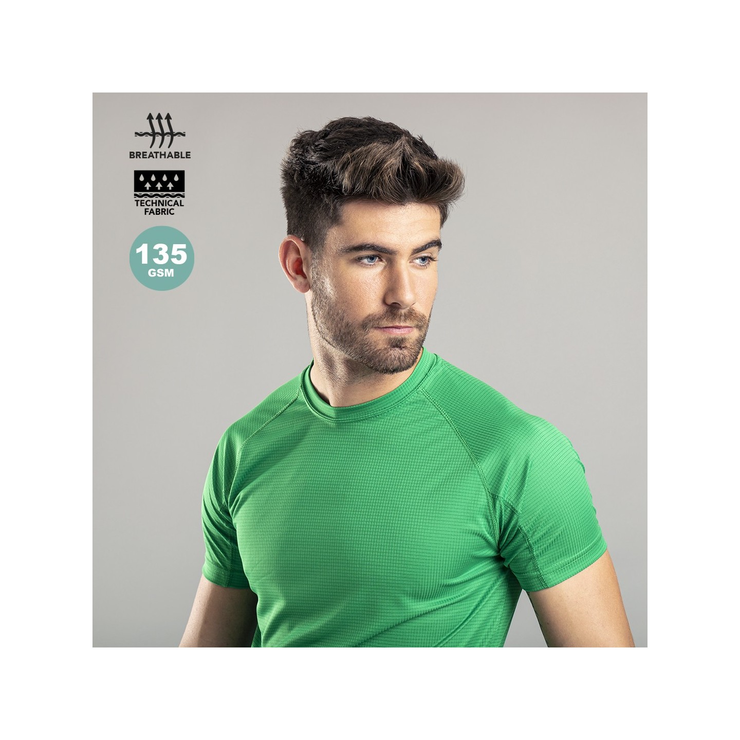 Elaborada en tela 100% poliéster de 135g/m2, esta camiseta garantiza una excelente gestión de la humedad, manteniéndote fresco y seco incluso durante los entrenamientos más intensos. Su material de calidad y construcción cuidadosa proporcionan una sensación suave y ligera sobre la piel, permitiendo un flujo de aire óptimo y una rápida evaporación del sudor.