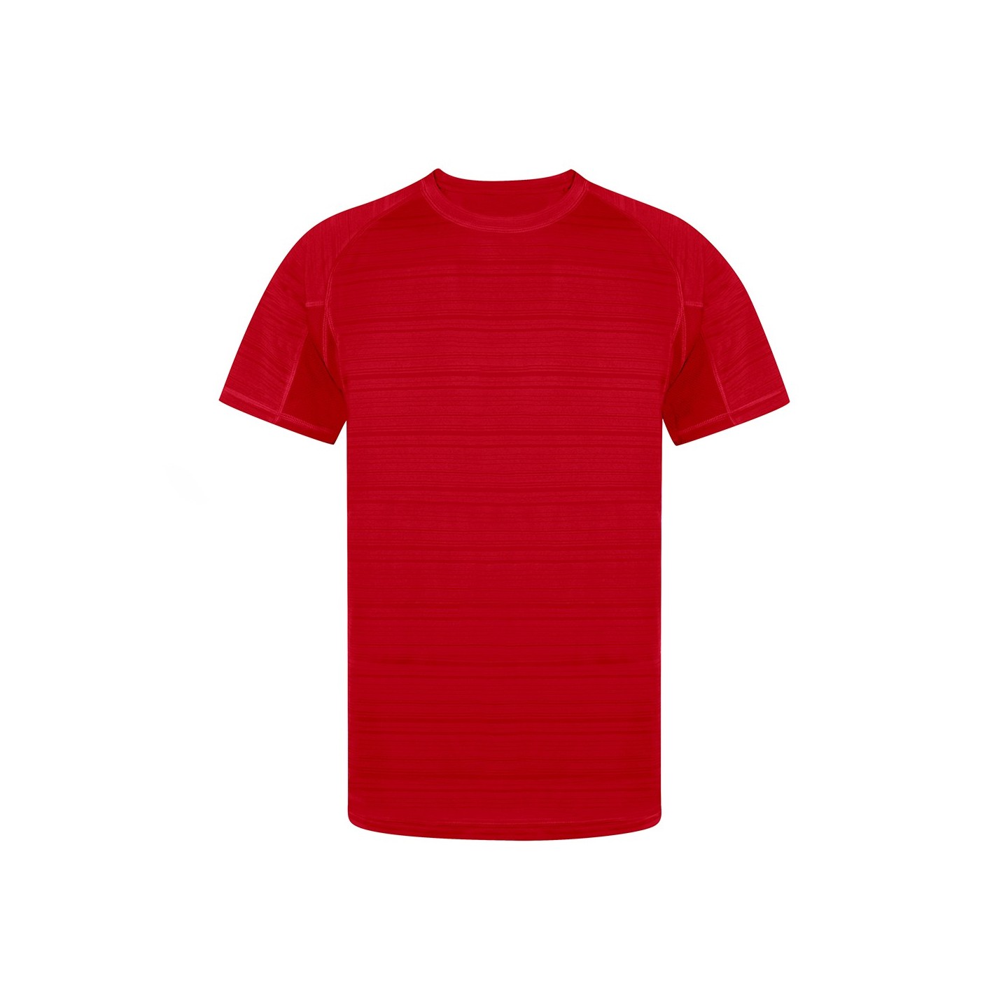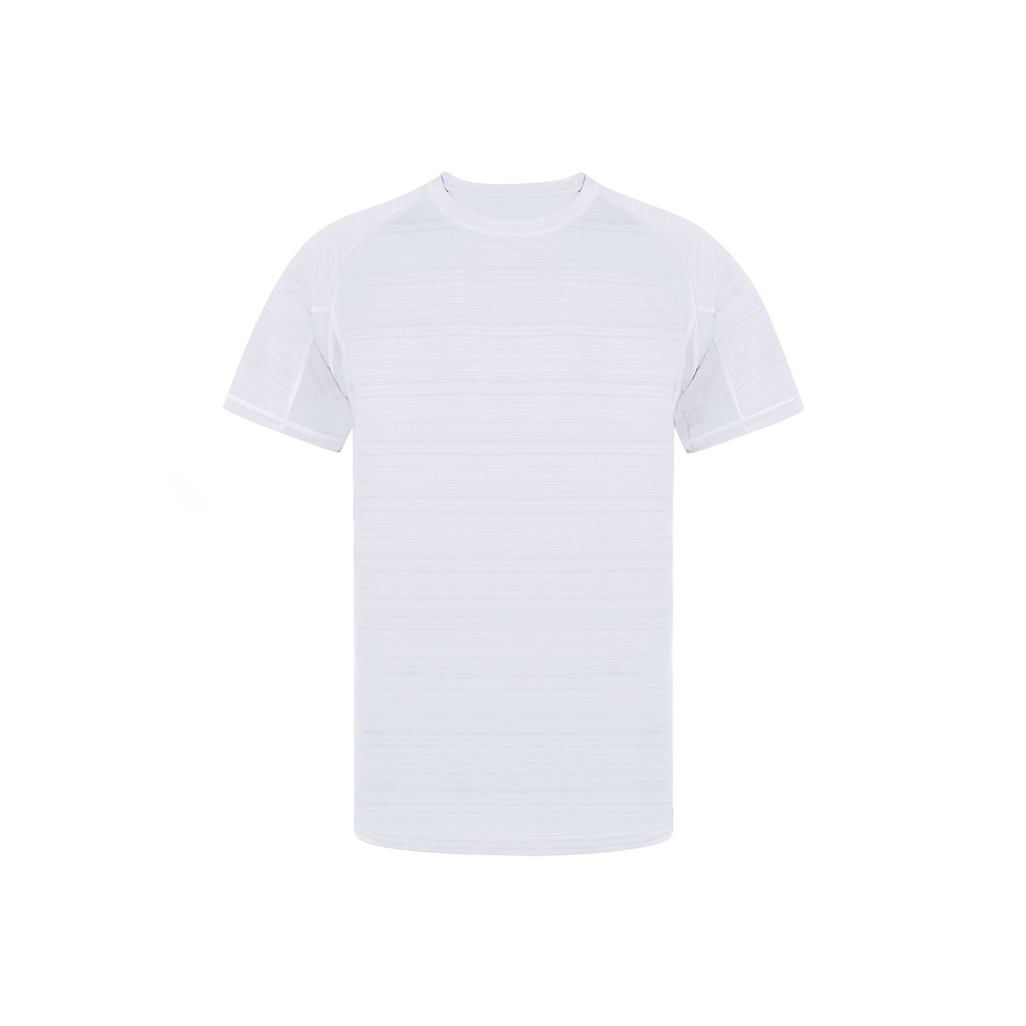 Esta camiseta técnica unisex presenta un original diseño a rayas, que añade un toque de dinamismo y estilo a tu vestuario deportivo o casual.