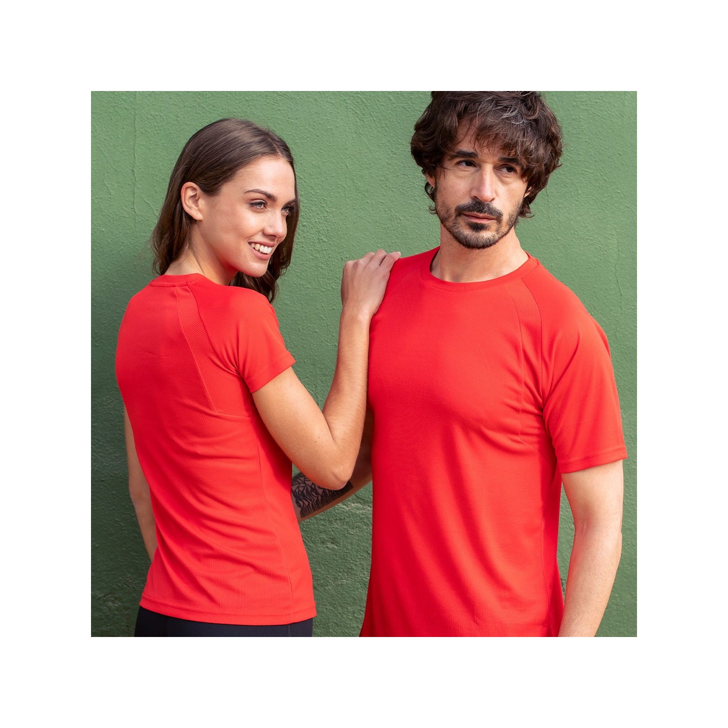 Fabricada en material 100% poliéster transpirable de 135g/m2, esta camiseta garantiza una comodidad excepcional durante todo el día, permitiendo una óptima circulación del aire para mantenerte fresco y seco en todo momento.