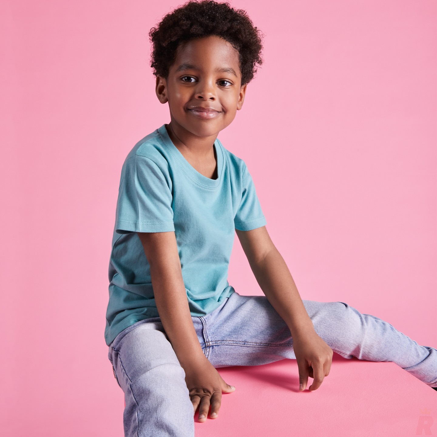 Camiseta infantil unisex de algodón, cómoda, resistente y fácil de personalizar. Ideal para actividades escolares, eventos o como regalo promocional