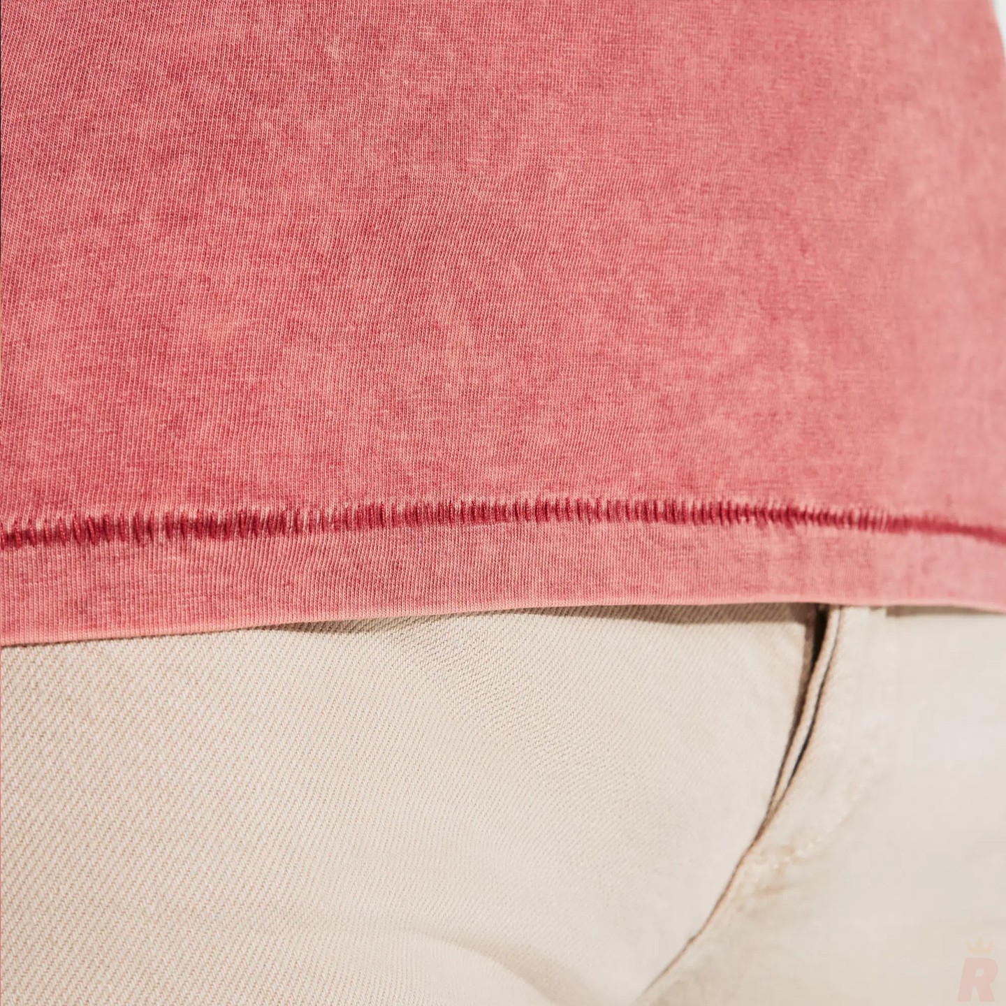 El cuello fino redondo en canalé 1x1 con cubrecosturas de refuerzo de hombro a hombro proporciona un ajuste seguro y mayor resistencia al desgaste diario. Su doble costura en sisas garantiza durabilidad, mientras que la apertura de manga con dobladillo añade un acabado impecable.
