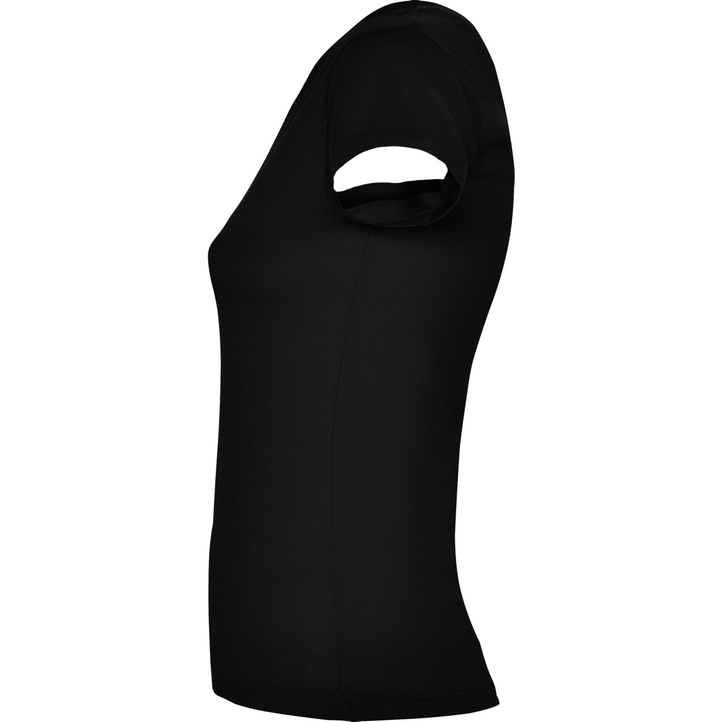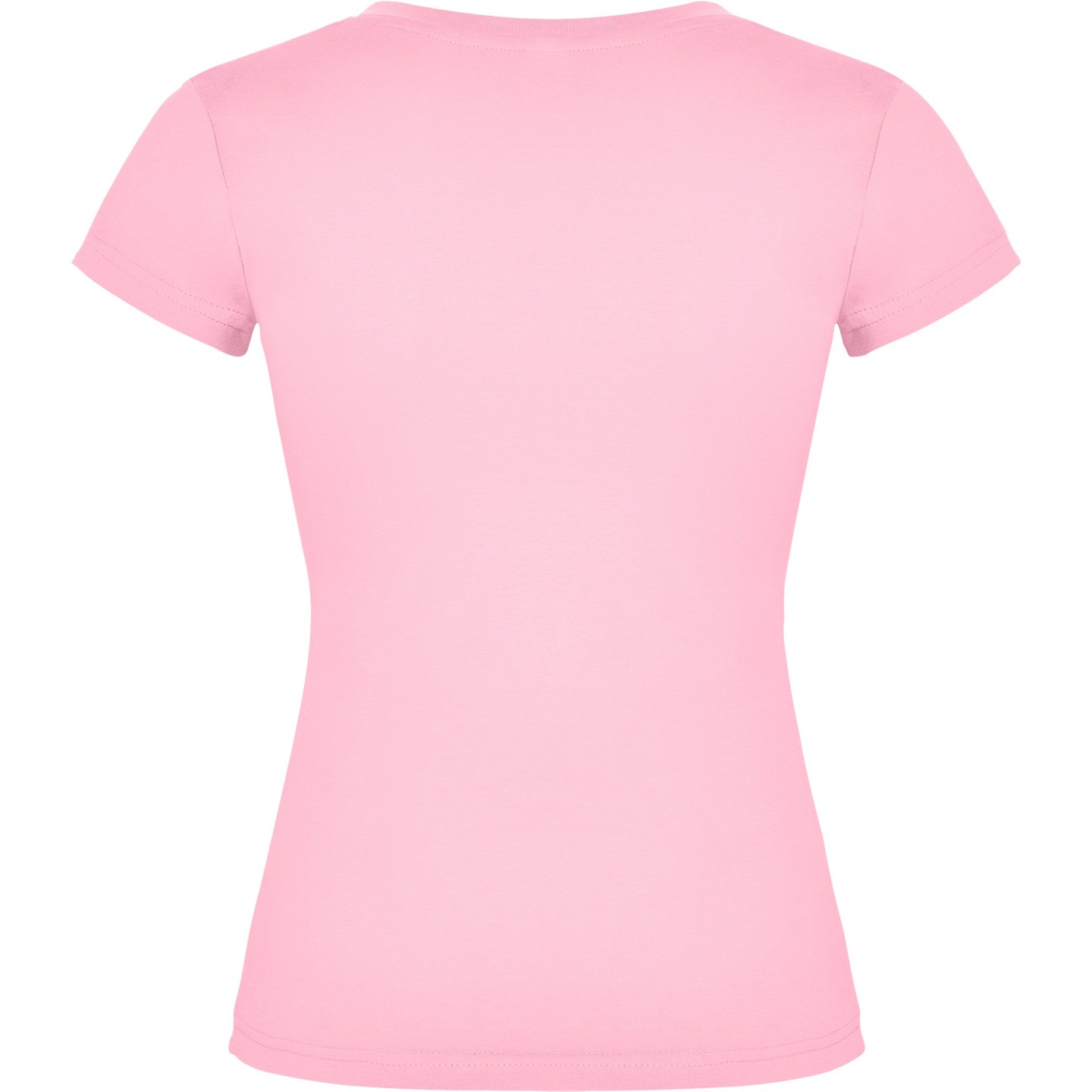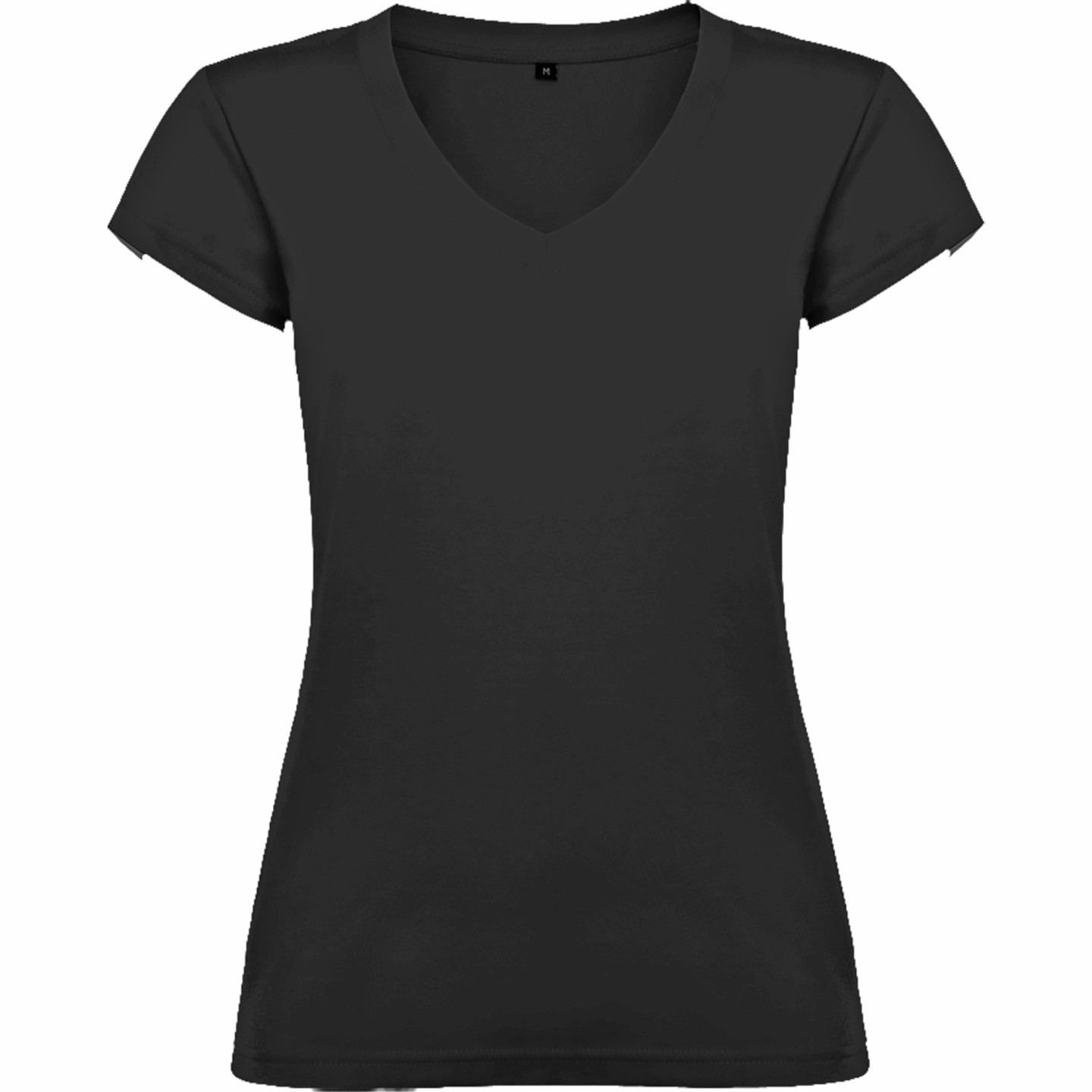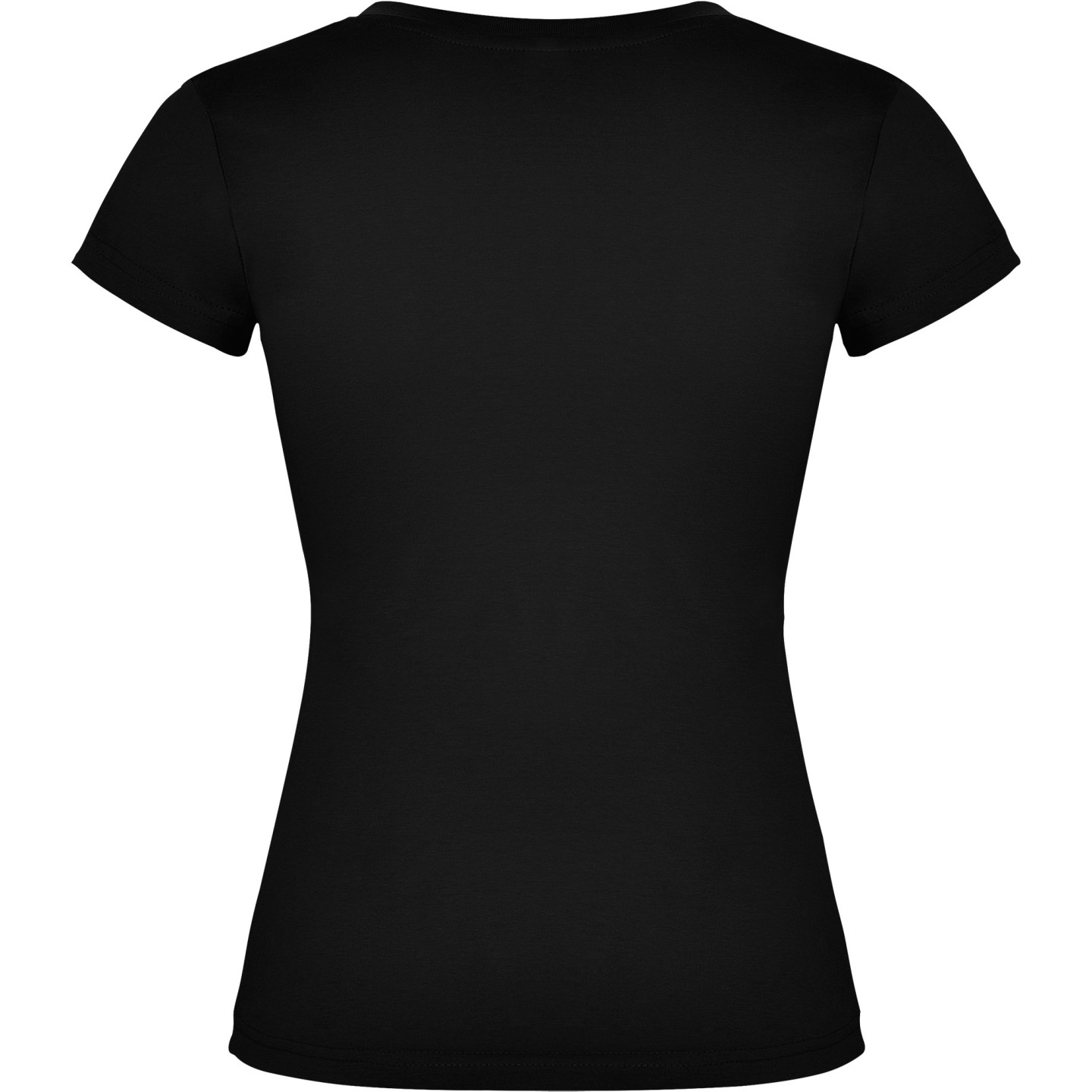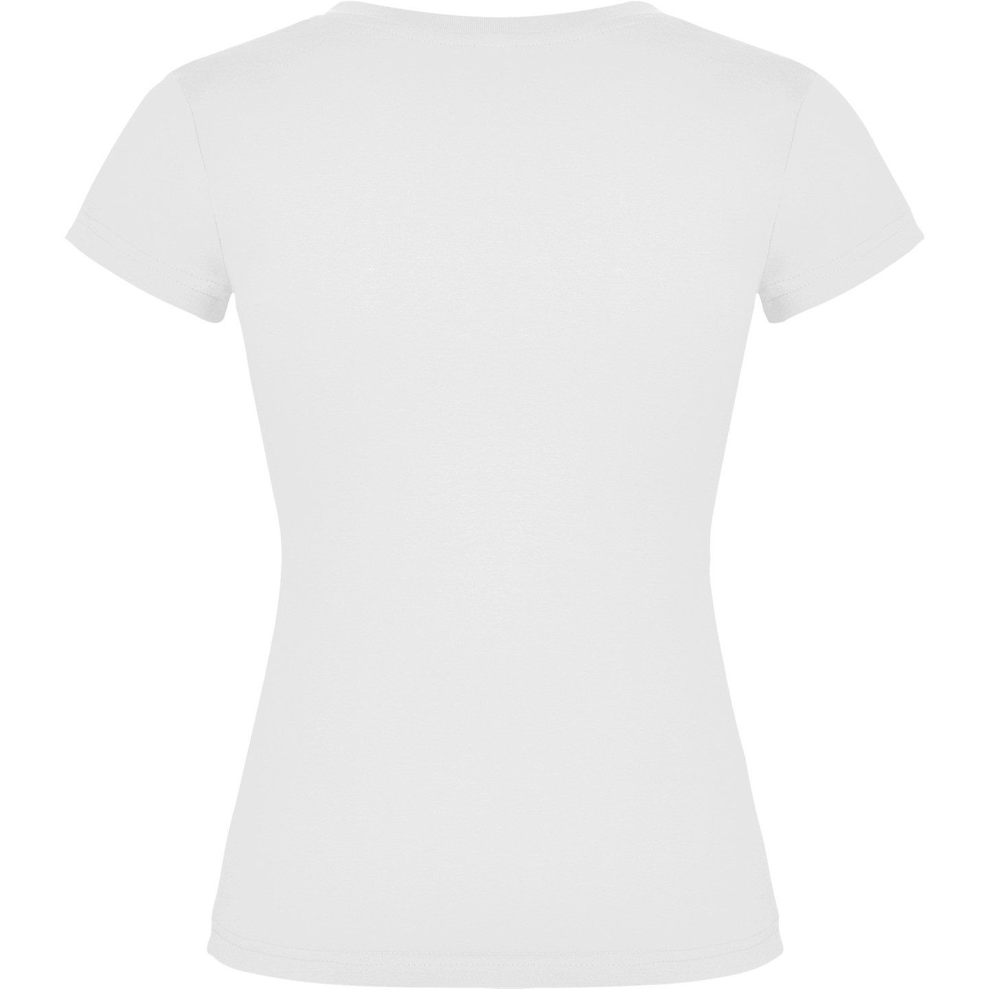 Camiseta entallada para mujer con escote pico, manga corta y acabado acanalado. Ideal para verano, promociones, hostelería o peluquería. 100% algodón