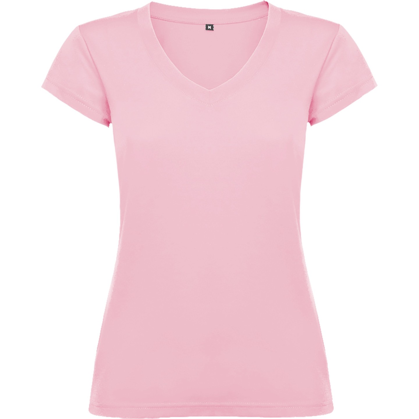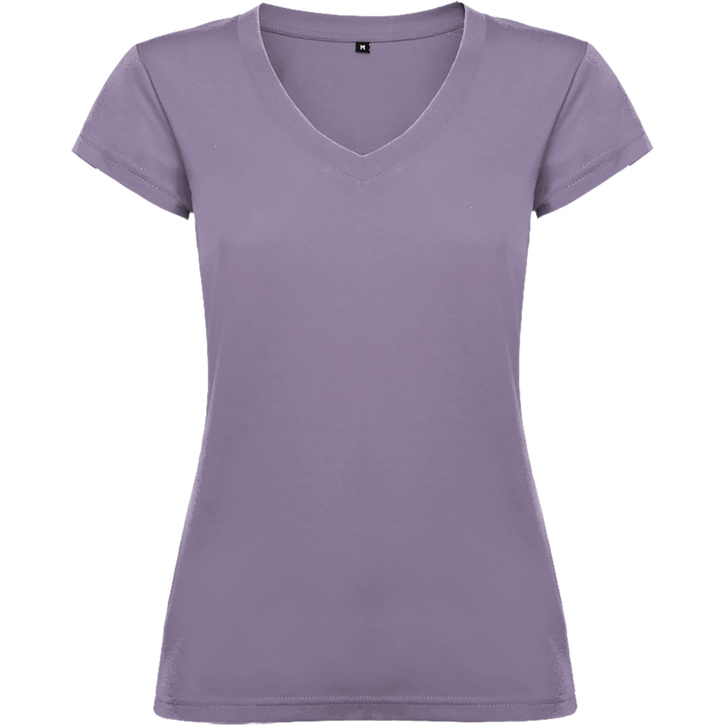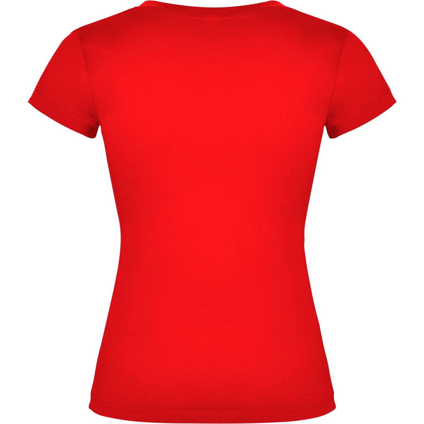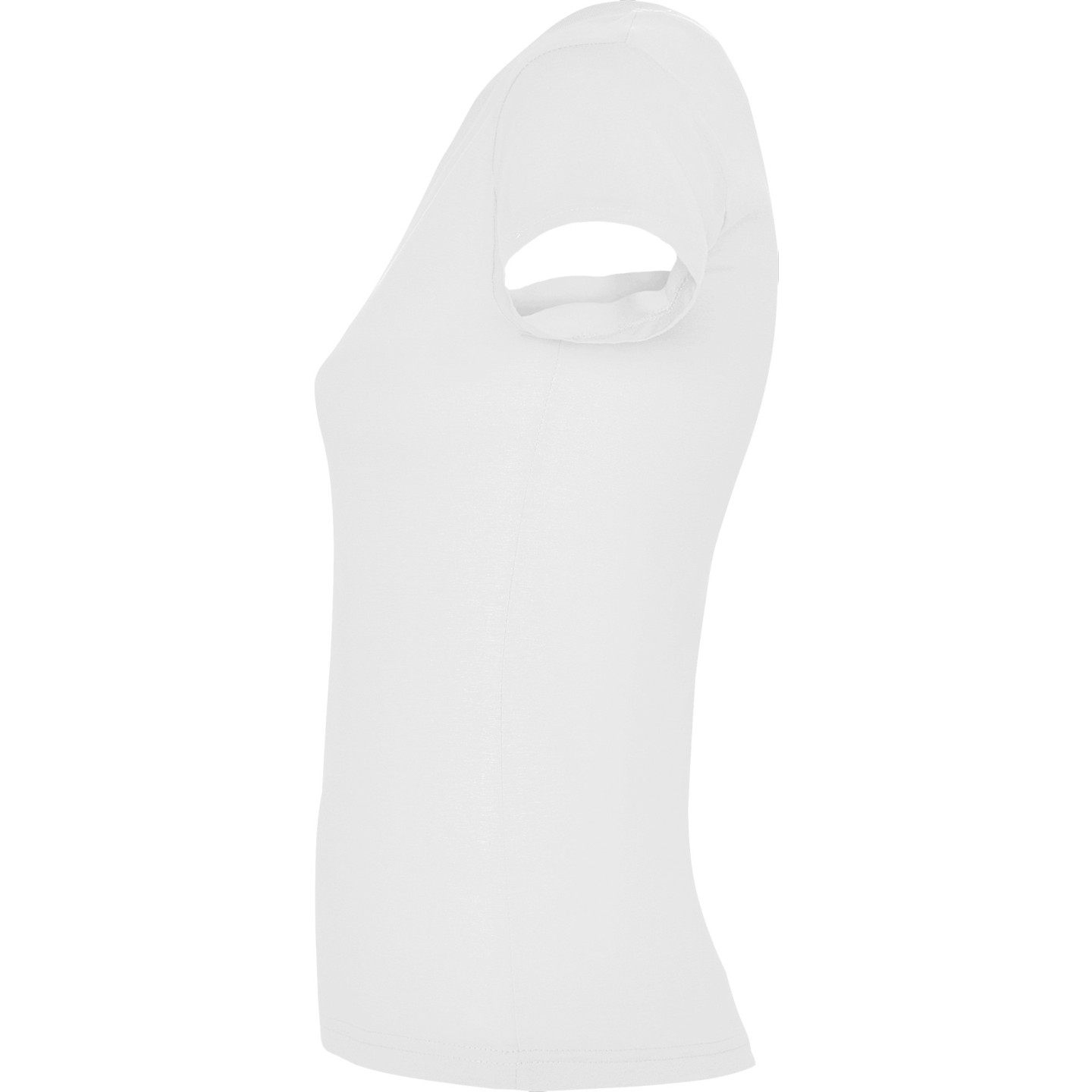 Camiseta entallada para mujer con escote pico, manga corta y acabado acanalado. Ideal para verano, promociones, hostelería o peluquería. 100% algodón