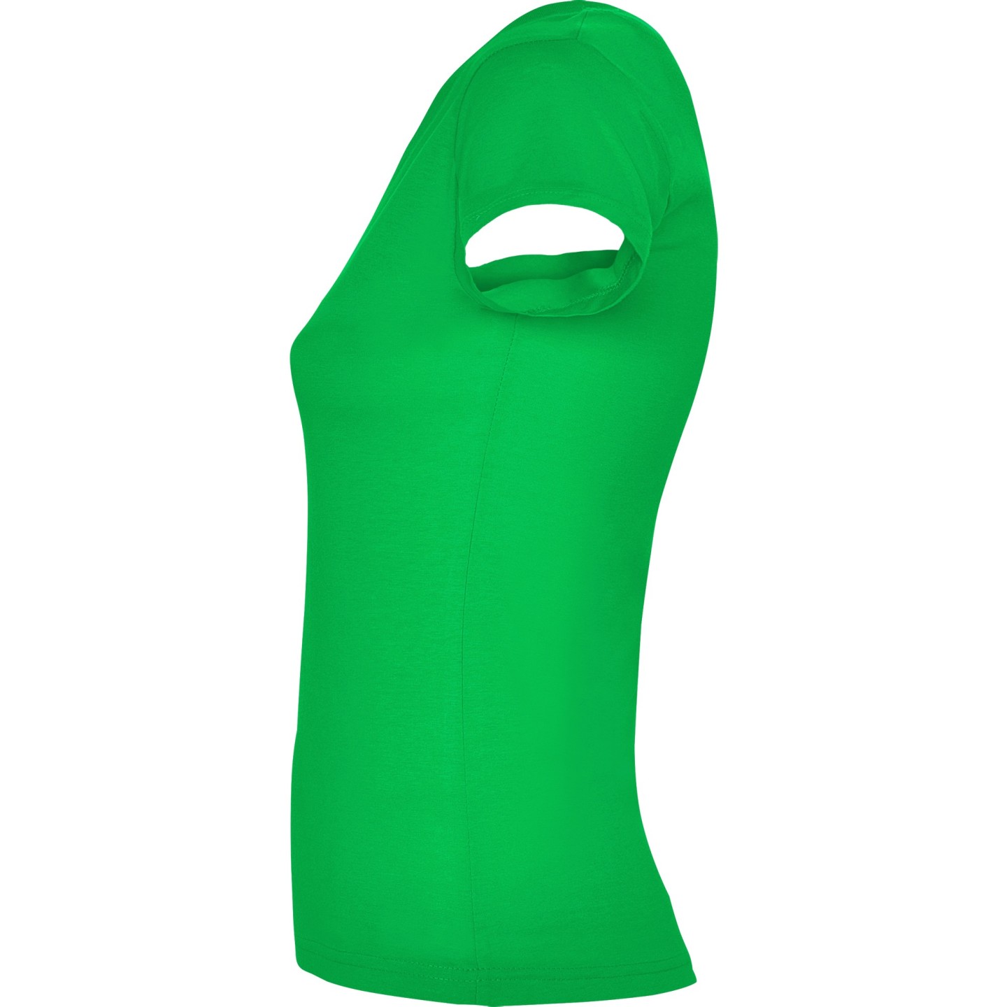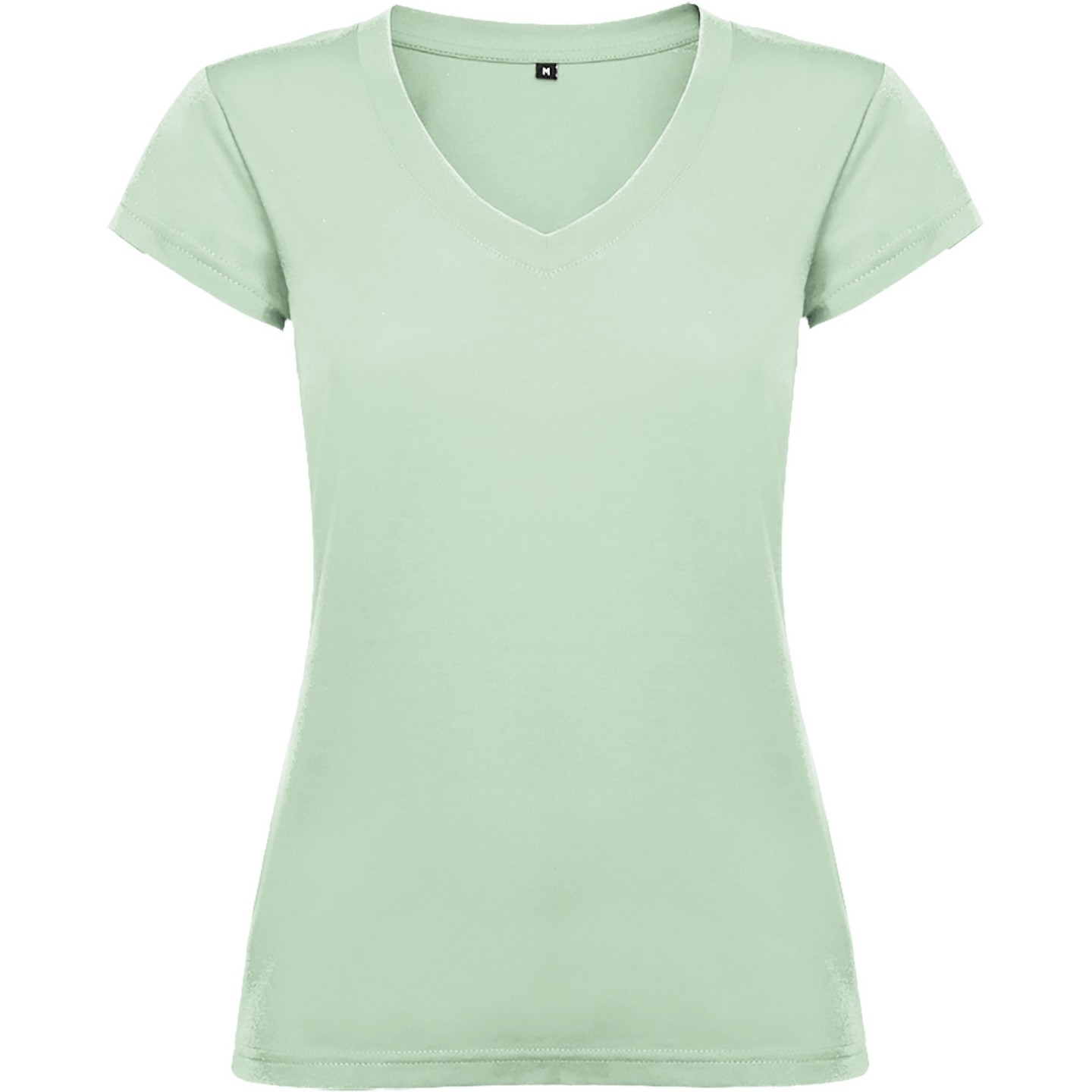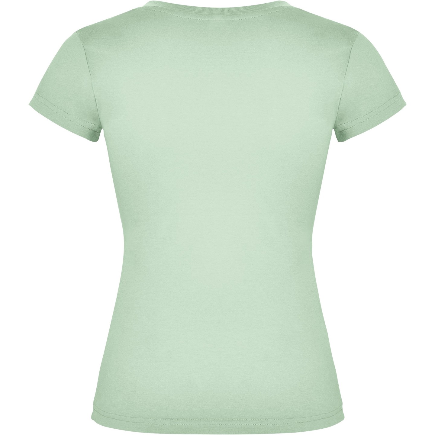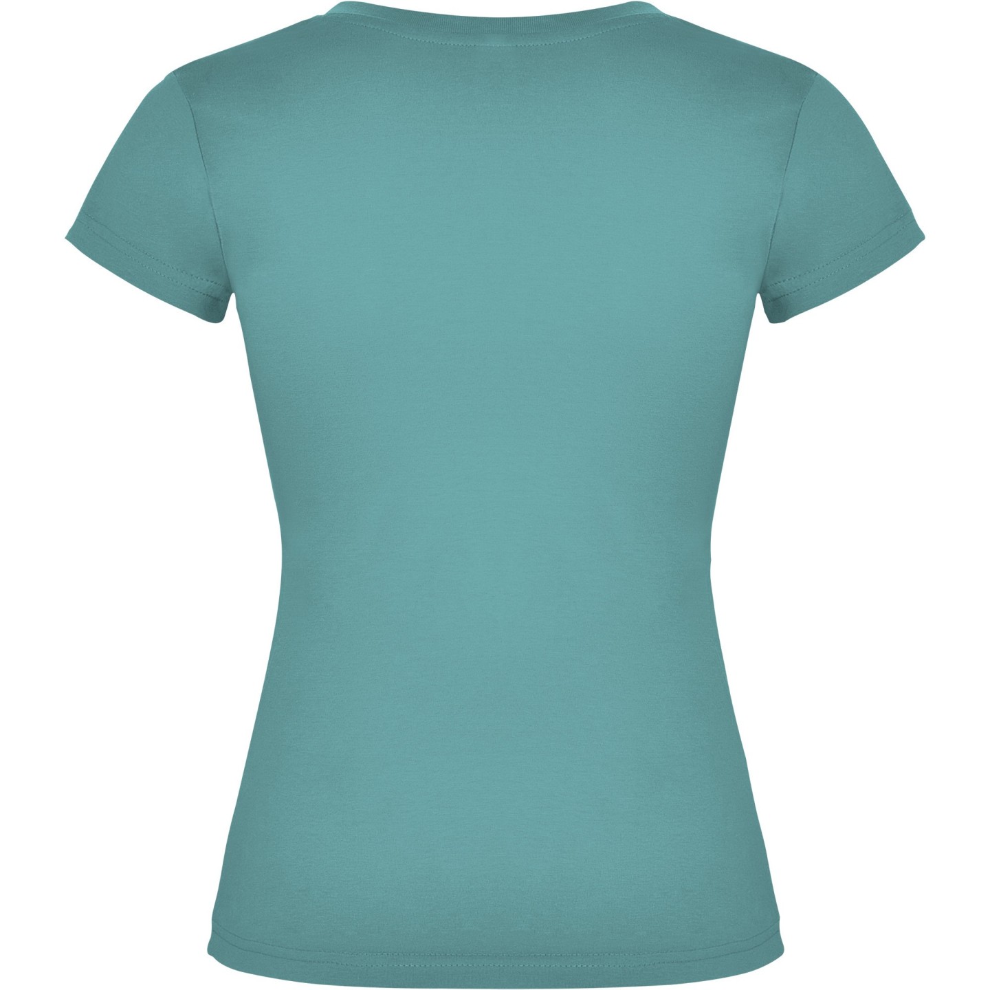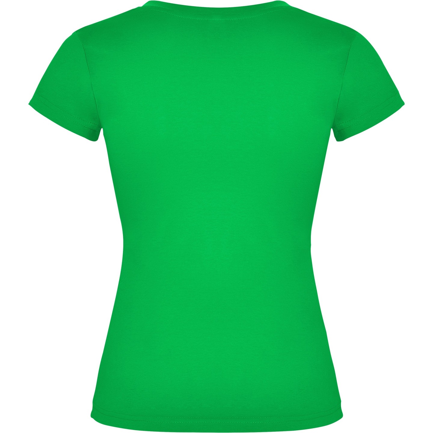 Camiseta entallada para mujer con escote pico, manga corta y acabado acanalado. Ideal para verano, promociones, hostelería o peluquería. 100% algodón