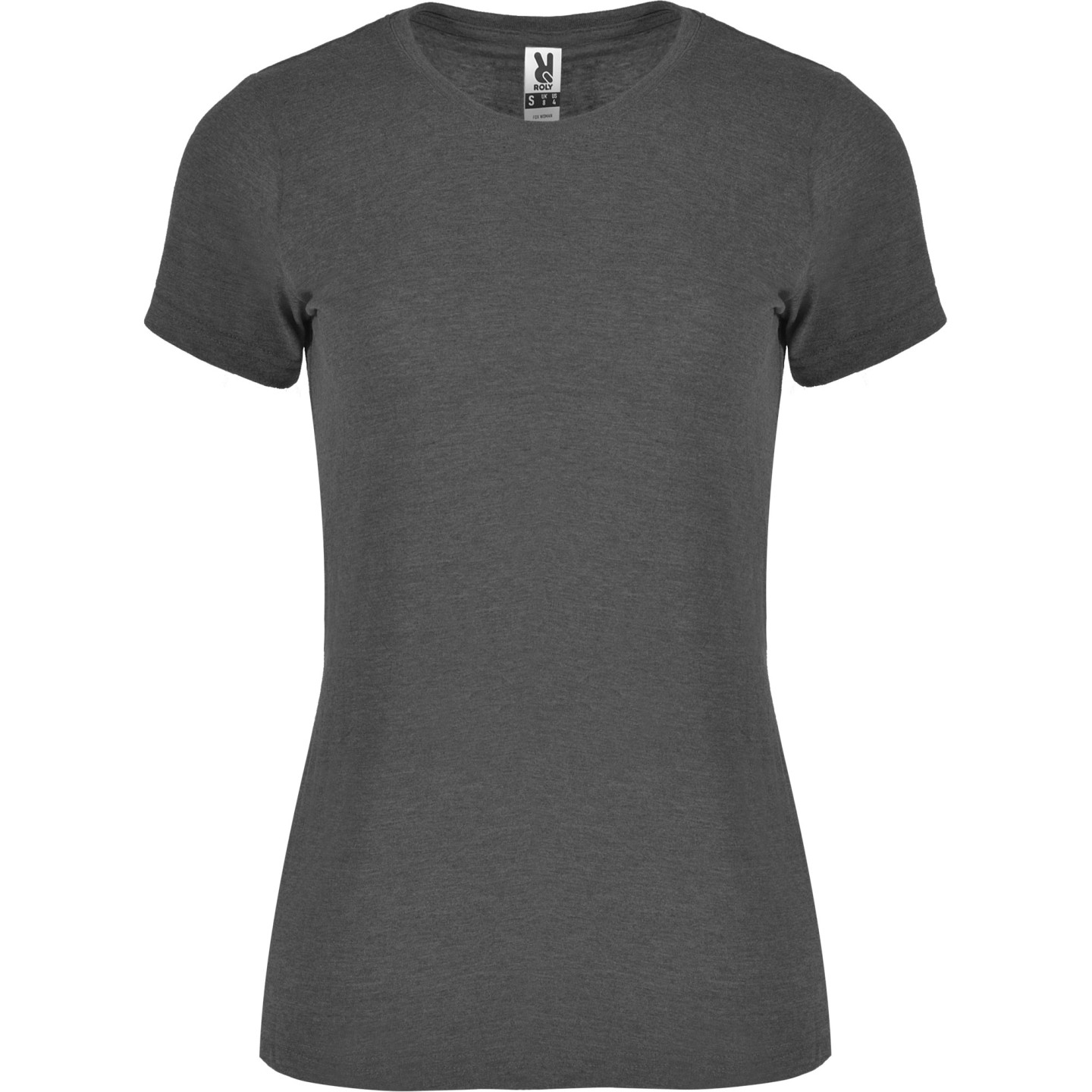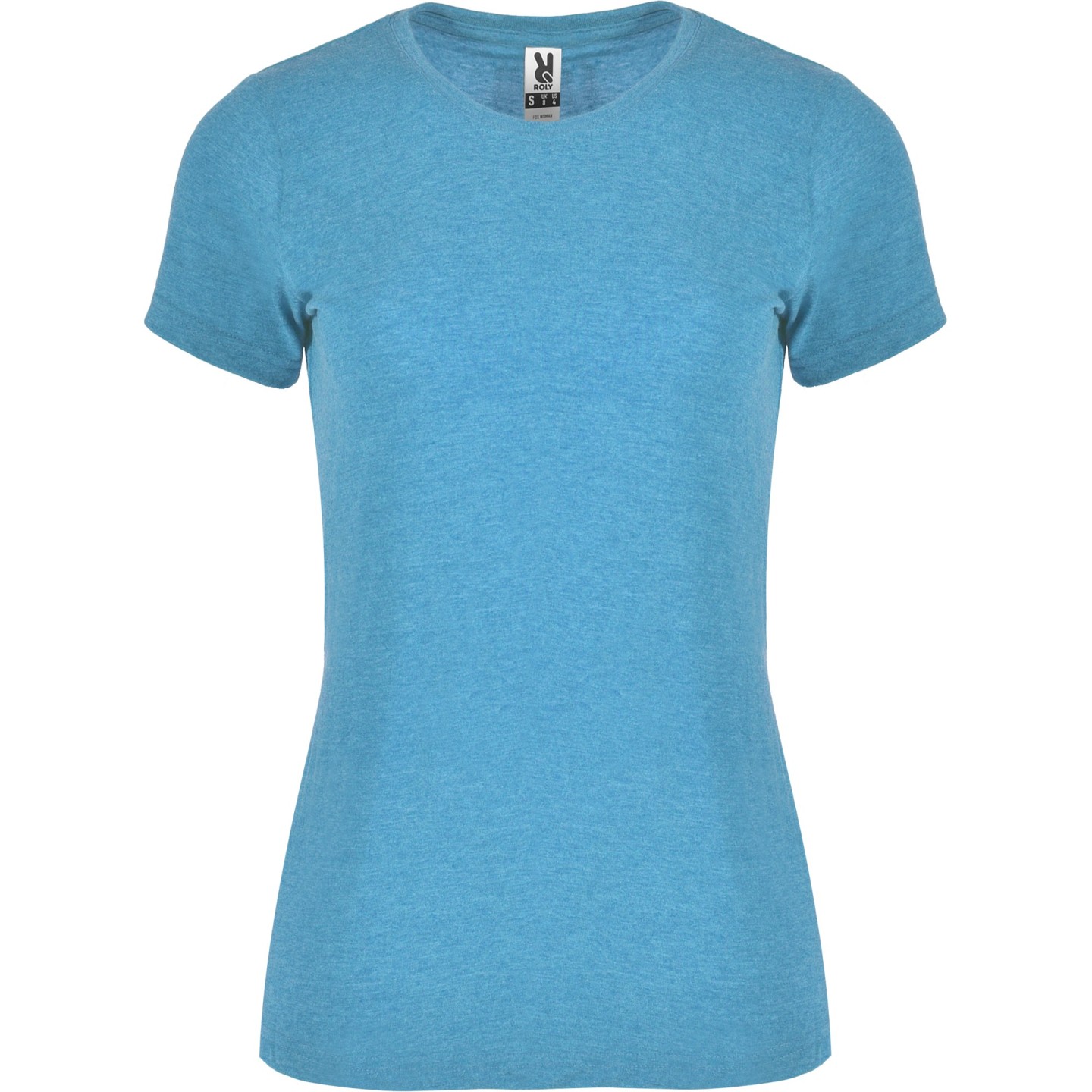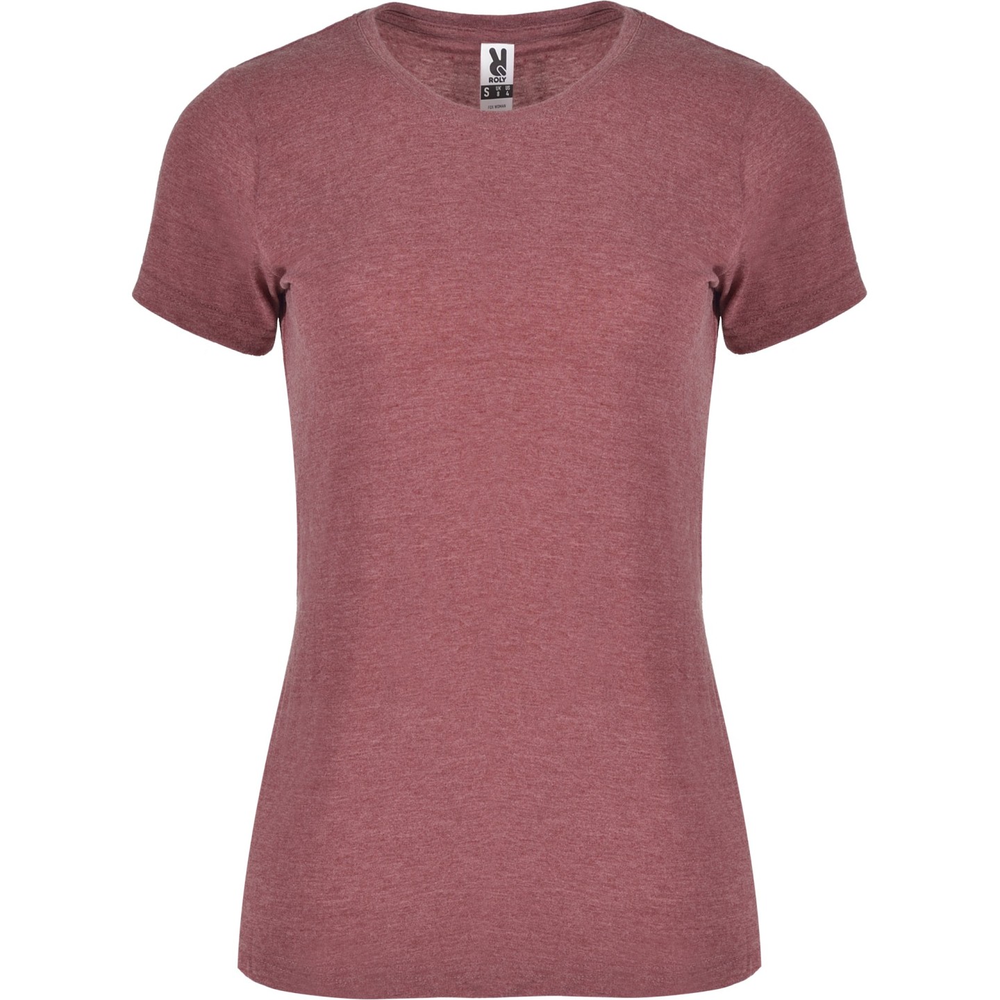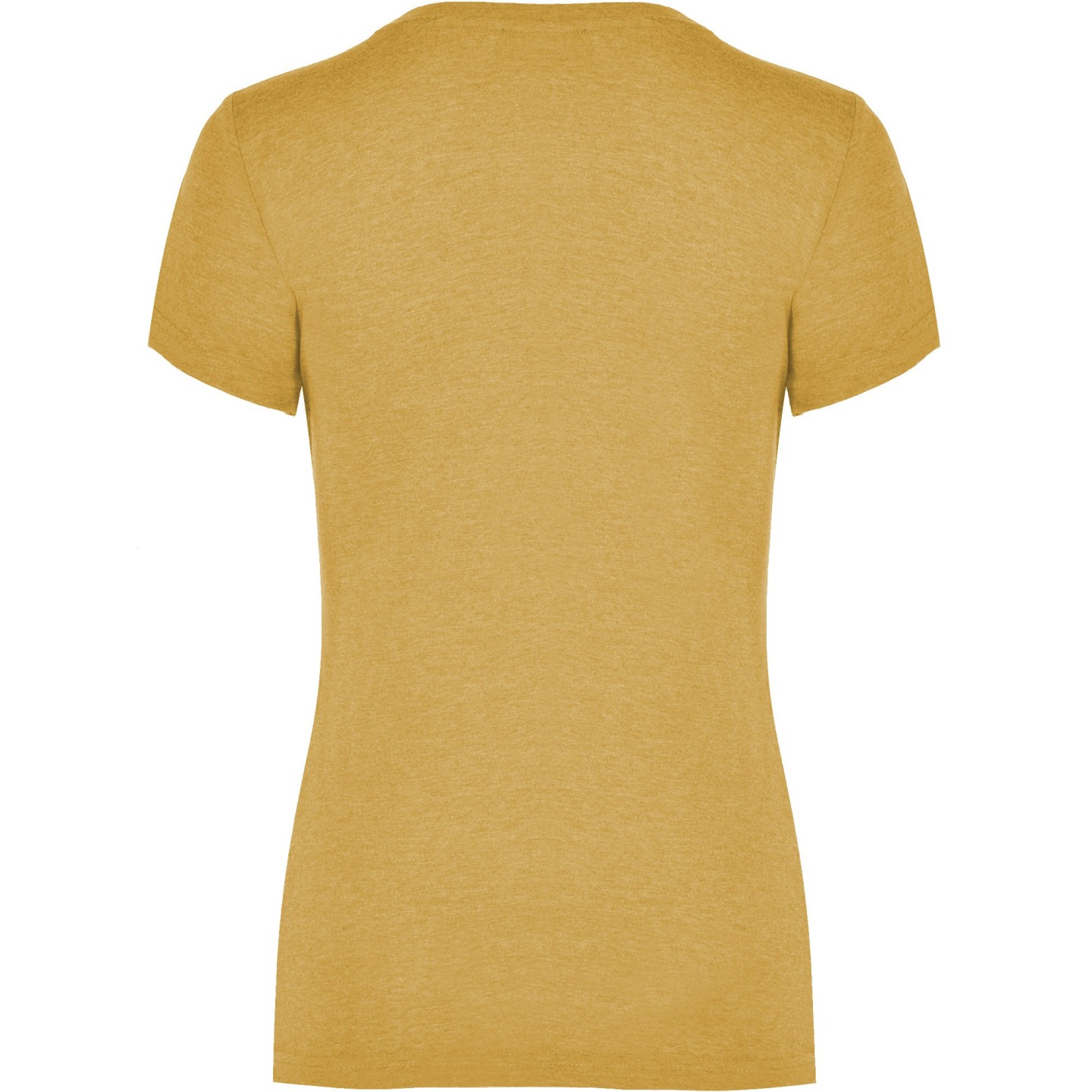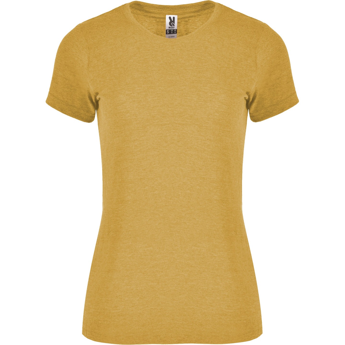 Camiseta básica de mujer con acabado vigoré, manga corta entallada y cuello redondo canalé. Etiqueta removible, ideal para personalizar con logotipo. Comodidad y estilo para el día a día