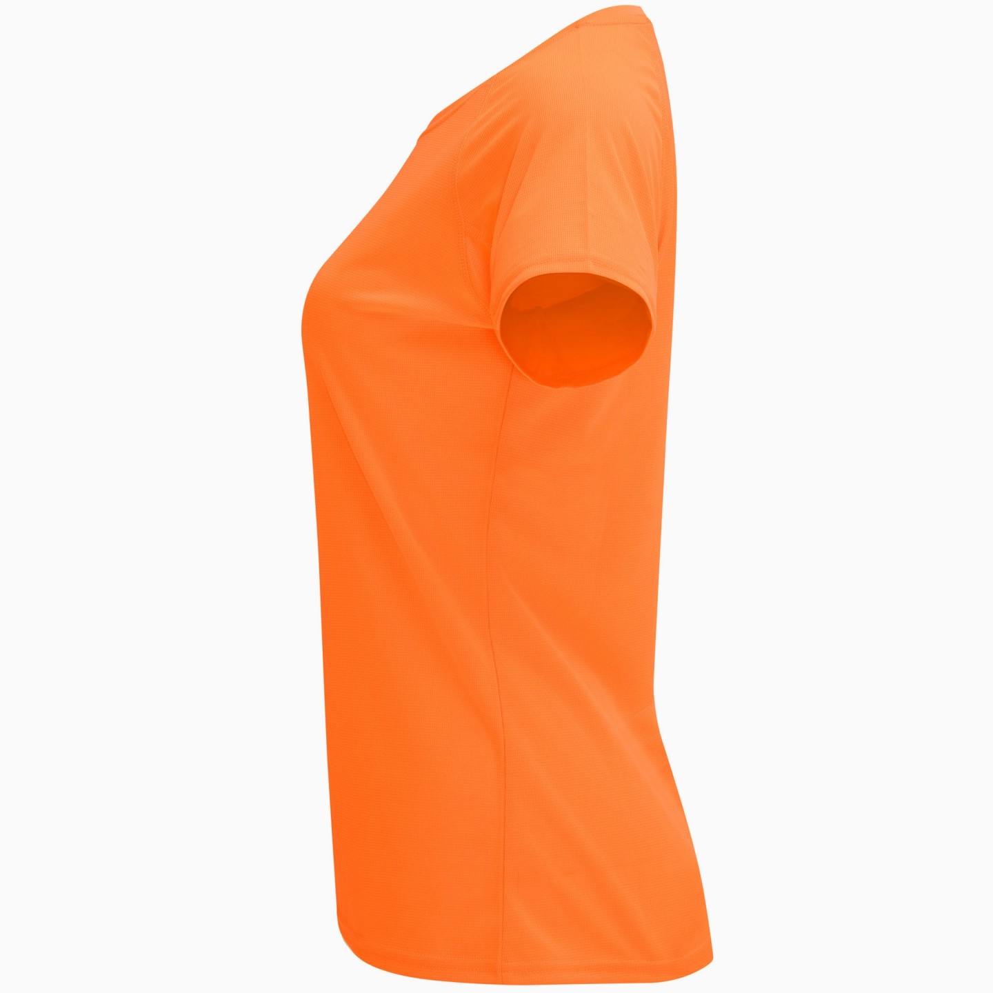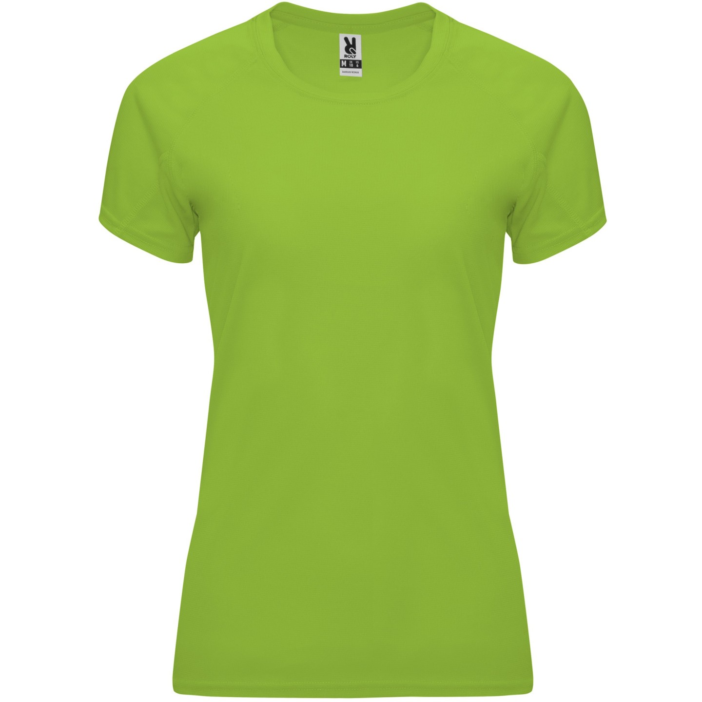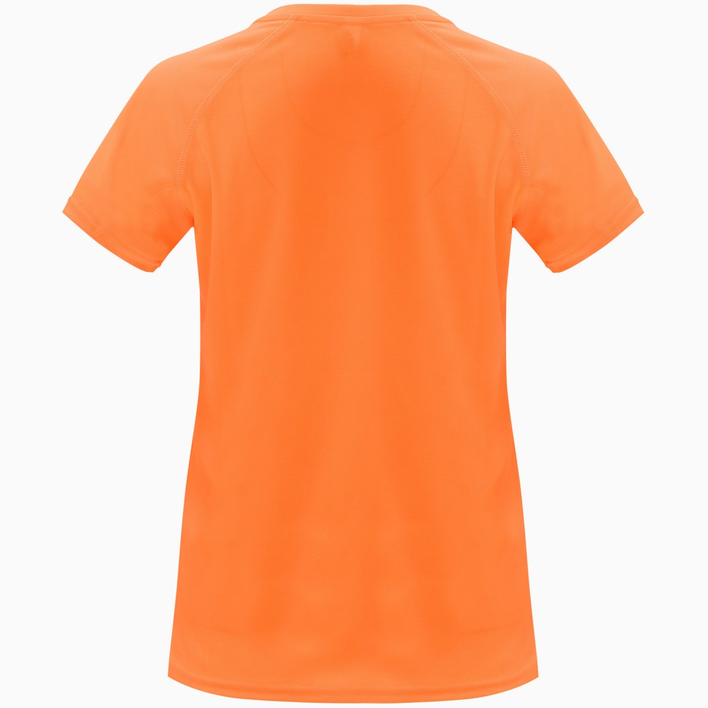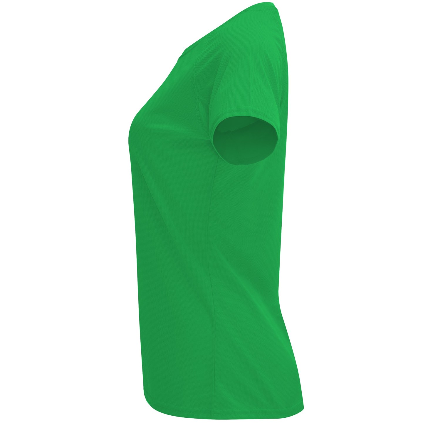 Camiseta técnica entallada de manga corta ranglán para mujer con tecnología Control Dry. Transpirable, ligera y con protección UV801. Ideal para gimnasios, workwear y personalización con logotipo. Etiqueta removible y tejido técnico
